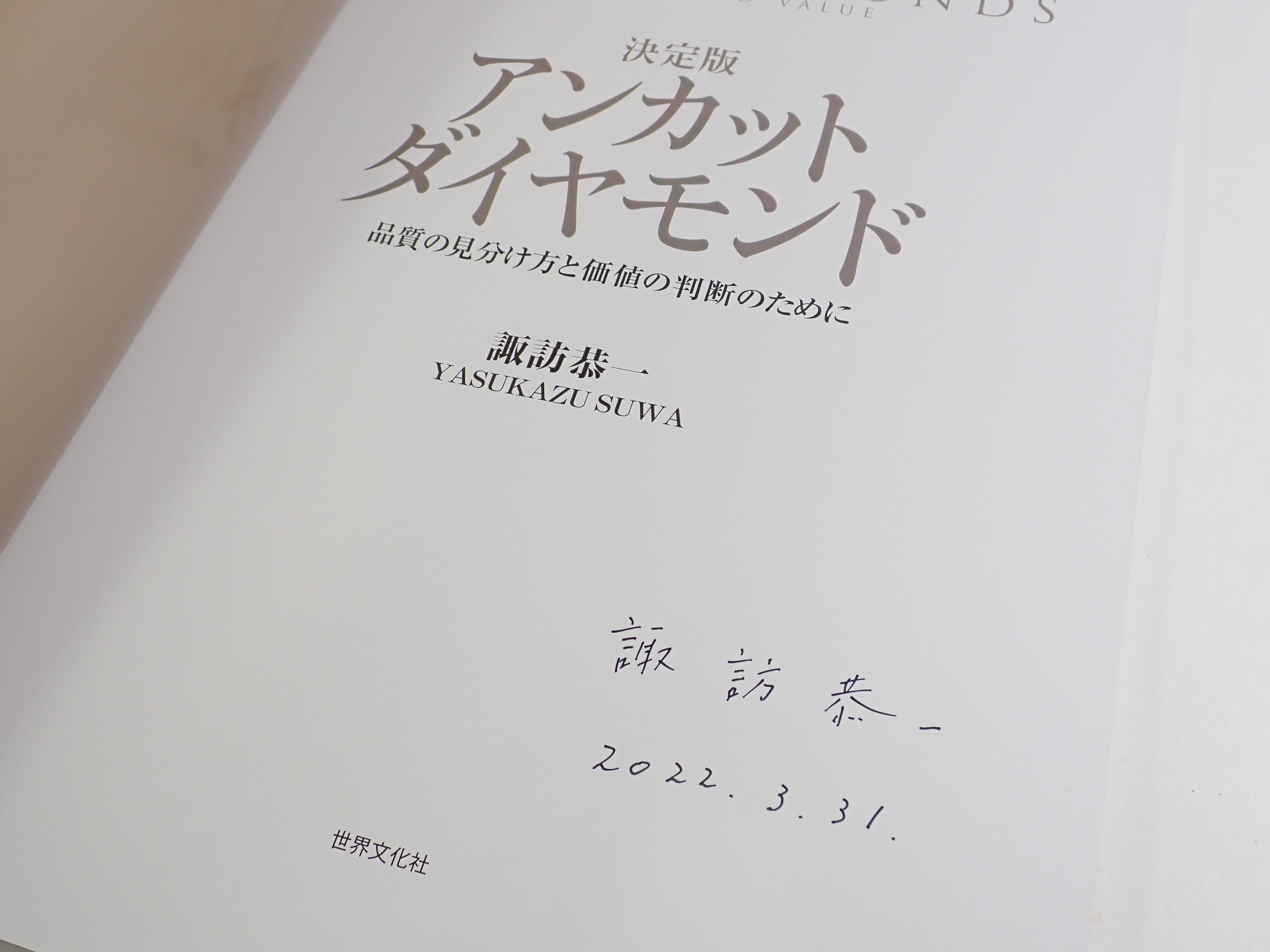 諏訪貿易会長諏訪恭一先生の著書「決定版 アンカットダイヤモンド 品質の見分け方と価値の判断のために」の発売を記念して、諏訪先生のサイン入り初版本&ダイヤモンド(ヘキサゴナルカット)のセットを販売いたします。