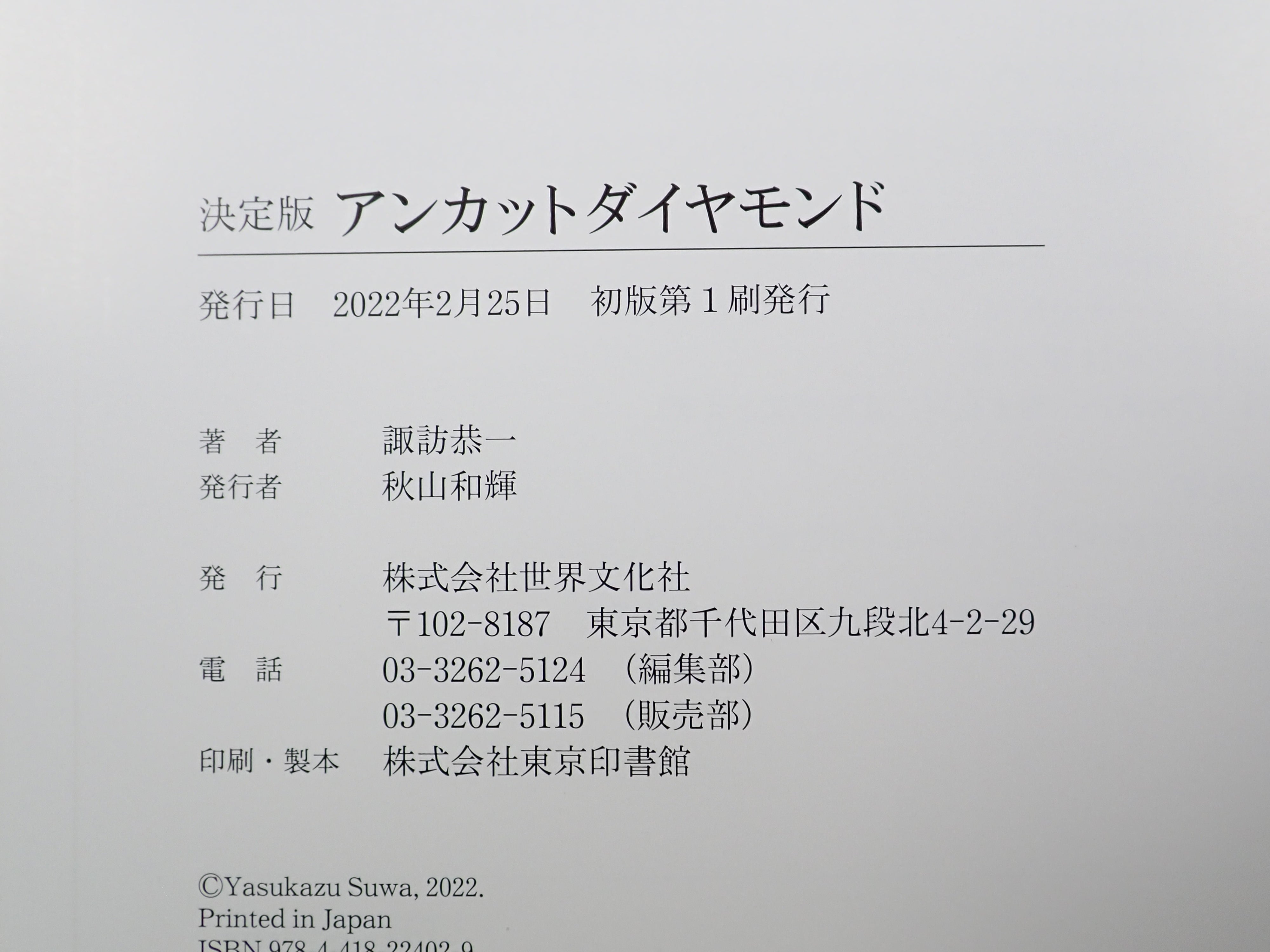 諏訪恭一著「決定版 アンカットダイヤモンド」サイン入り初版本 &ダイヤモンド(ヘキサゴナルカット)2点セット