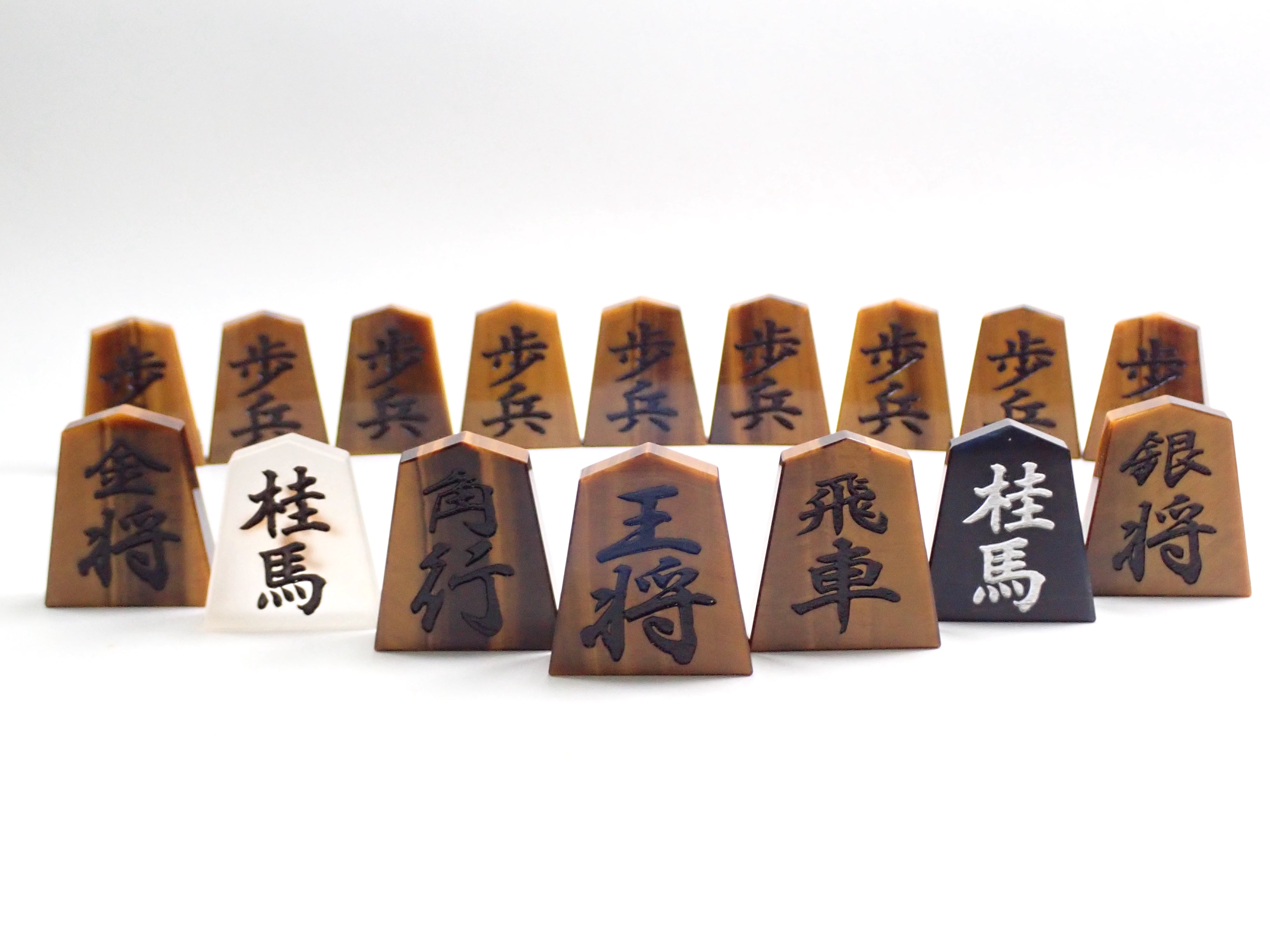 宝石の美しさと将棋の駒の重厚感が、一体となった芸術品です。お求め頂きやすいように、1ピースから販売いたします。オーダーを頂いてから、清水社長が一つずつ丁寧に作製いたします。