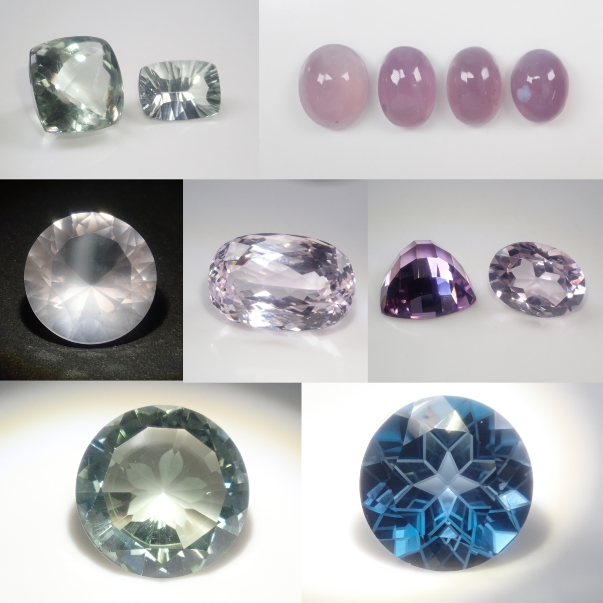 ・クンツァイト、ローズクォーツ、グリーンクォーツ、アメジスト、パープルカルセドニー10石