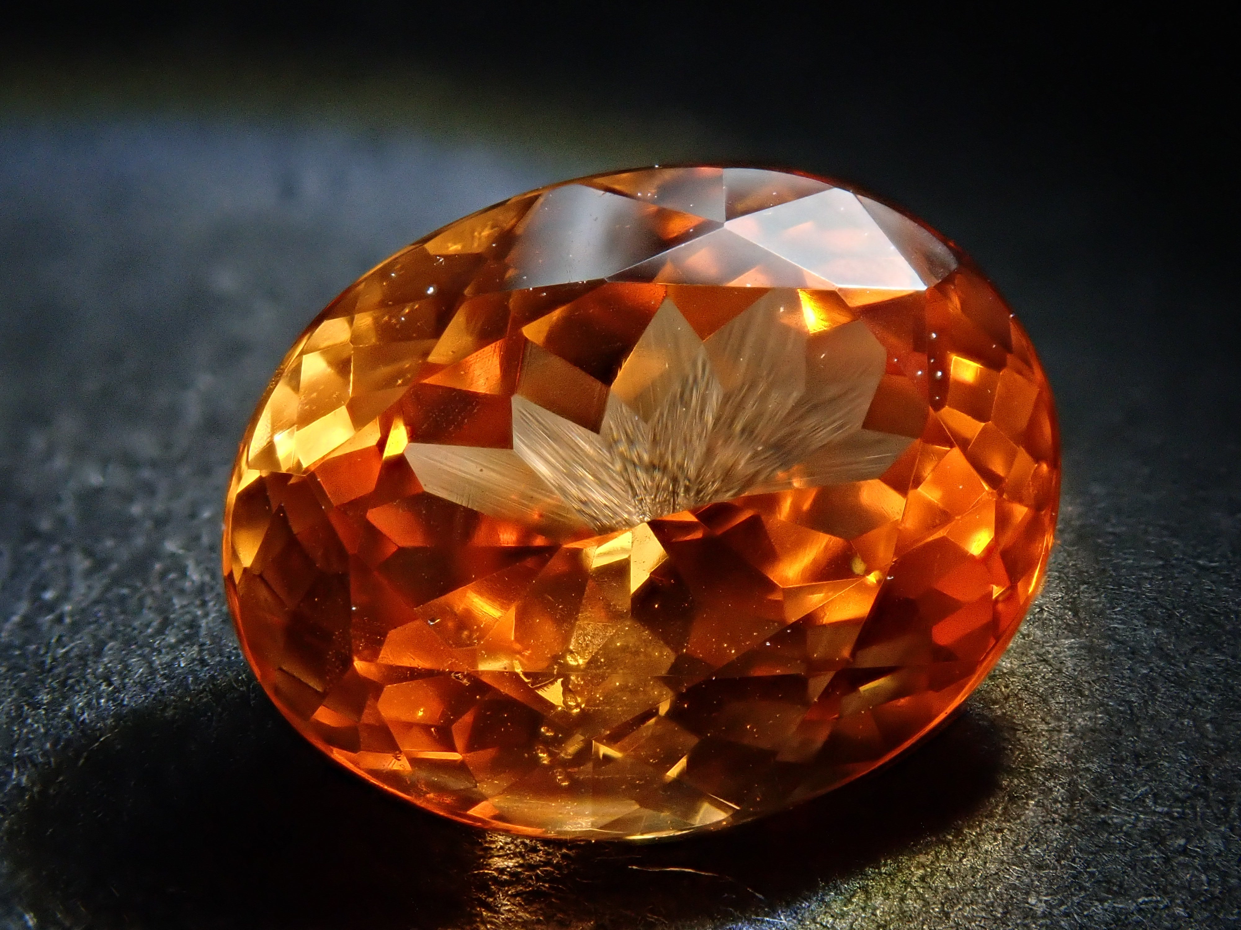 石榴石以一月生日石而聞名。事實上,它是一種有多種顏色的石頭,如紅色、黃色、橙色和綠色。這就是錳鋁榴石,也稱為「錳鋁榴石」。它的特點是引人注目的橙色。 3 克拉和尺寸與存在