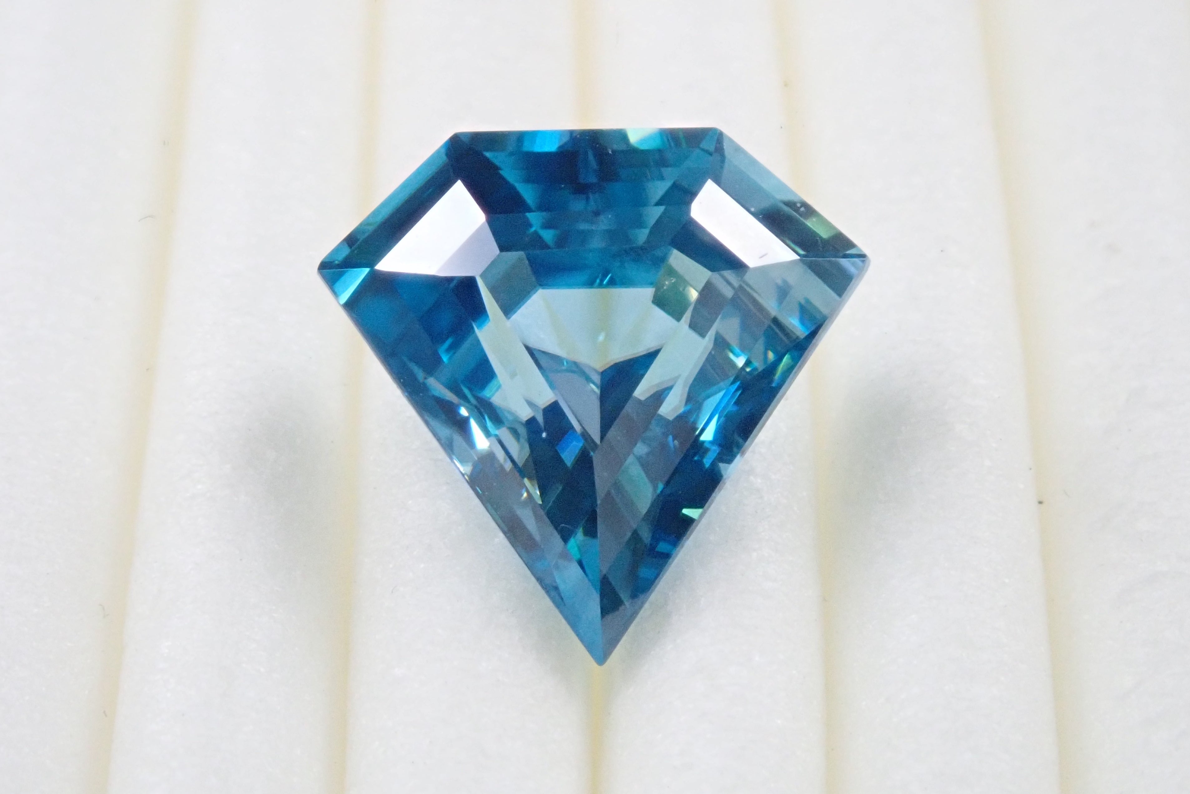 鋯石是世界上最古老的礦物。在顏色多種多樣的鋯石中,最著名的藍色鋯石被稱為「藍鋯石」。它具有高雙折射,其特點是“倍光”,賦予其耀眼的光芒。柬埔寨藍鋯石,形狀為鑽石標誌。