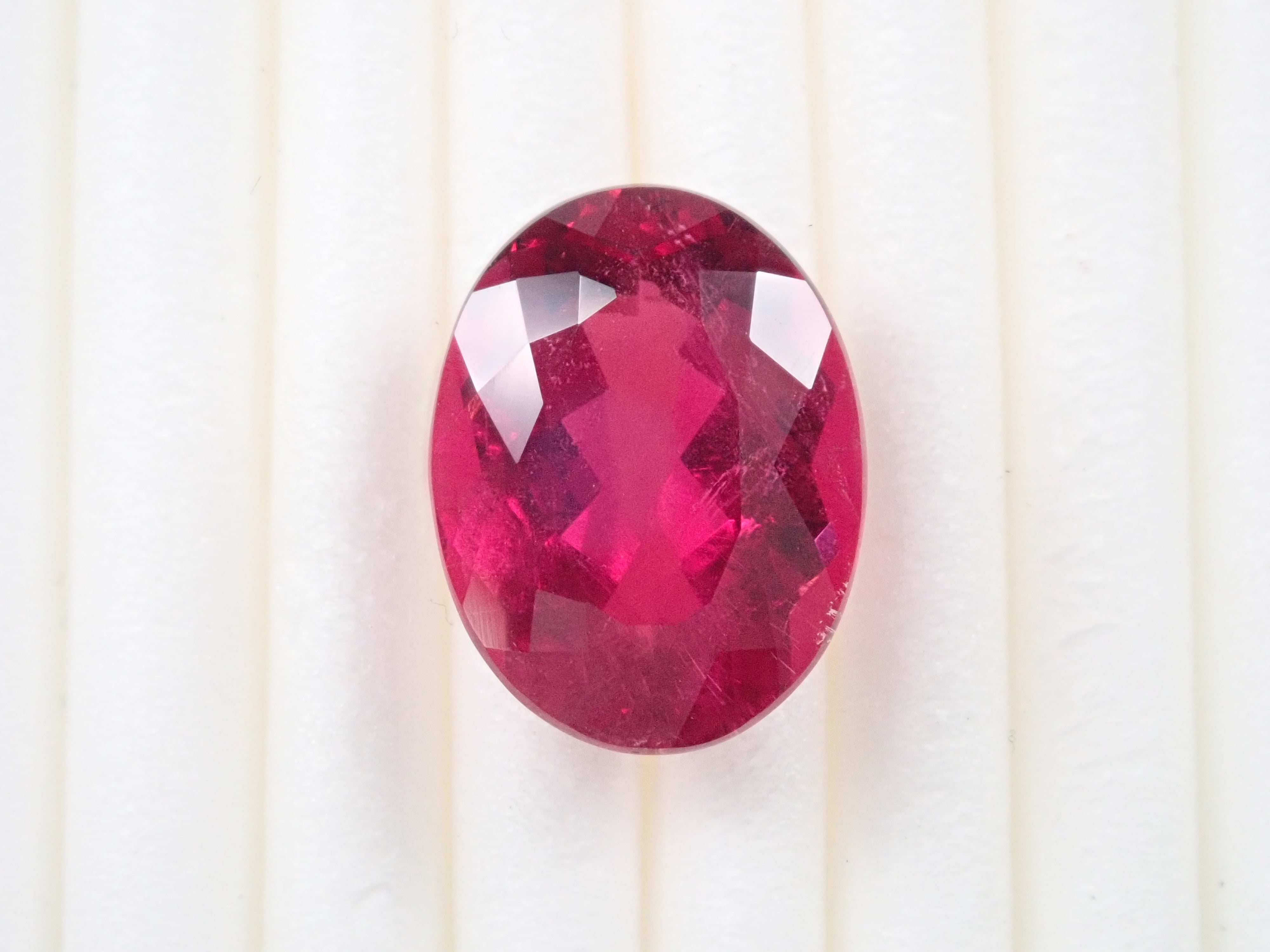 紅碧璽,一種迷人的蔓越莓色。它是碧璽的一種,指的是紅色碧璽。紅色碧璽中,具有一定顏色範圍的碧璽尤其被稱為紅碧璽。享受紅色到紫紅色粉紅色的清新光芒。紅碧璽的重量為 5.6 克拉。
