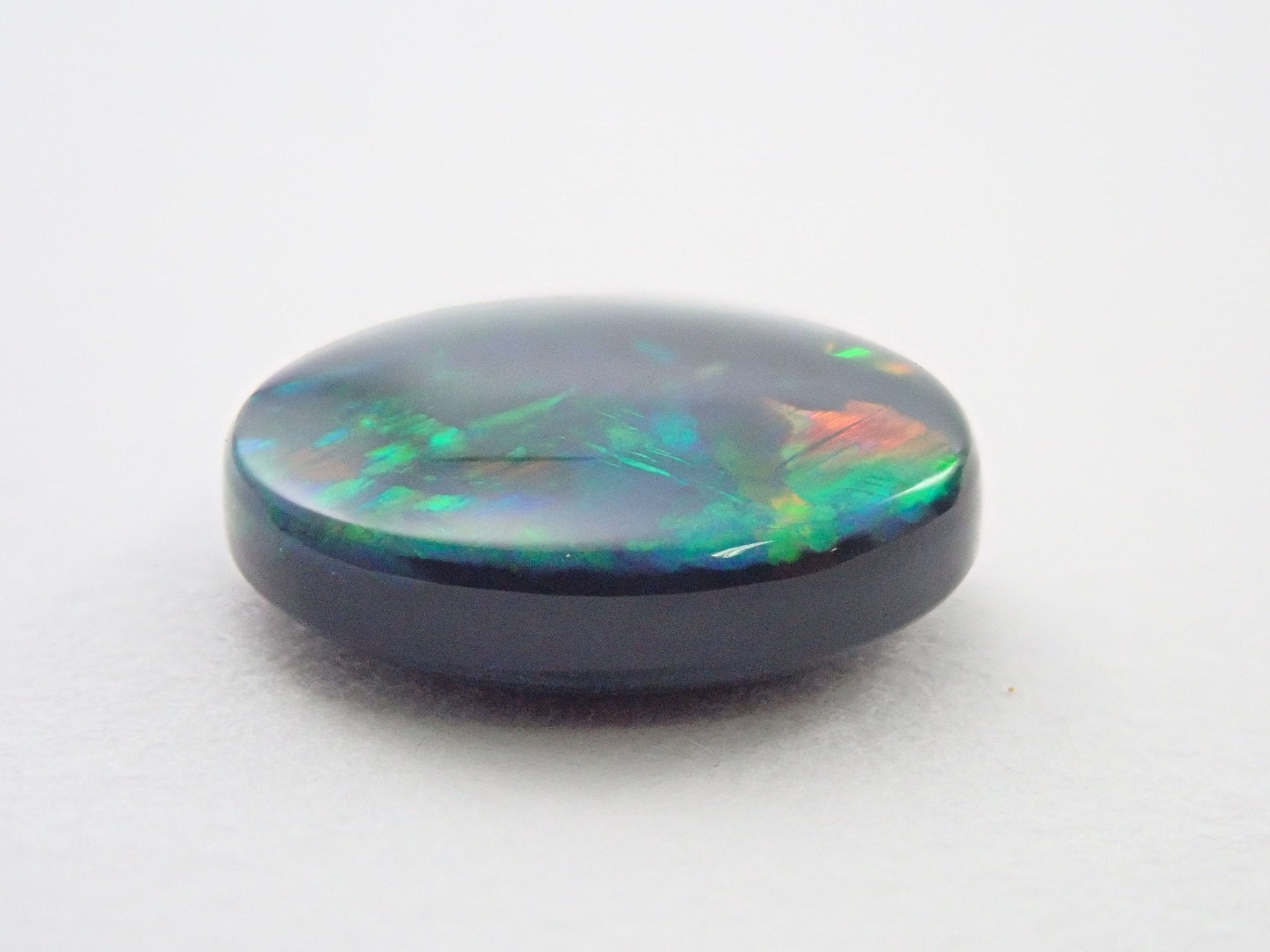 蛋白石是一種閃爍著彩虹色光芒的寶石。蛋白石有好幾種類型,但其中,黑蛋白石漆黑的黑暗中搖曳的紅色火焰美得讓人無法移開目光。底色包括黑色、藍色和灰色。照片是使用筆燈拍攝的。