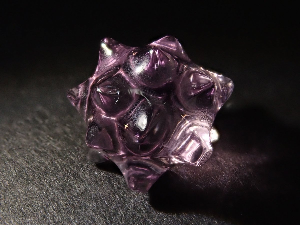 這是中野誠 (Makoto Nakano) 的作品,他同時也是山梨縣立寶石藝術學院(珠寶學校)的講師,也是日本非常有名的寶石拋光師。我們使用珠寶雕刻機,一件一件地雕刻每件作品,同時考慮到突出物的位置,製作每件作品需要一天的時間。