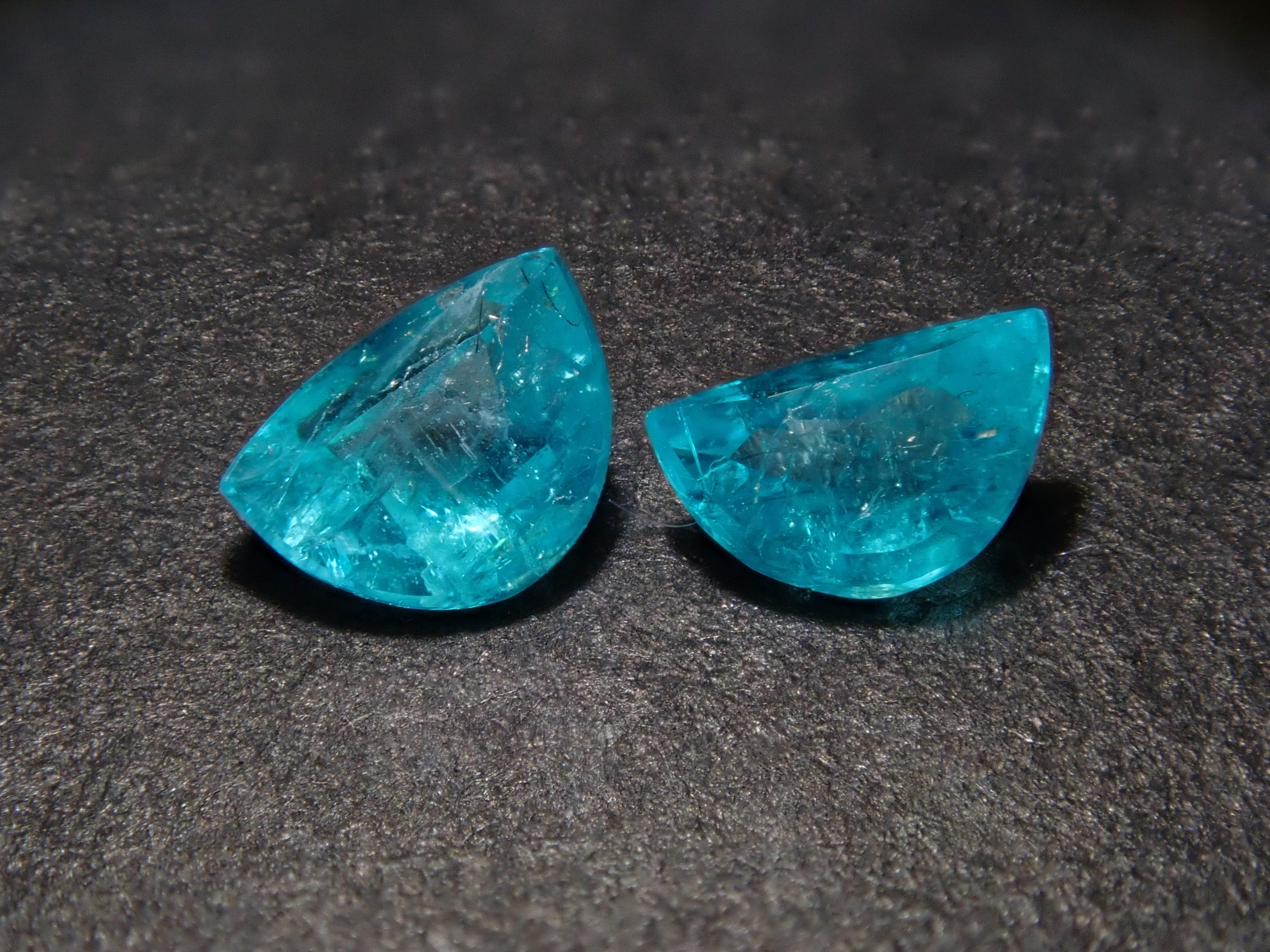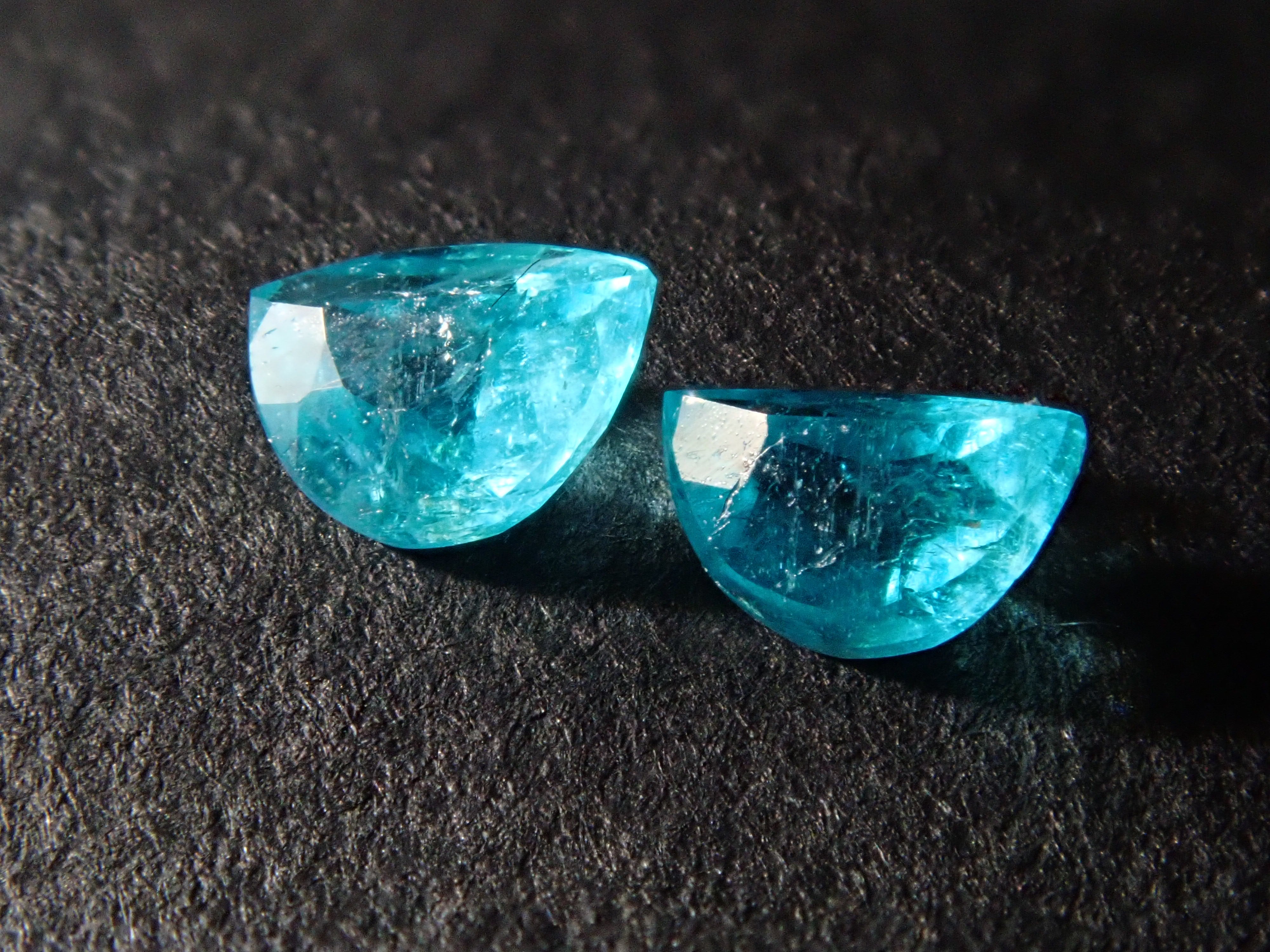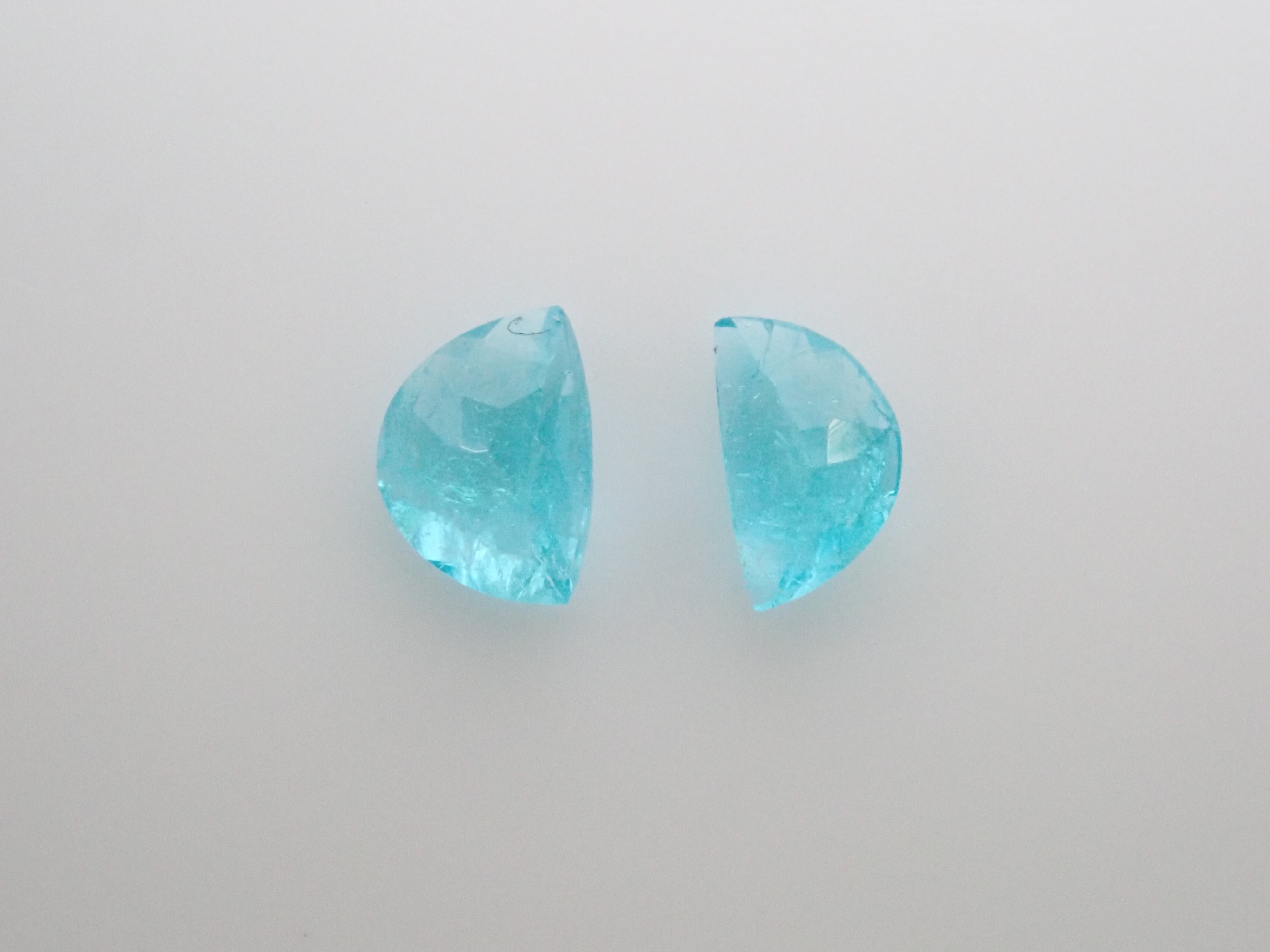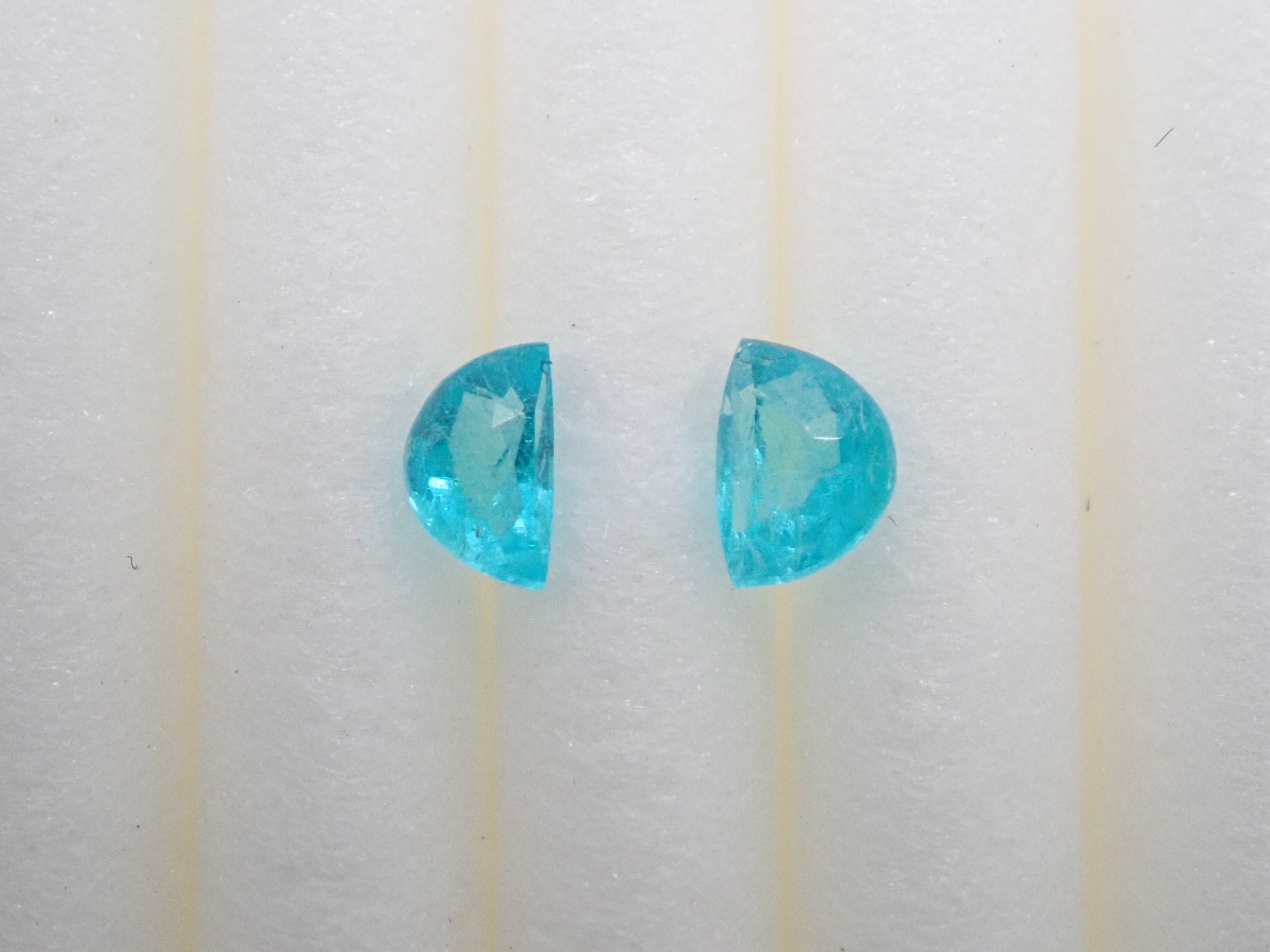 一對半月形切割的巴西帕拉伊巴碧璽(來自巴塔利亞)。 0,092 克拉,0.072 克拉,總計 0.164 克拉。也可用於穿孔。請聯絡我們。