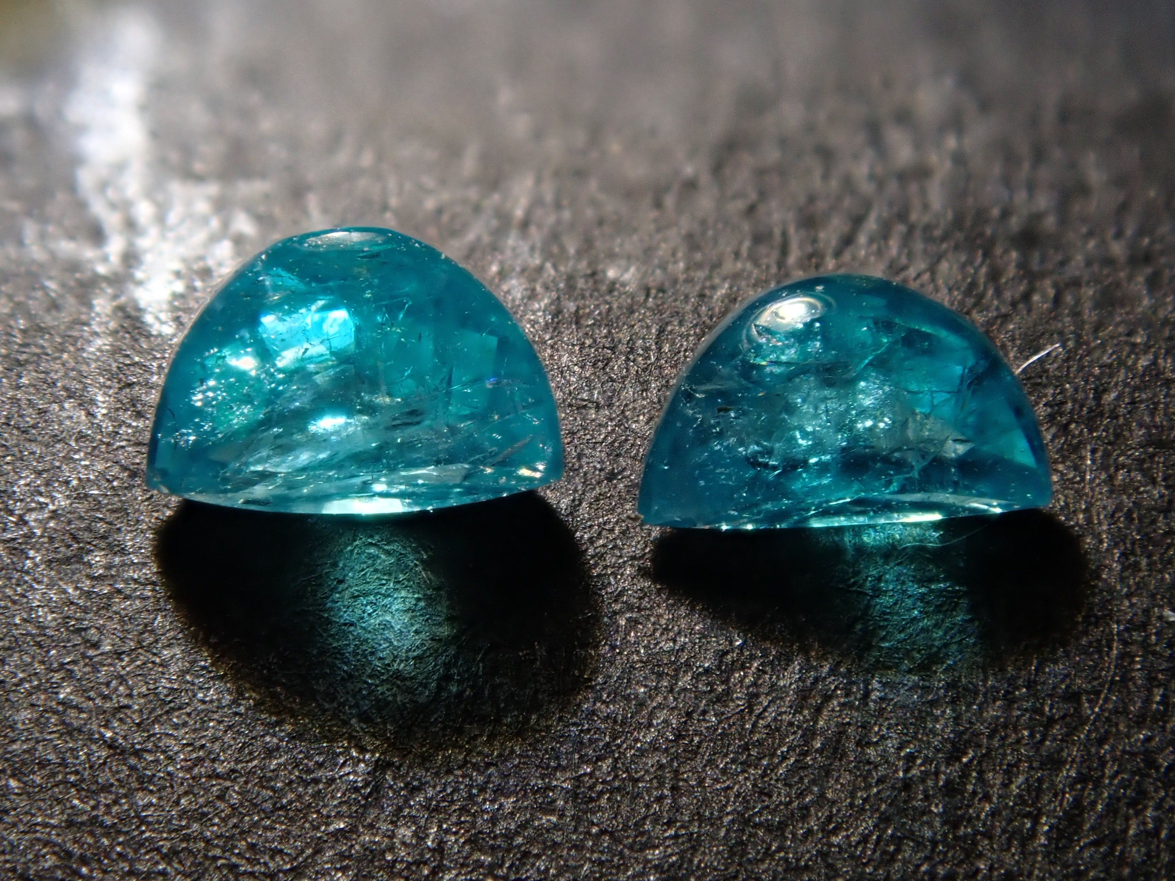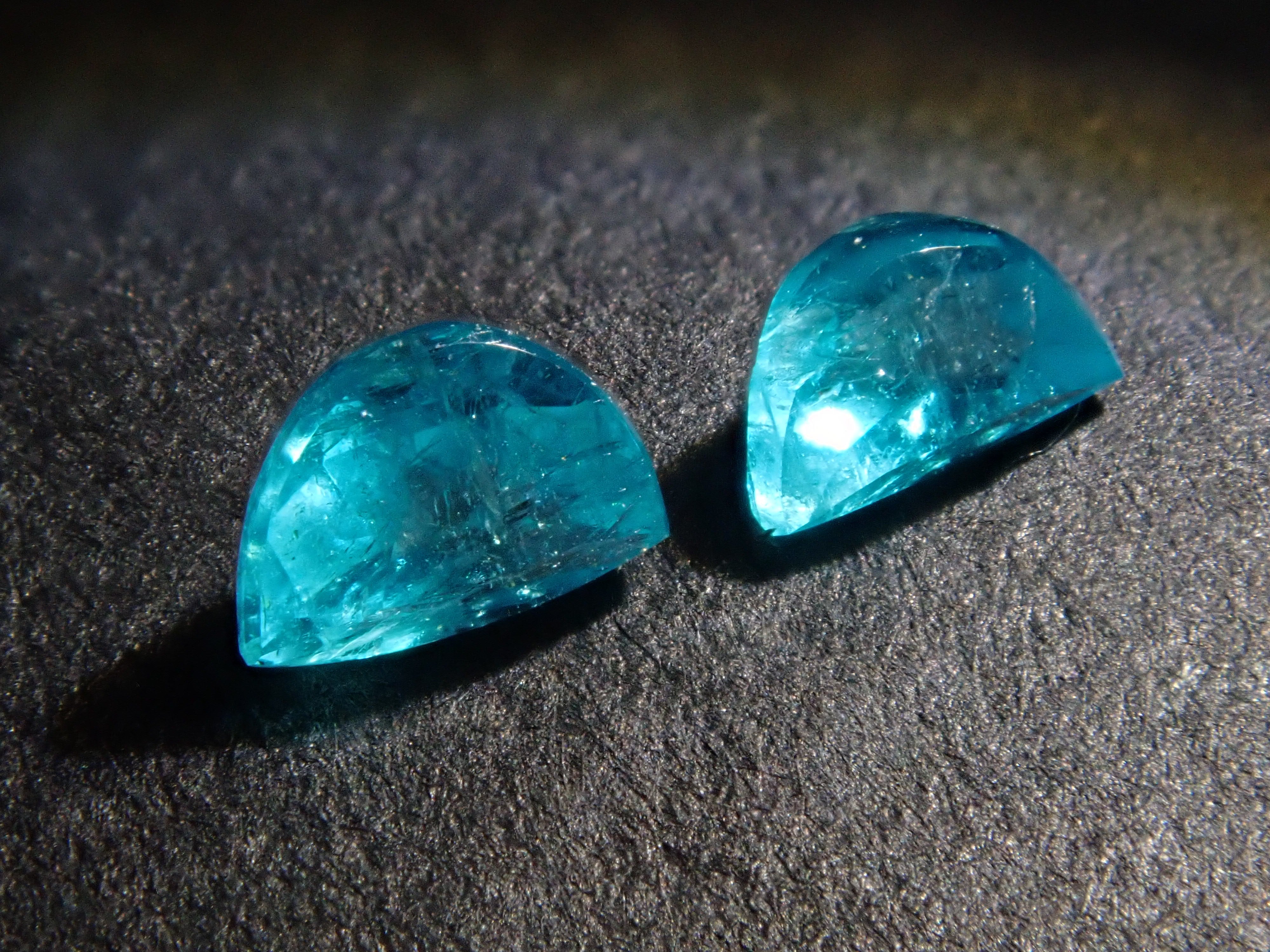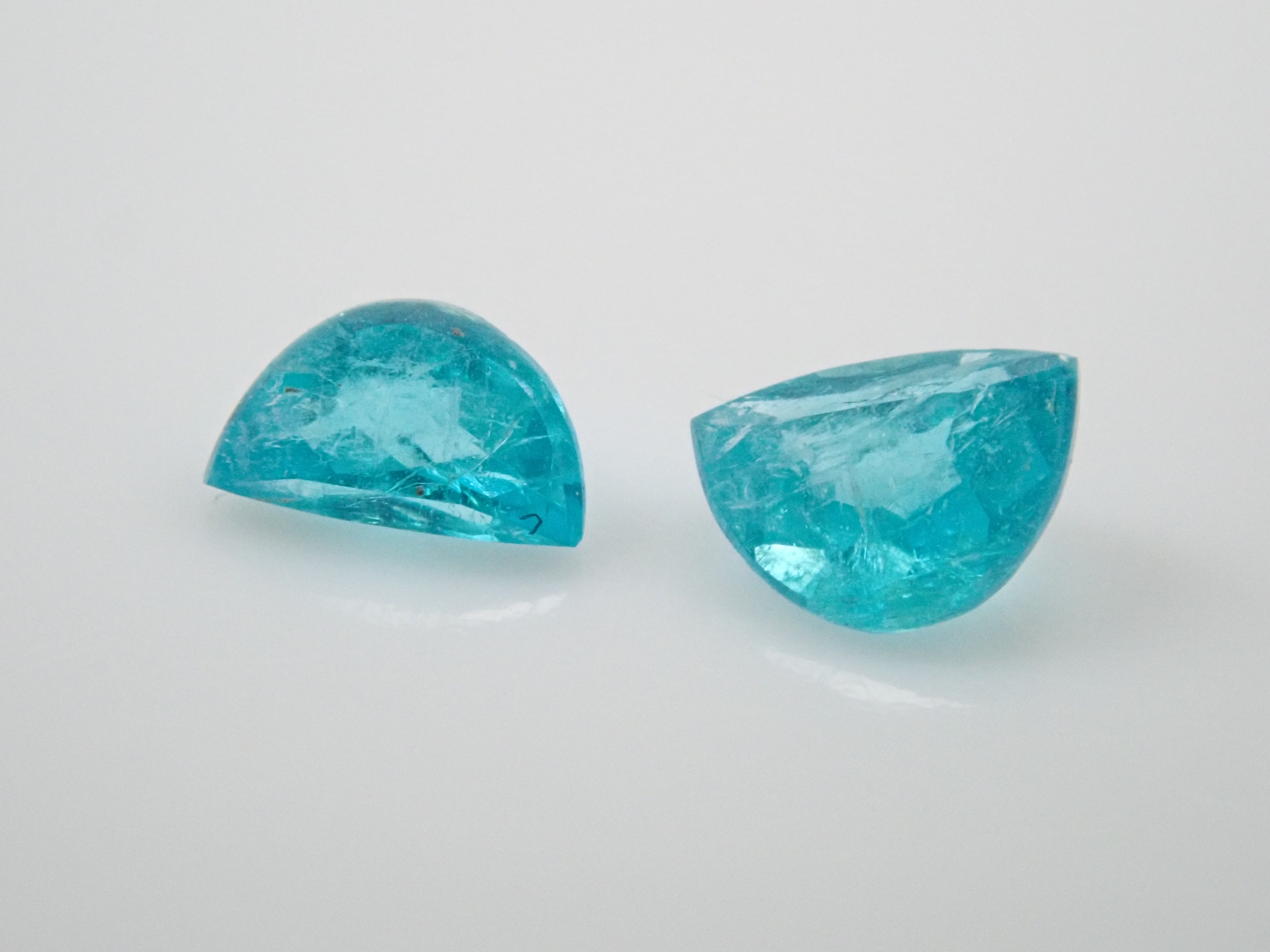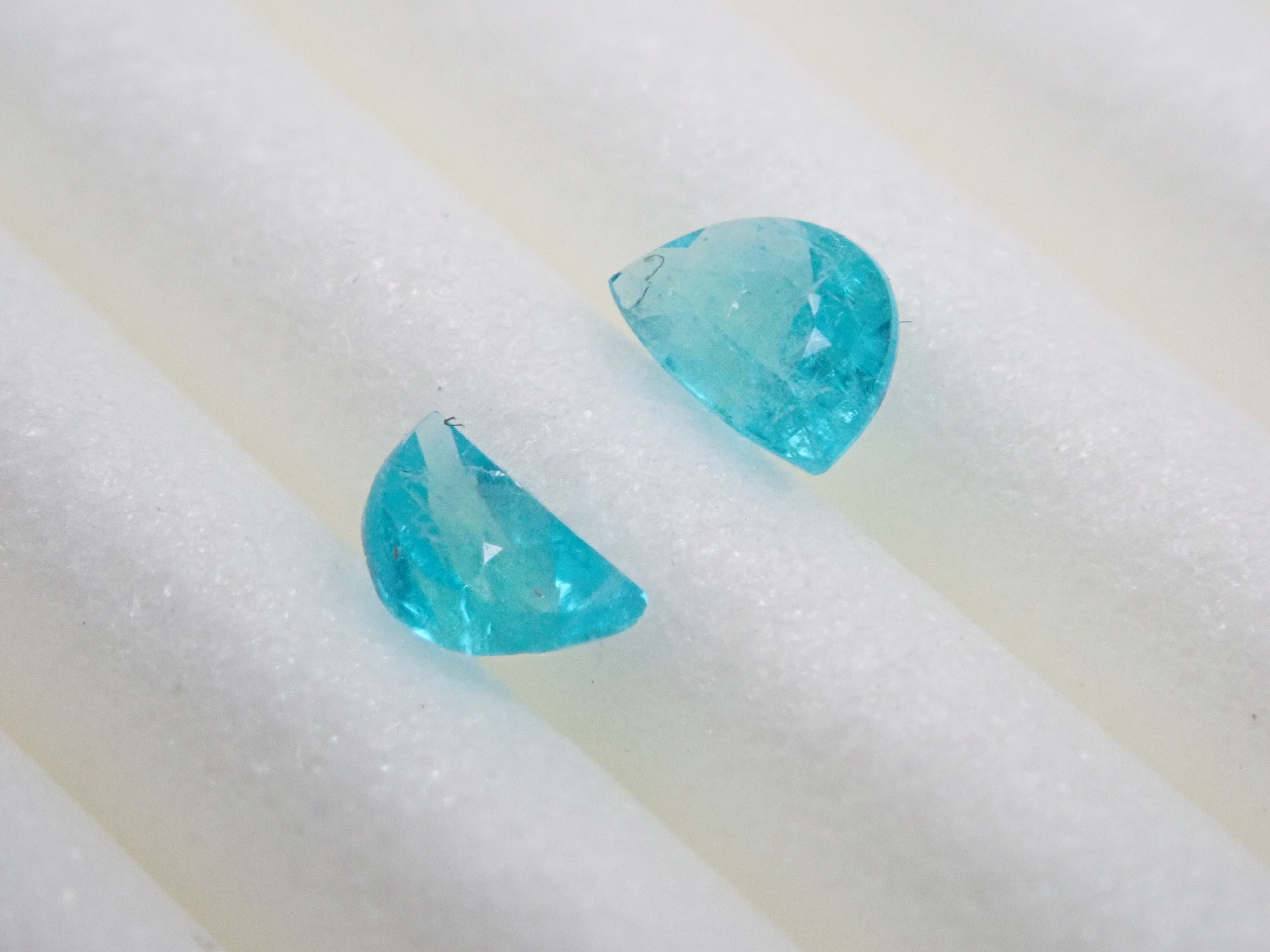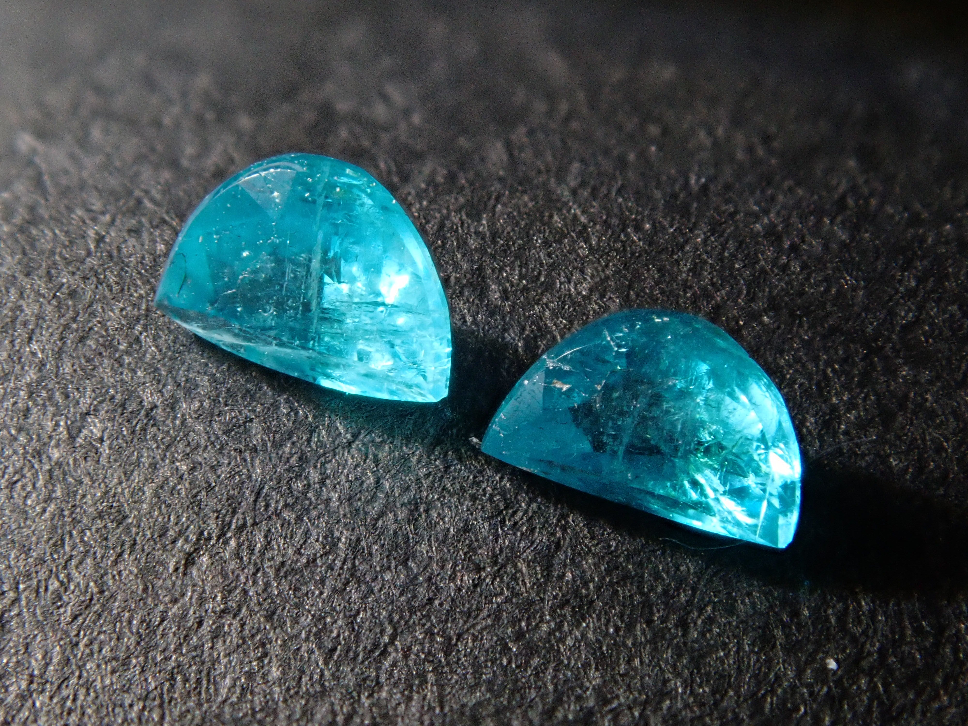 一對半月形切割的巴西帕拉伊巴碧璽(來自巴塔利亞)。 0,092 克拉,0.072 克拉,總計 0.164 克拉。也可用於穿孔。請聯絡我們。