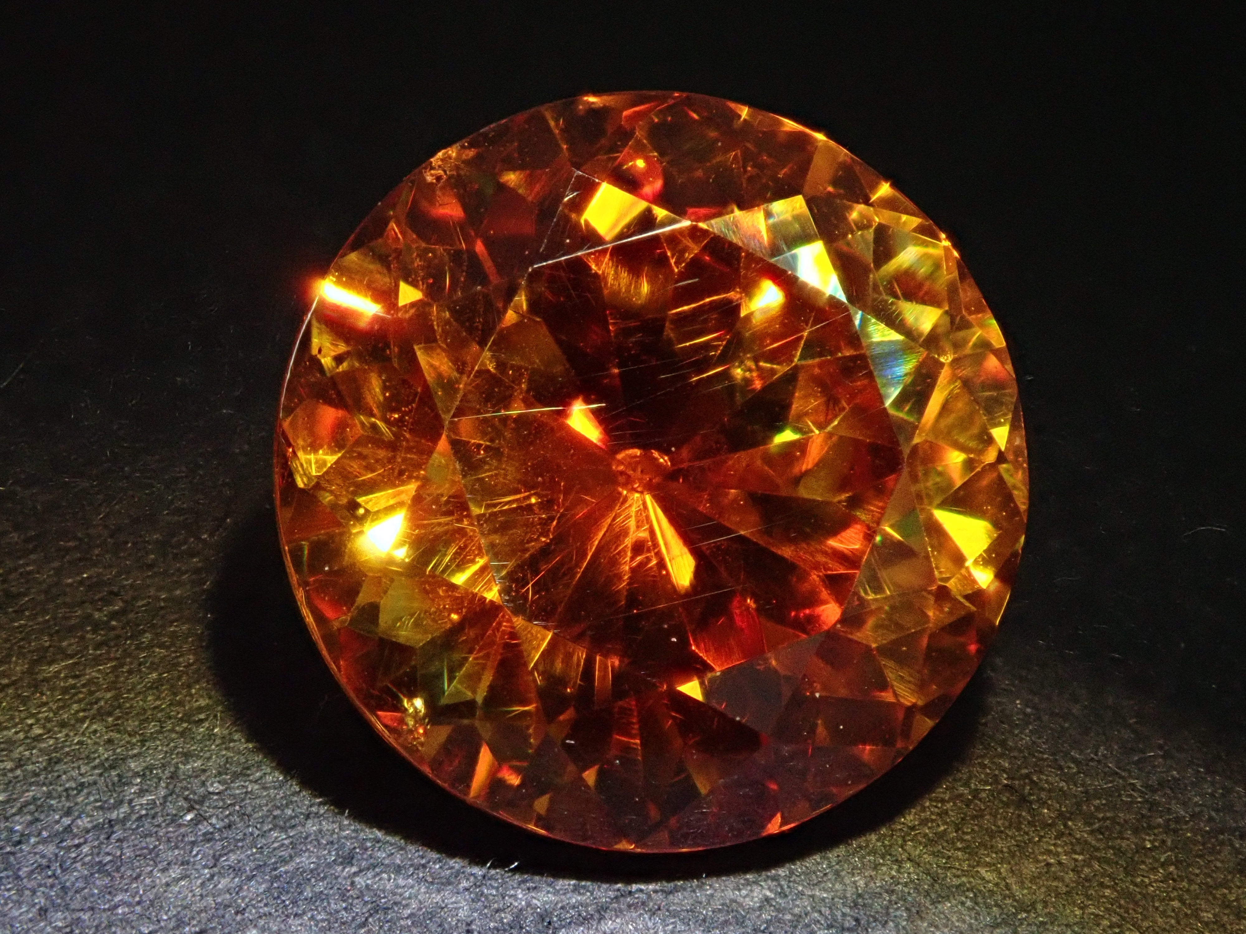 閃鋅礦的色散率接近鑽石的四倍,並呈現出絢麗的火彩。據說是流通量很小、市場上數量不多的稀有寶石之一。底色有黃、橙、綠等,在火中可以欣賞到黃、棕、橙、紅、綠等各種顏色。這是閃鋅礦10mm,在書籍和珠寶百科全書也有發表。