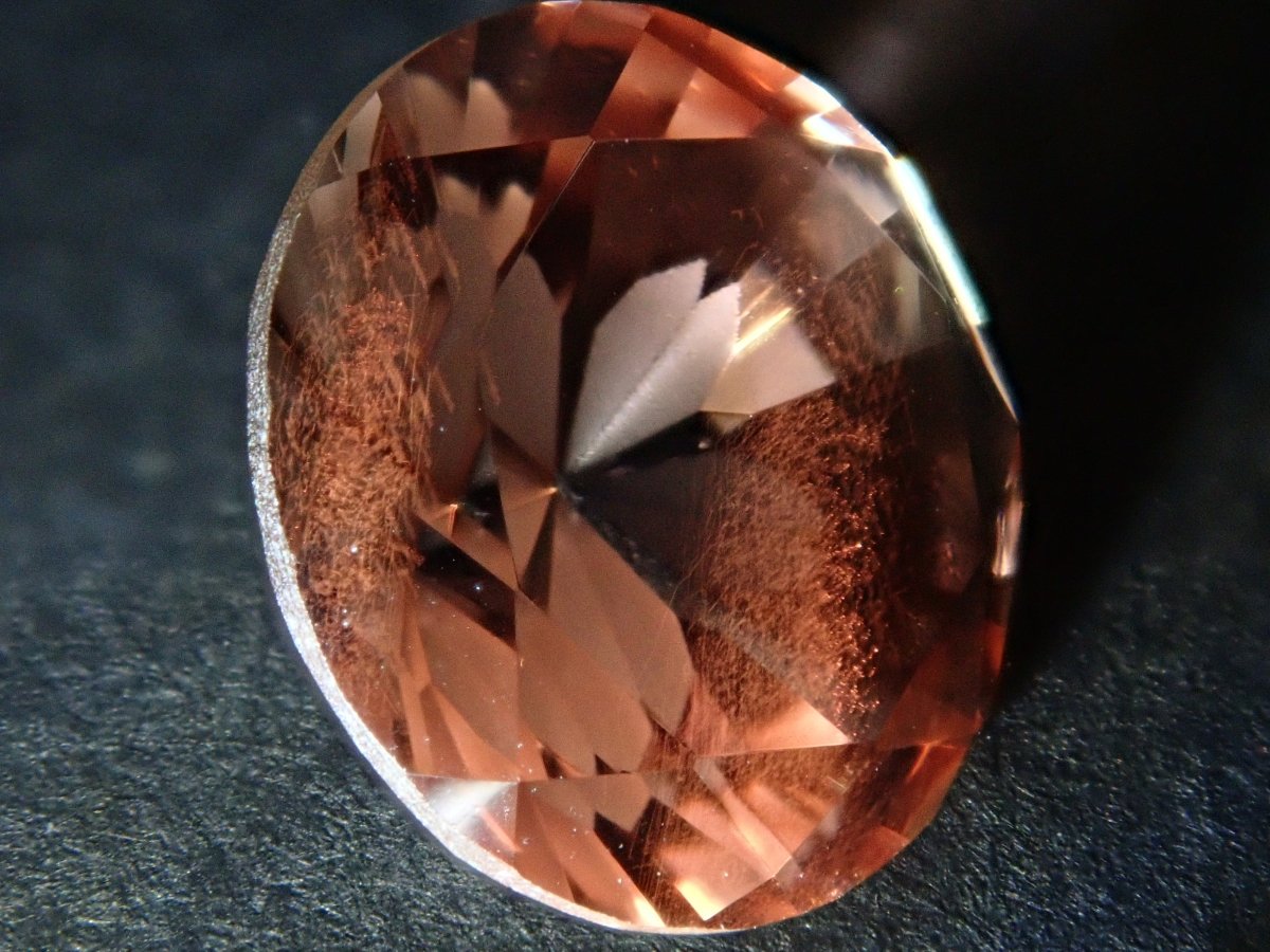 俄勒岡日光石據說是世界上最美麗的拉長石。近年來,這種石頭越來越受歡迎。還有一種稱為散光(席勒效應)的寶石,其中寶石內部的內含物會像閃光一樣反射。為了準確地傳達這些光學效果,攝影時使用筆燈。