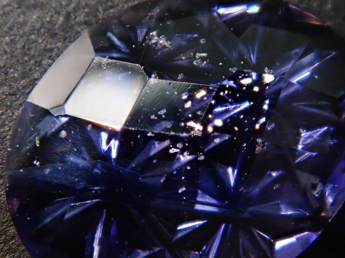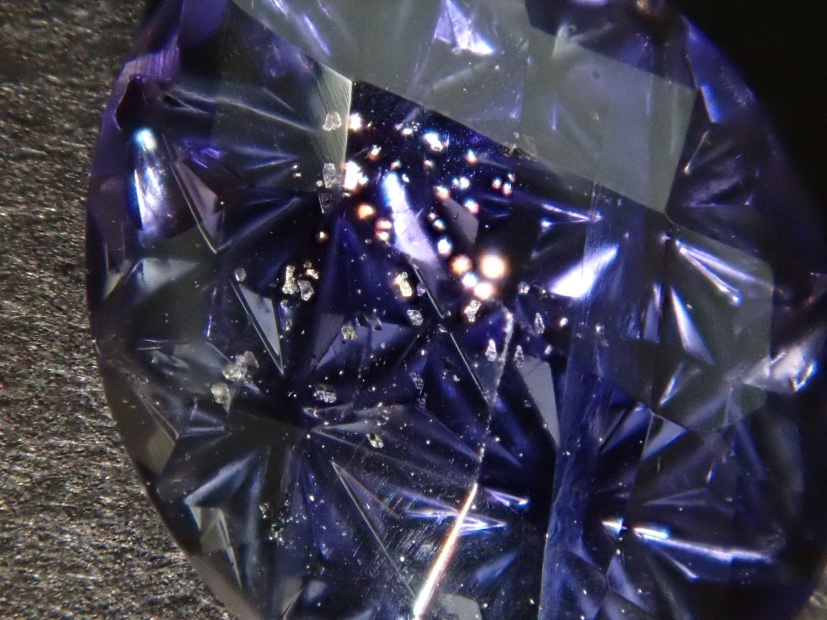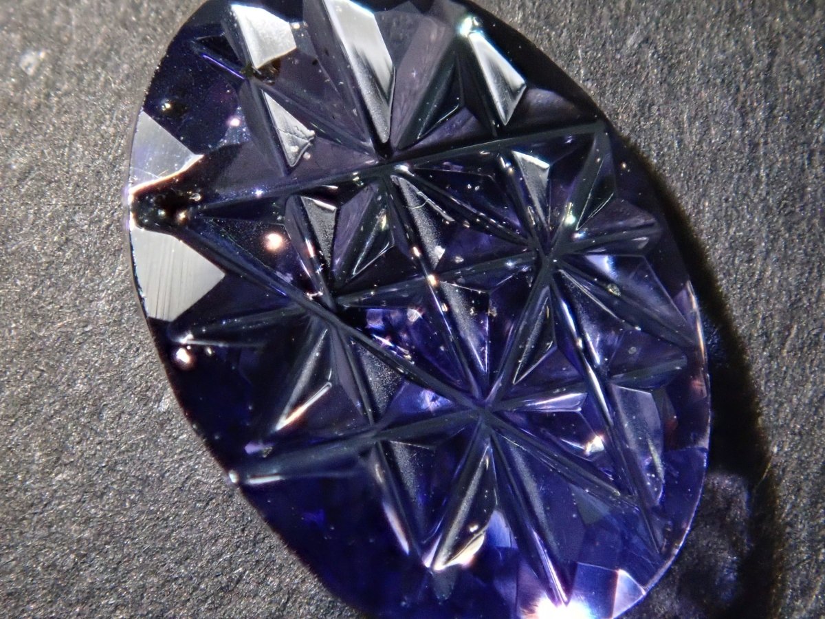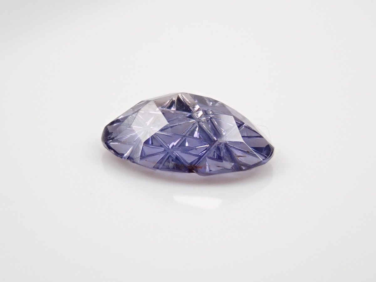 這是由清水寶石的代表清水幸雄先生和Jewelry Craft Fukasawa代表的深澤洋一先生兩位大師創作的甲州寶石切子的原創切工類型。清水先生負責刻面,深澤先生負責刻面。深藍色堇青石日光石猶如浩瀚的夜空,飾有被稱為 irodori 的精緻切割。底色較深,可欣賞清晰的切割線。