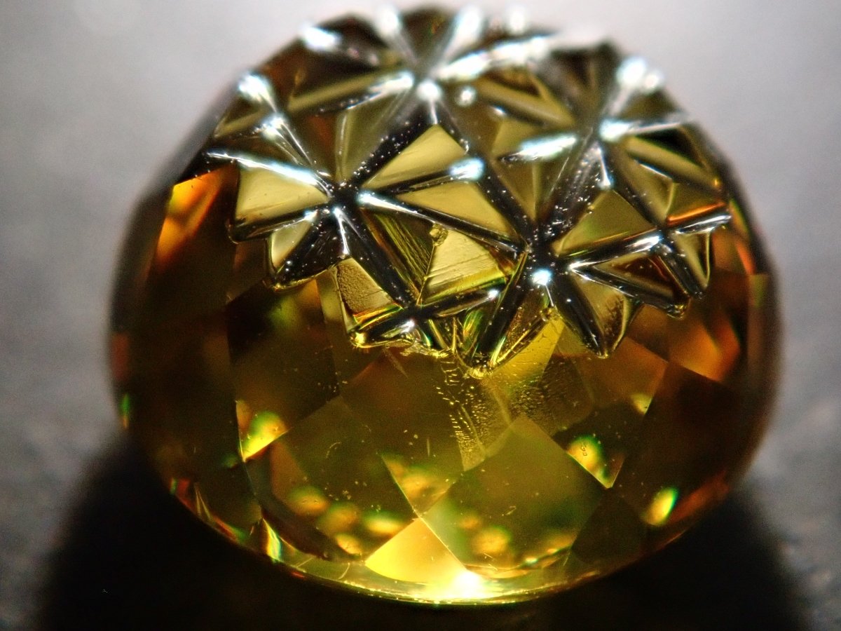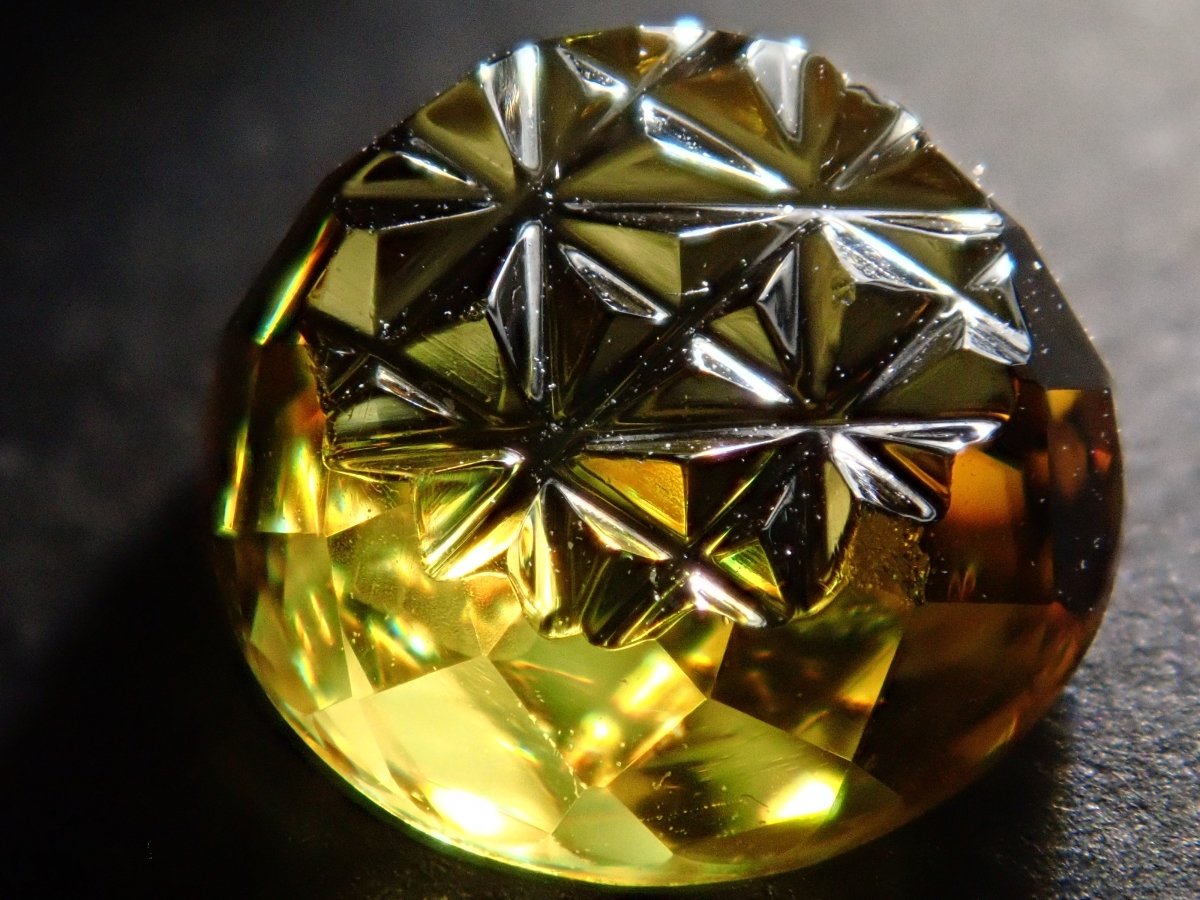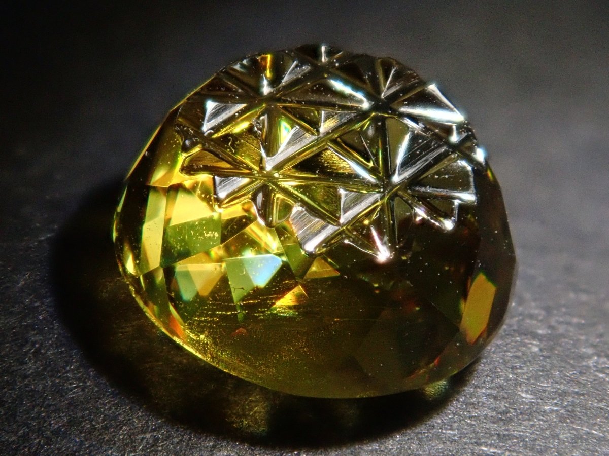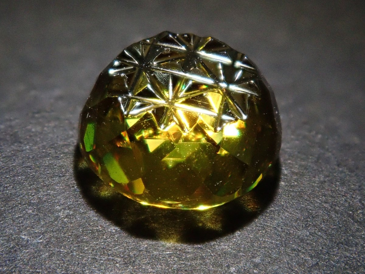 這是由深澤洋一 (Yoichi Fukasawa) 用甲州寶石切割玻璃製成的鬆散榔石。它有一個叫做 Aya 的切口。您還可以享受榍石特有的火。