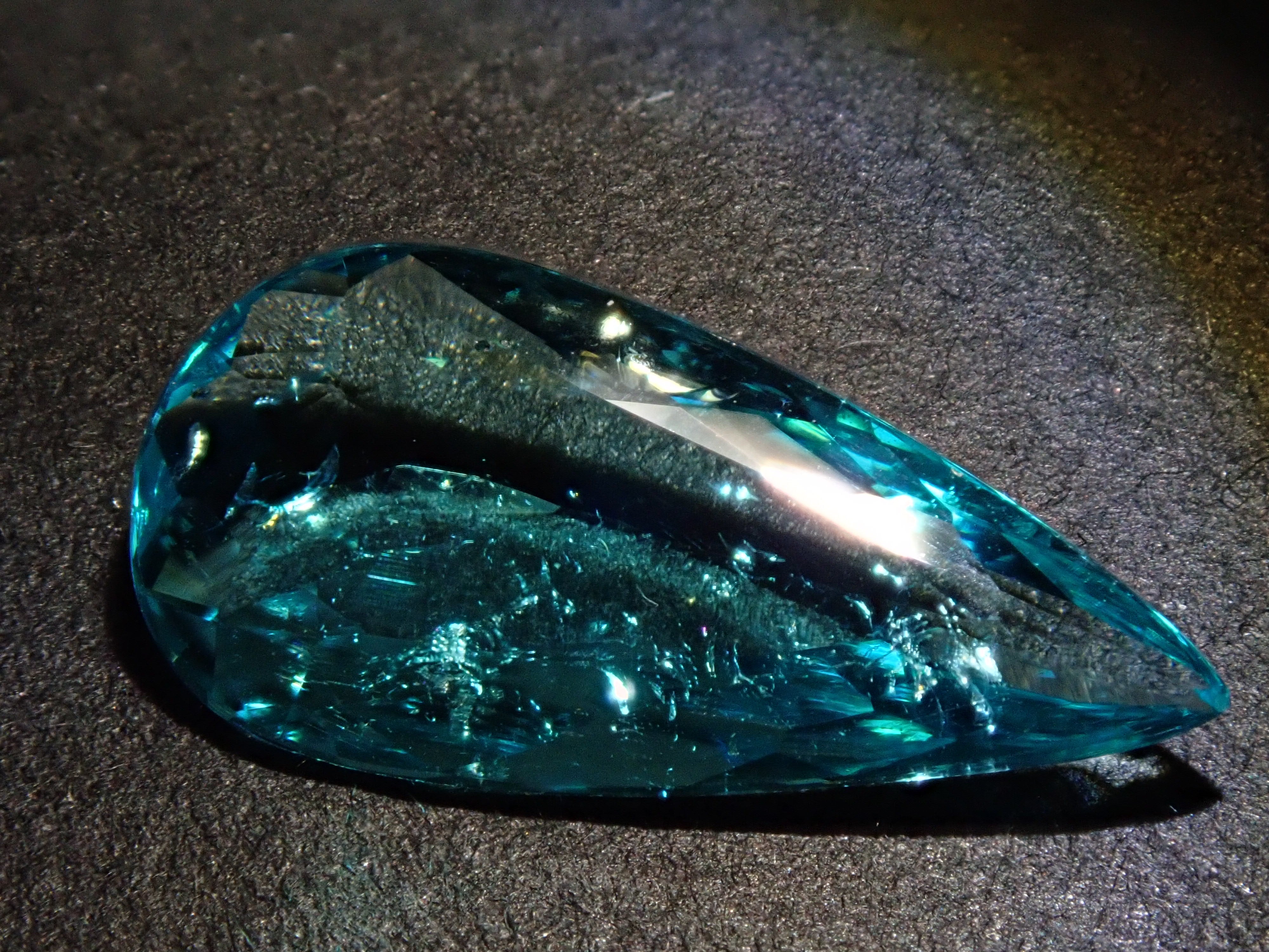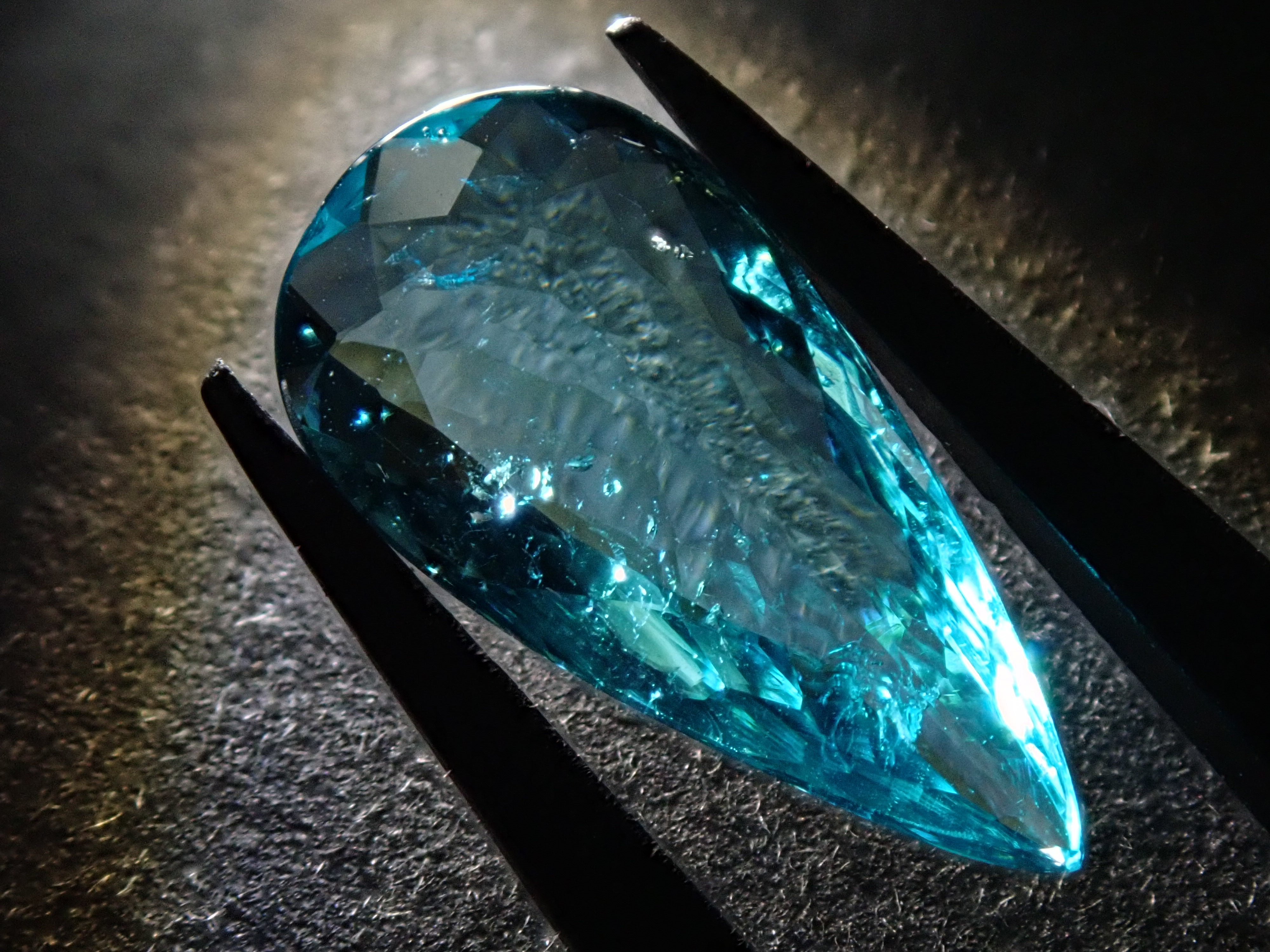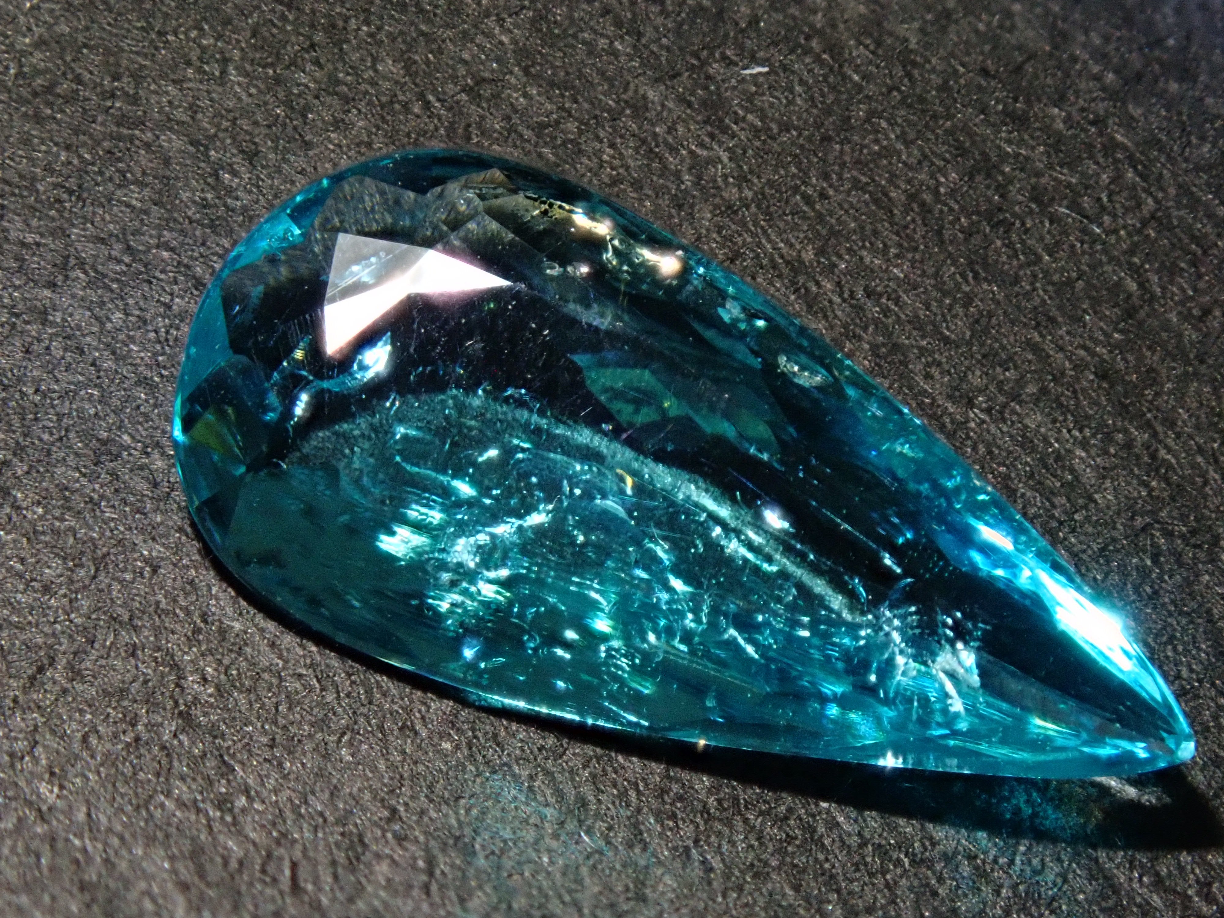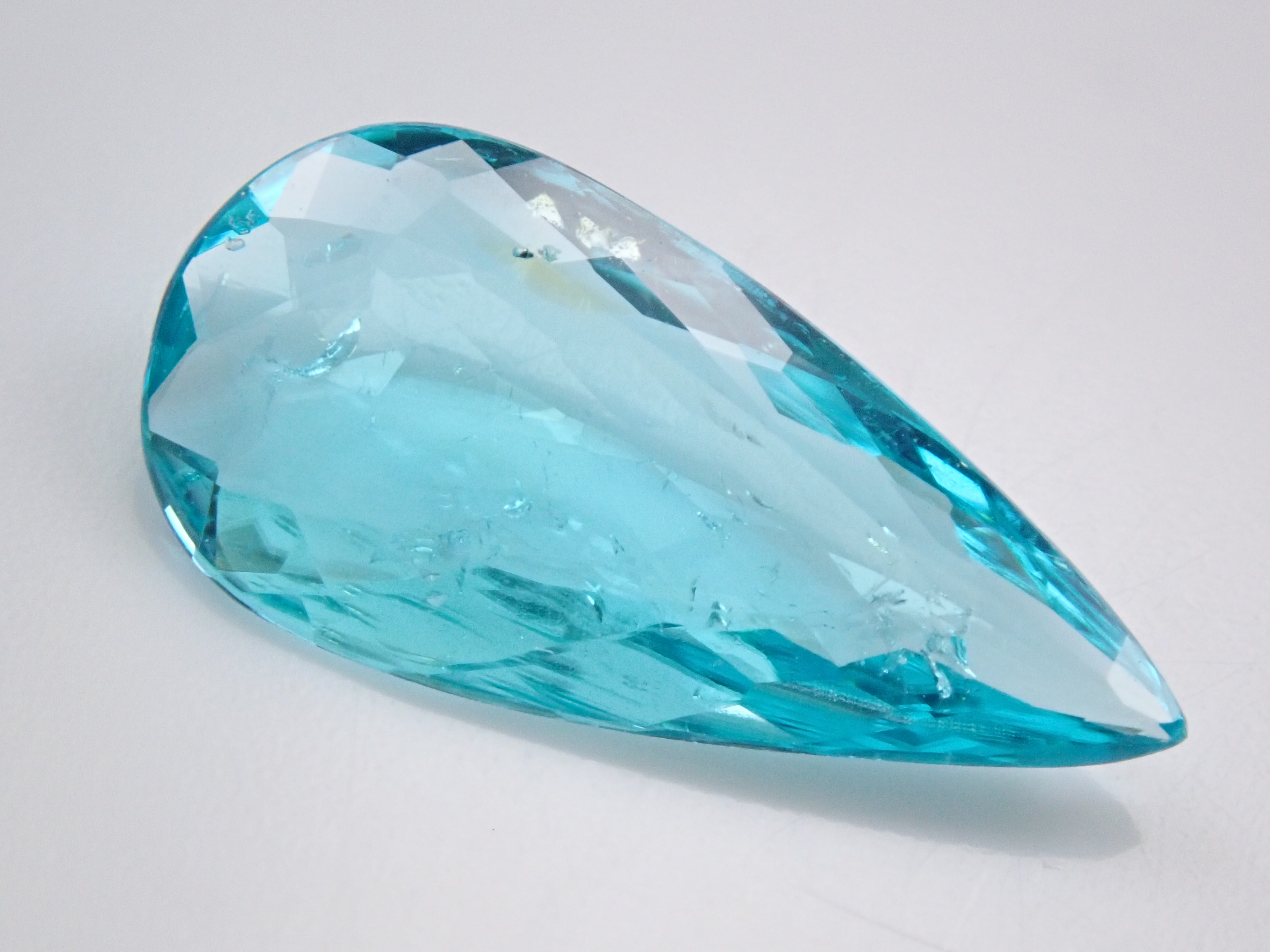 帕拉伊巴碧璽有著不同於大海的藍色或天空的藍色的精緻色彩。它在日本的定義是“含有銅和錳的藍色到綠色碧璽(無論產地)。”它是一種非常受歡迎的寶石。梨形切割帕拉伊巴碧璽,質地良好,透明度高。隨附中央寶石研究所頒發的鑑定證書。