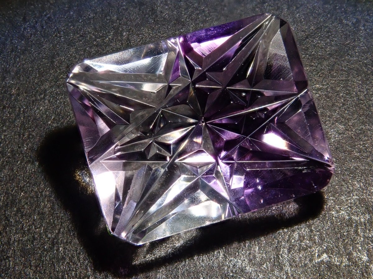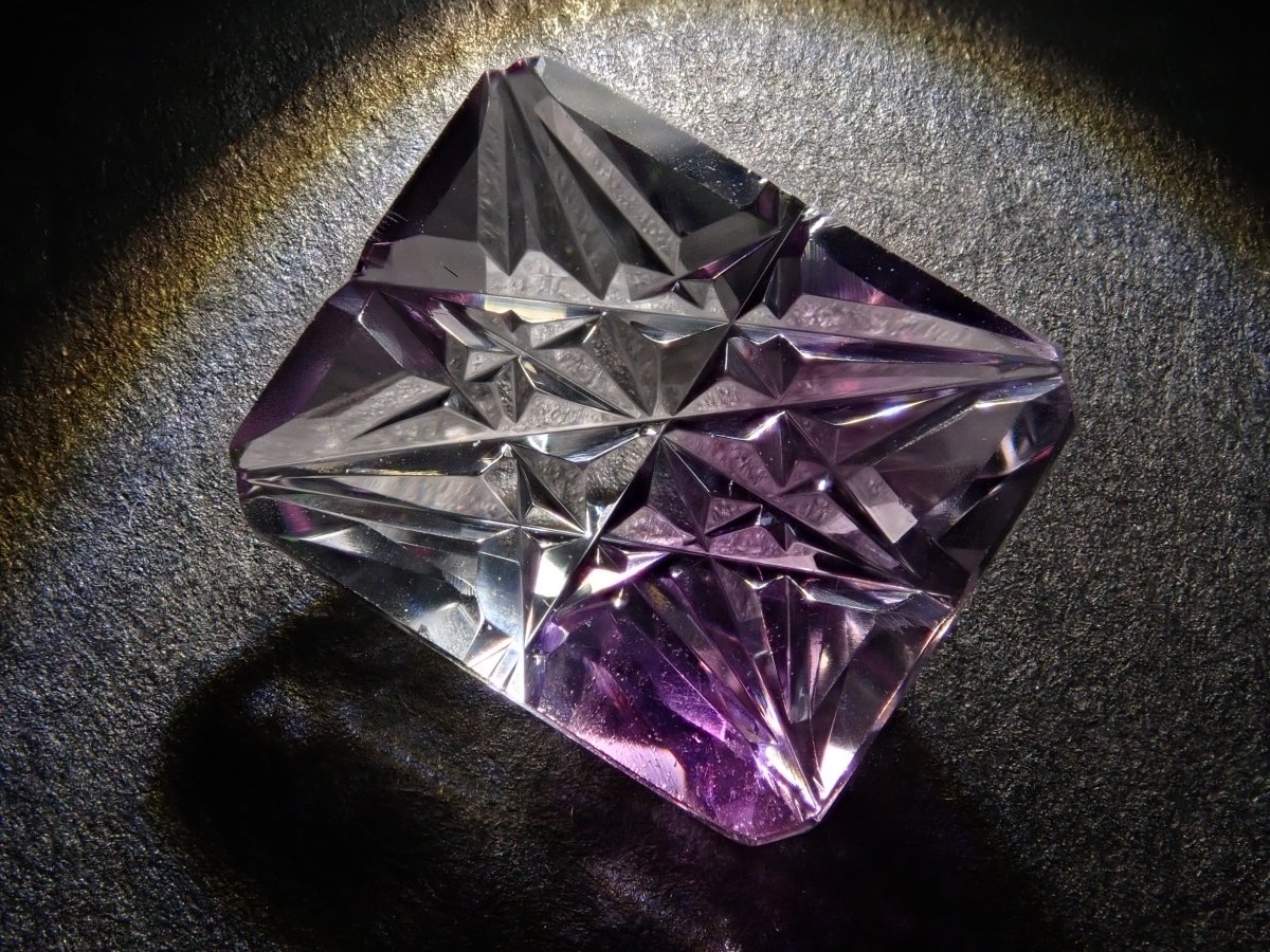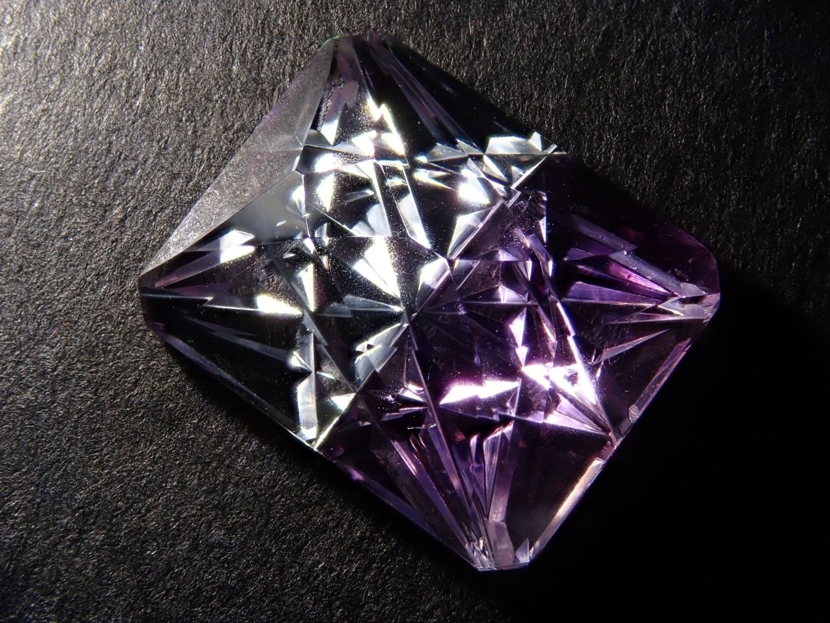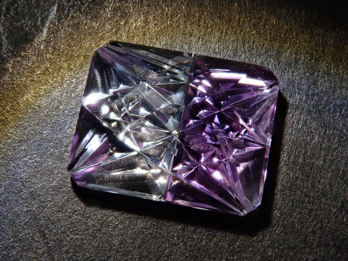 由清水奇蹟代表清水幸雄先生和Jewelry Craft Fukasawa代表深澤洋一先生兩位大師創作。這是甲州寶石切割玻璃。清水先生負責刻面,深澤先生負責刻面。棋盤格剪裁x曉。尺寸為 10 x 8 毫米。
