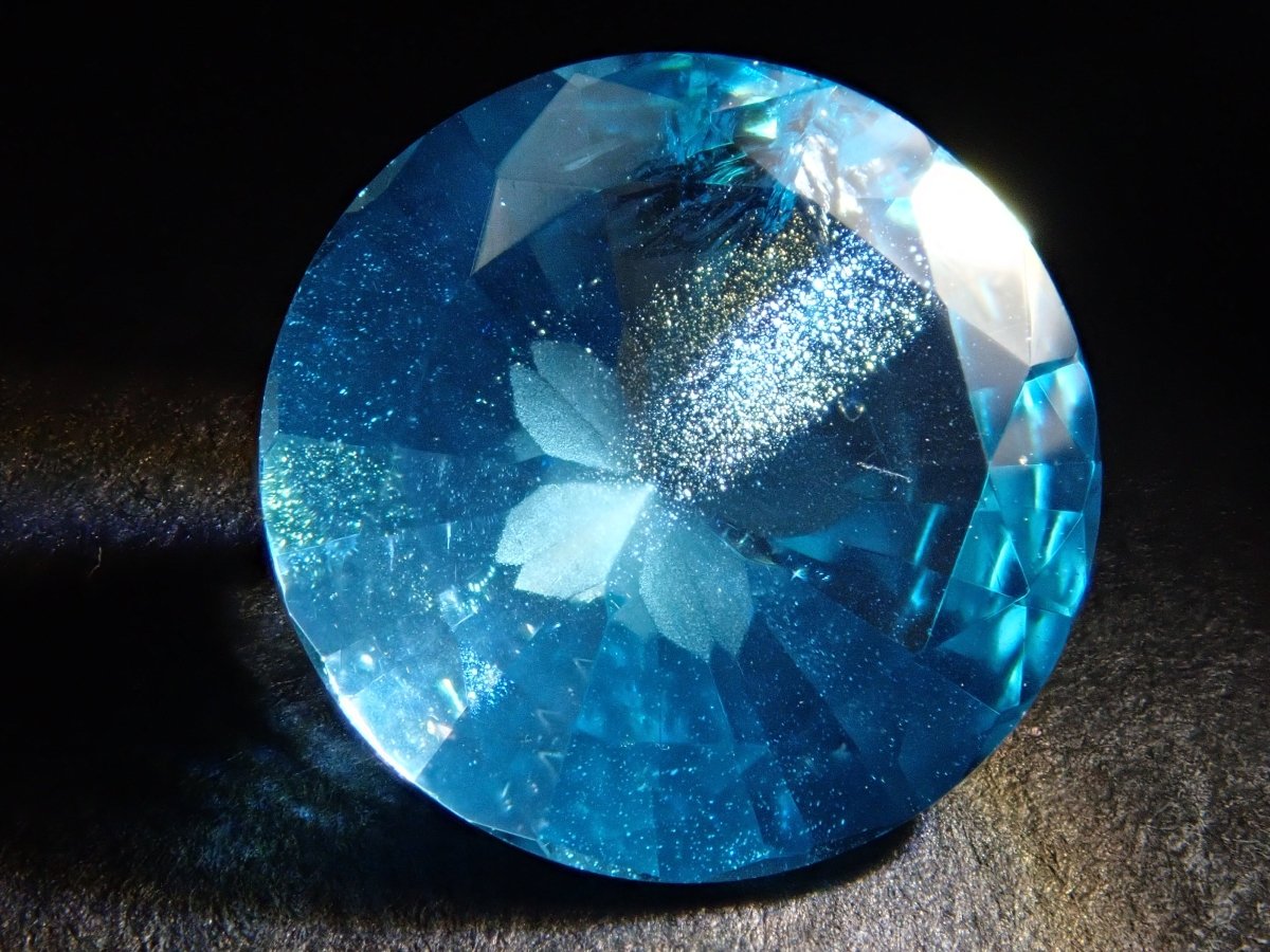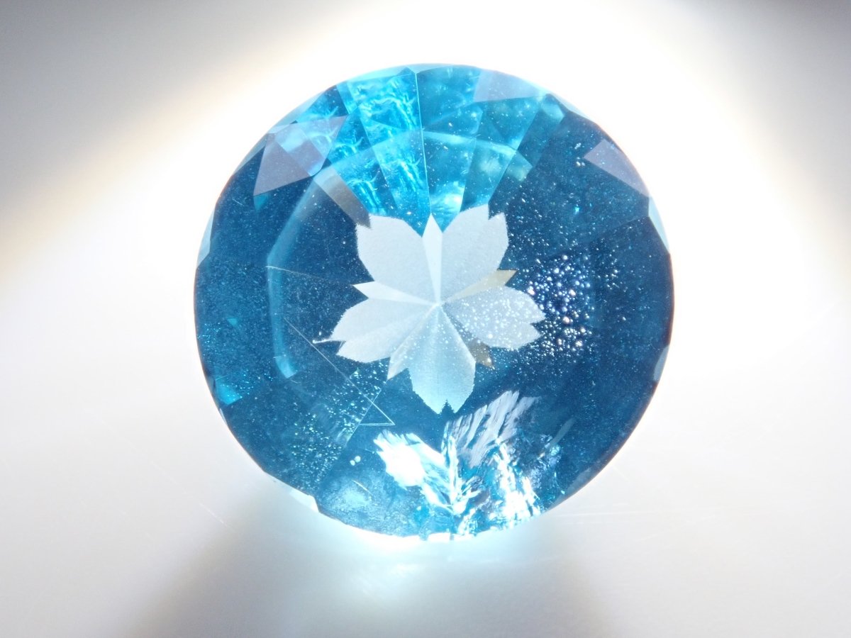 這是清水奇蹟的櫻花切入片。 8mm/1.650ct【 櫻花切入】磷灰石。磷灰石硬度低,製作成櫻花切入非常困難,而且比平時需要更多的時間,所以以後很難繼續引進。這是一顆寶石。 8毫米的尺寸讓您可以欣賞到磷灰石特有的閃閃發光的內含物。