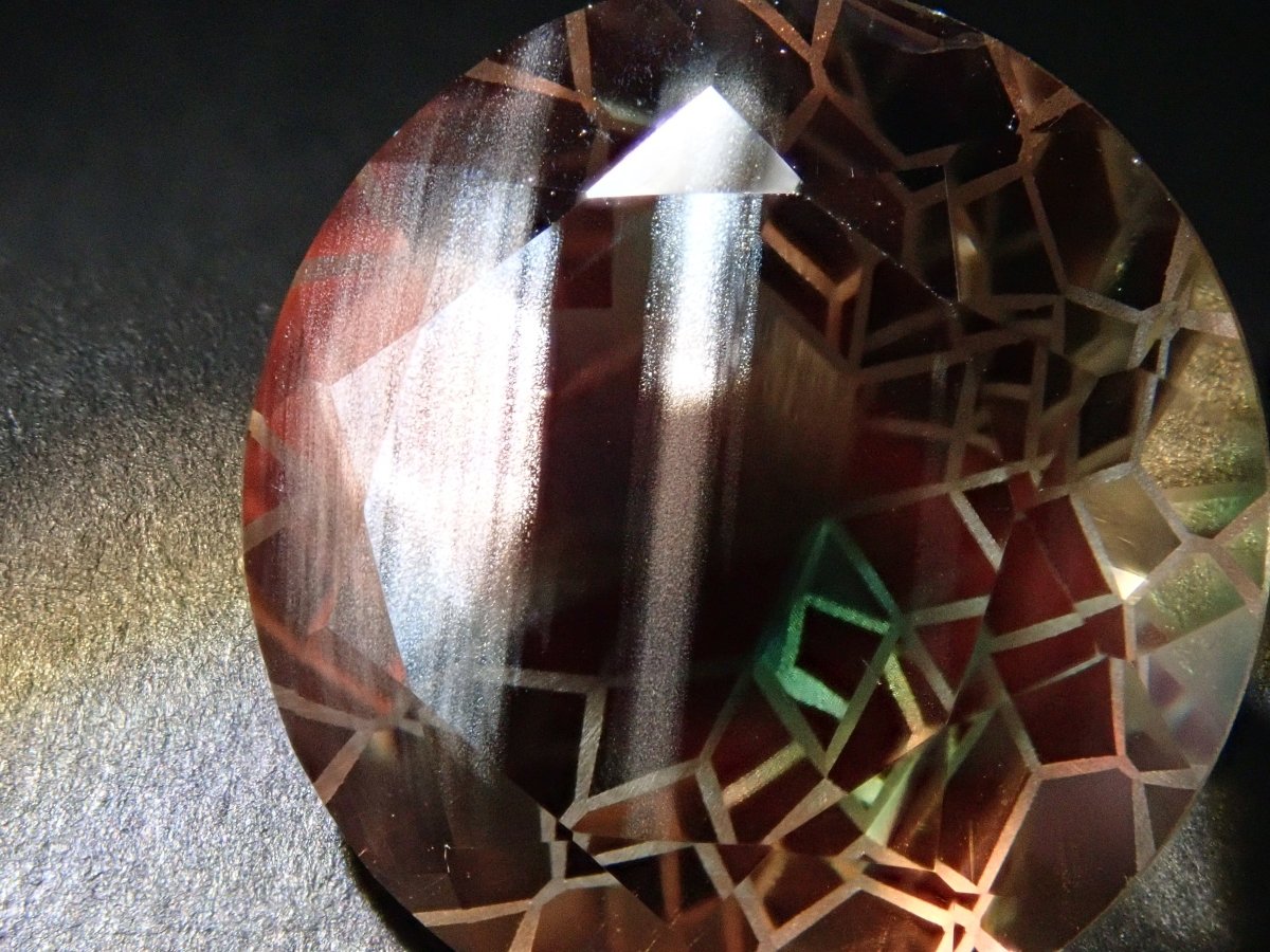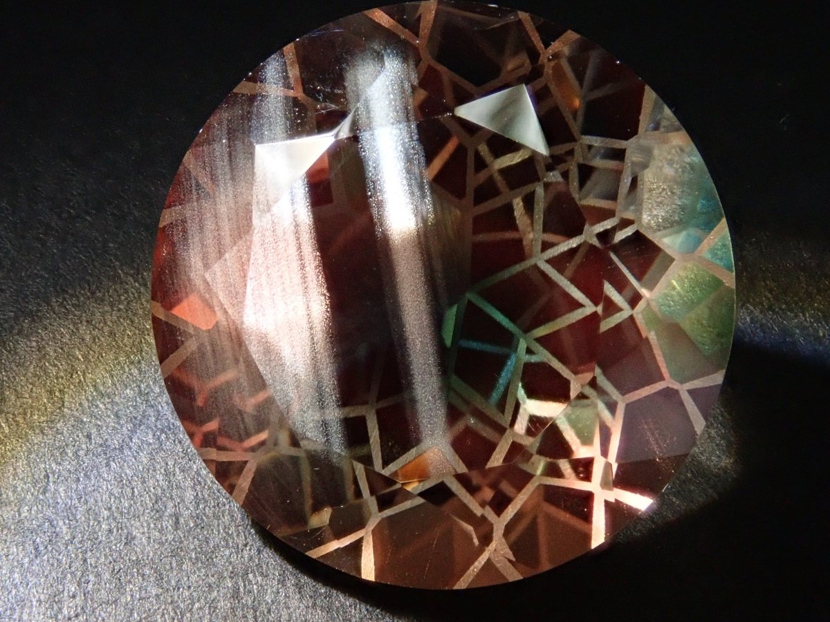 俄勒岡日光石據說是世界上最美麗的拉長石。近年來,這種石頭越來越受歡迎。還有一種稱為散光(席勒效應)的寶石,其中寶石內部的內含物會像閃光一樣反射。為了準確地傳達這些光學效果,攝影時使用筆燈。