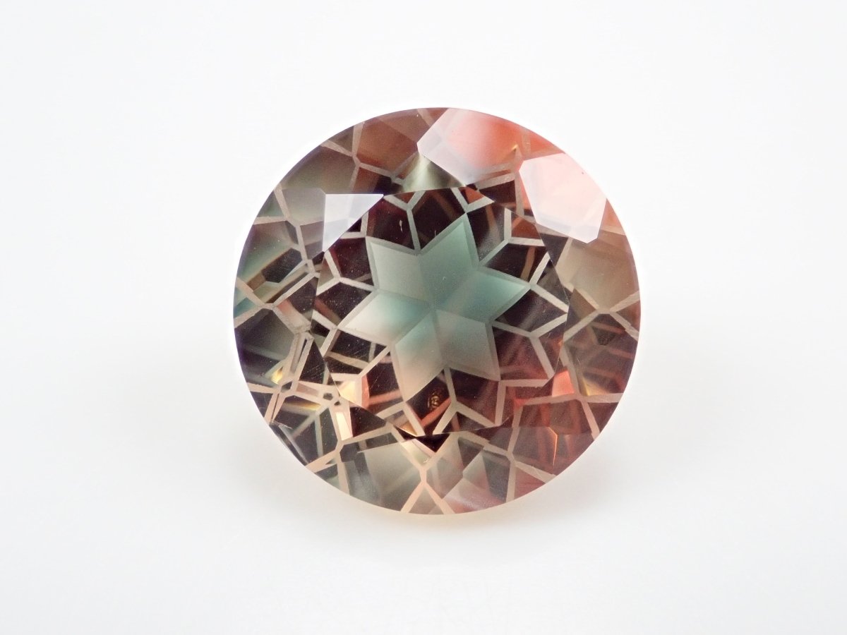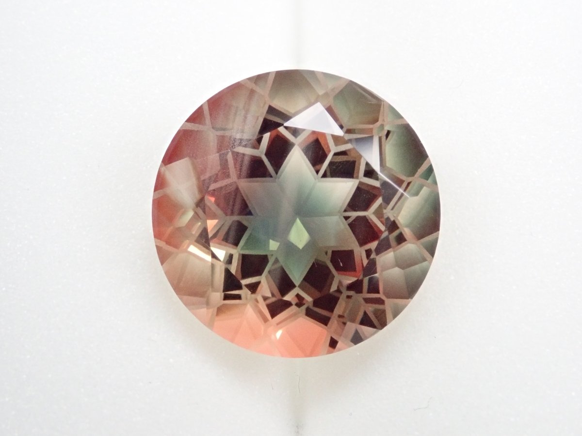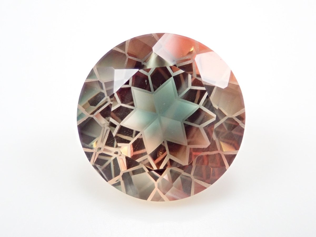 清水奇蹟的蒲公英剪。 14 毫米/9.01 克拉裸露俄勒岡日光石。蒲公英切花一般有4瓣,但這朵有6瓣,實屬罕見。在俄勒岡州日光石中,它是由優質原石打磨而成,顏色特別漂亮的綠色和橙色。尺寸也很大,有 9 克拉。