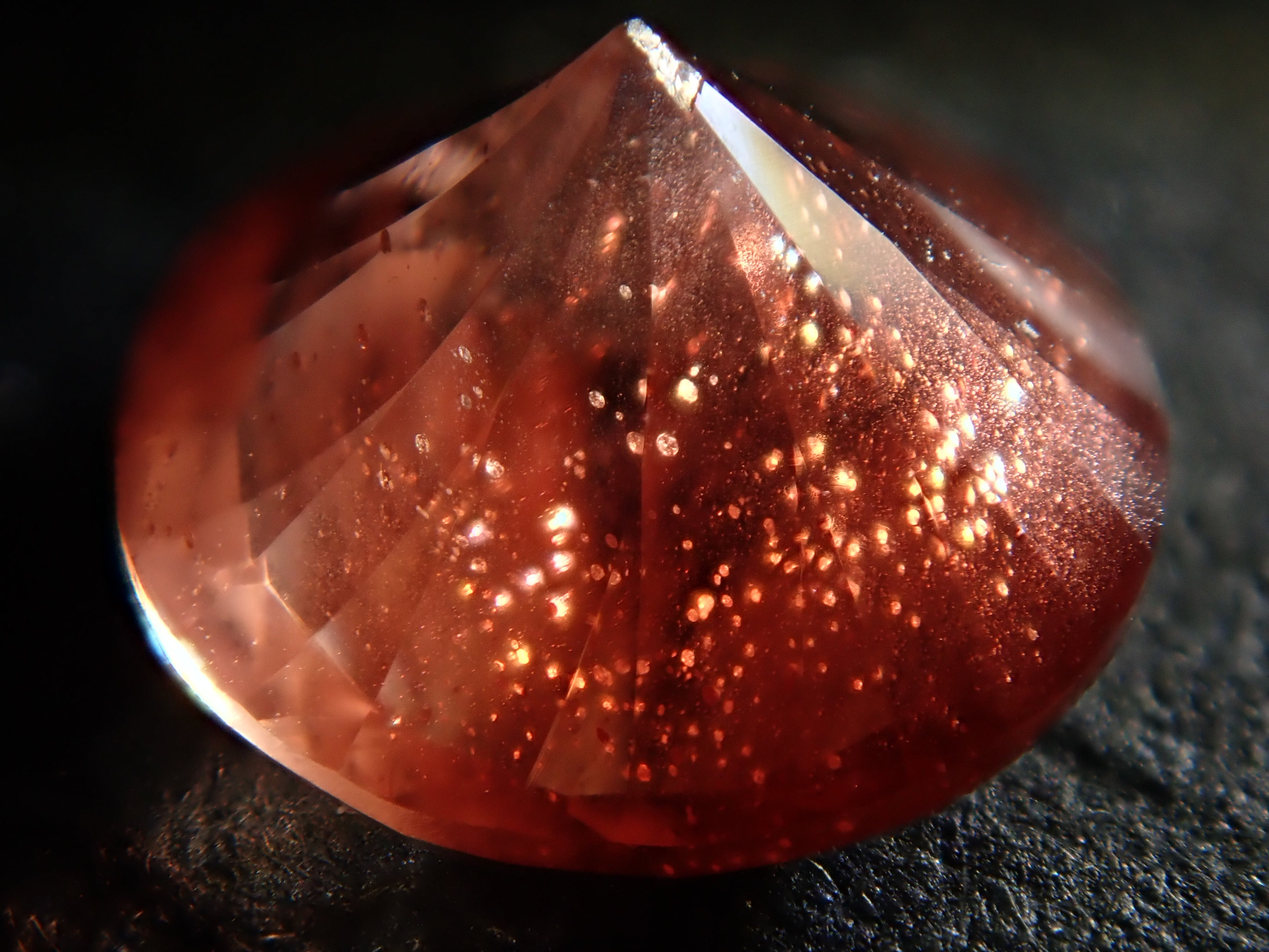 俄勒岡日光石據說是世界上最美麗的拉長石。近年來,這種石頭越來越受歡迎。還有一種稱為散光(席勒效應)的寶石,其中寶石內部的內含物會像閃光一樣反射。為了準確地傳達這些光學效果,攝影時使用筆燈。