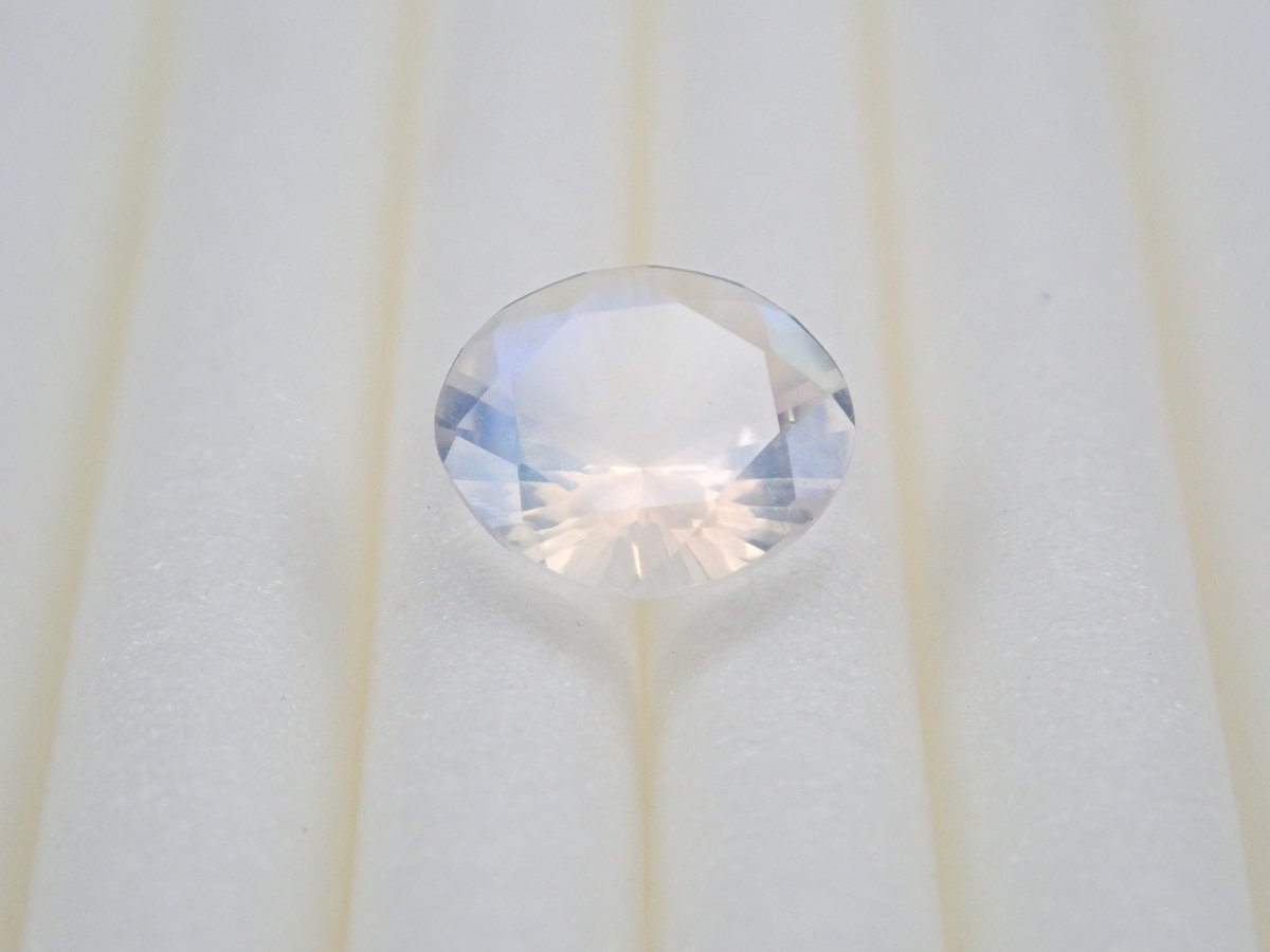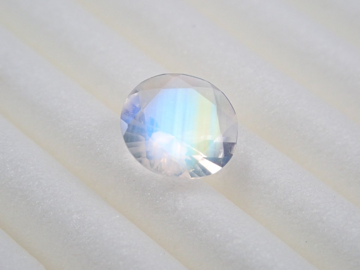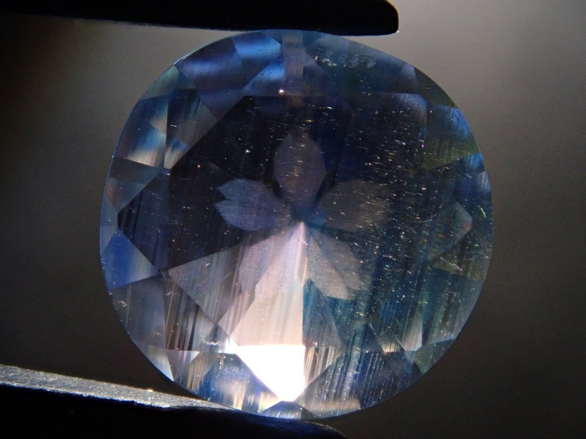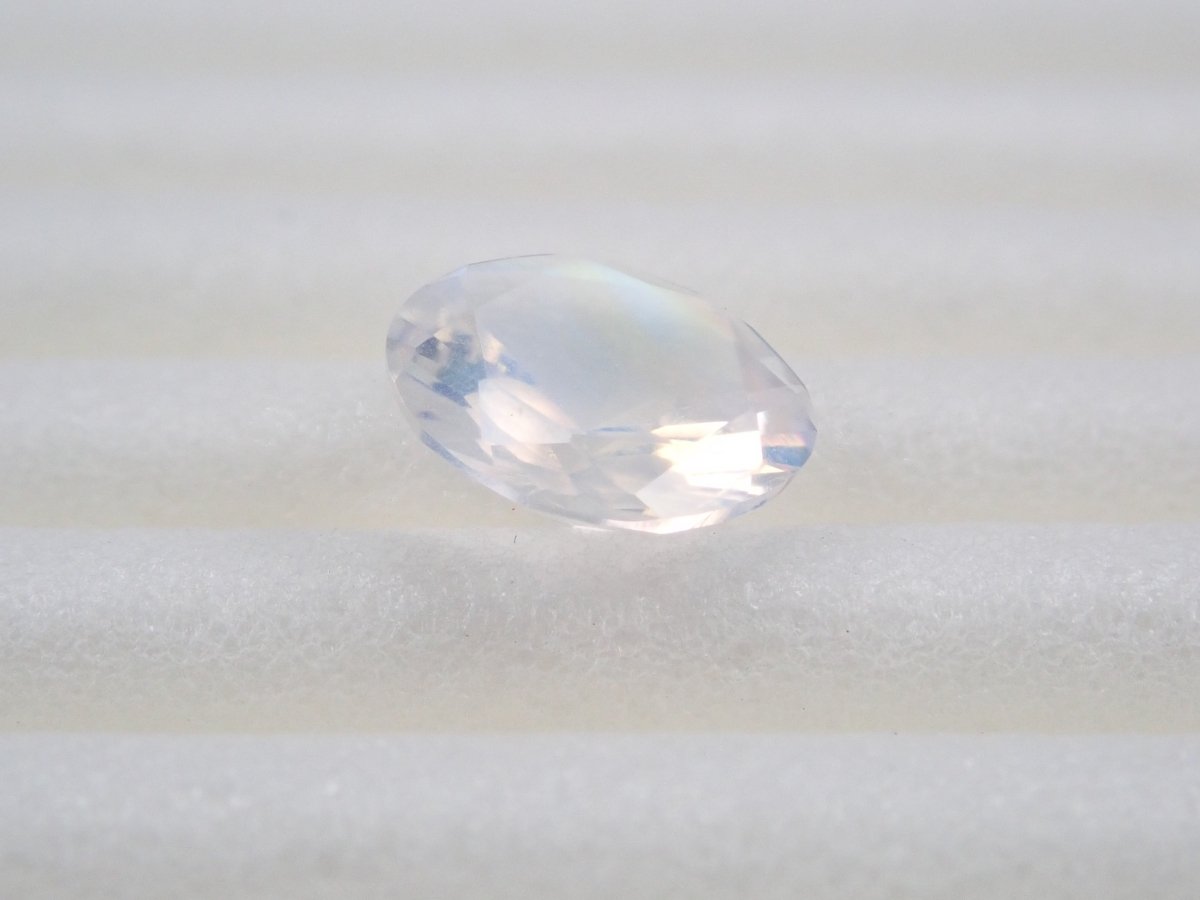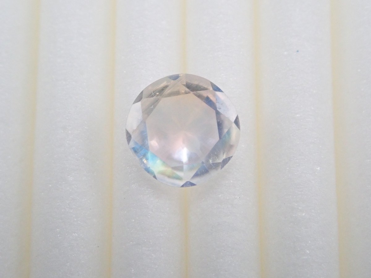 這是清水奇蹟的櫻花切入片。 6 毫米/0.48 克拉彩虹月光石 [ 櫻花切割]。您可以享受櫻花和彩虹的光學效果。