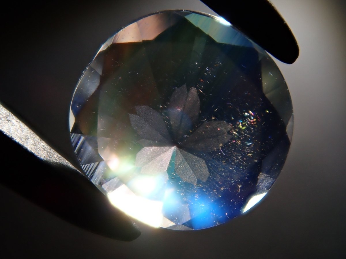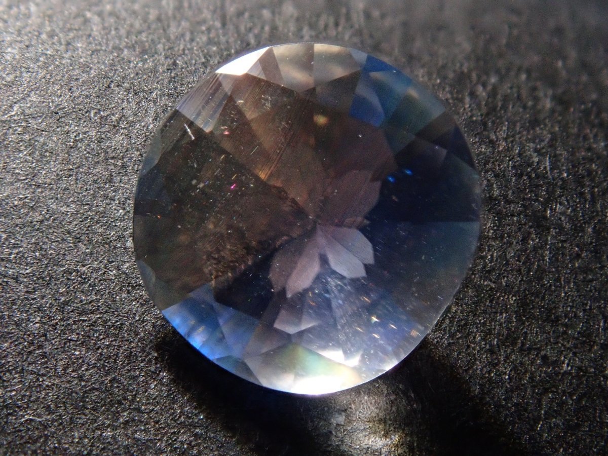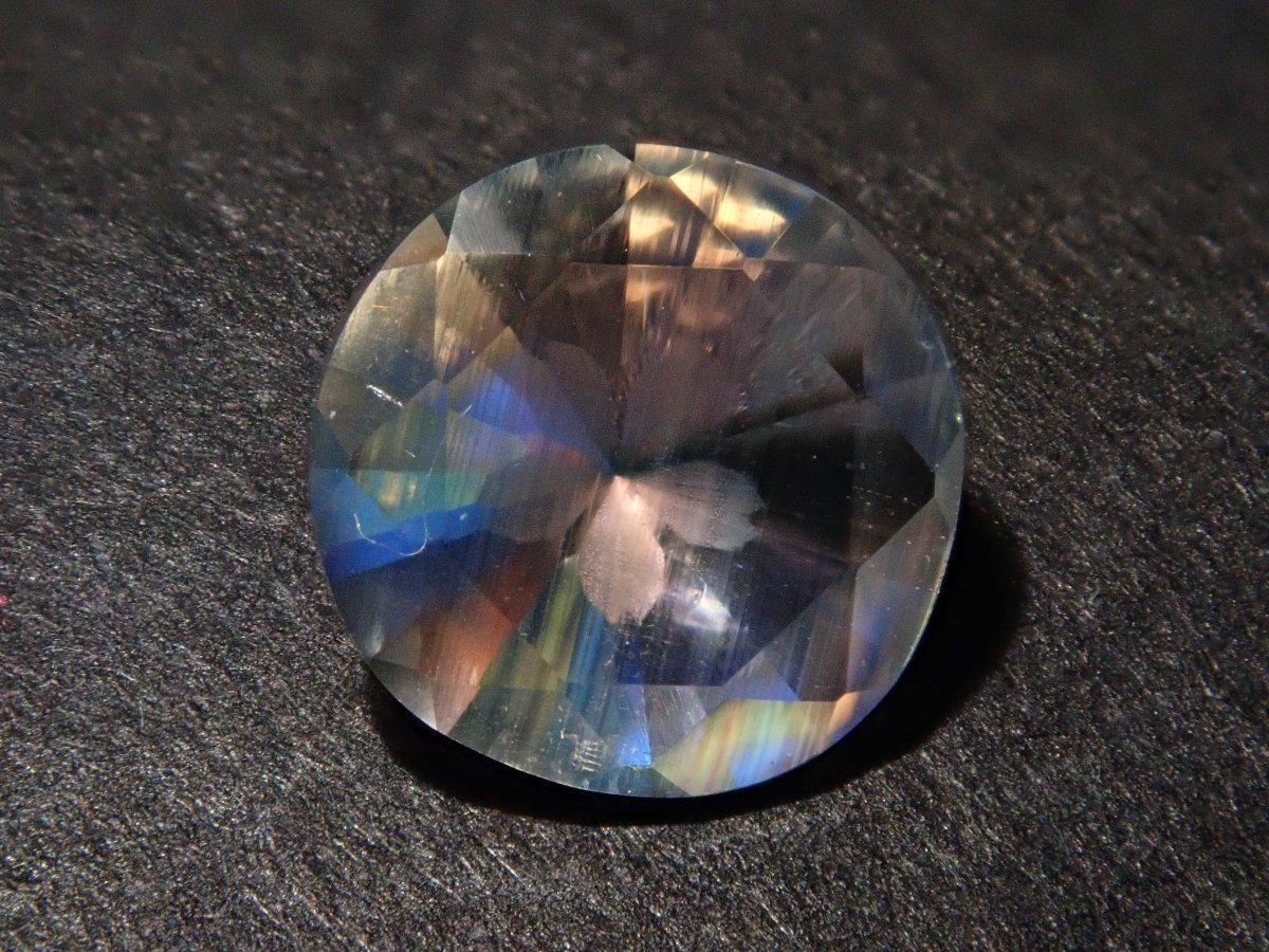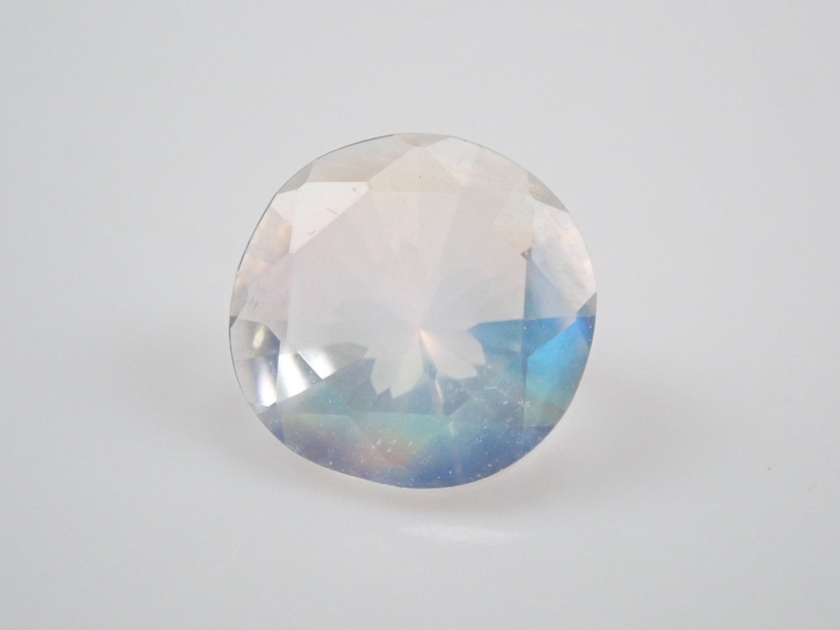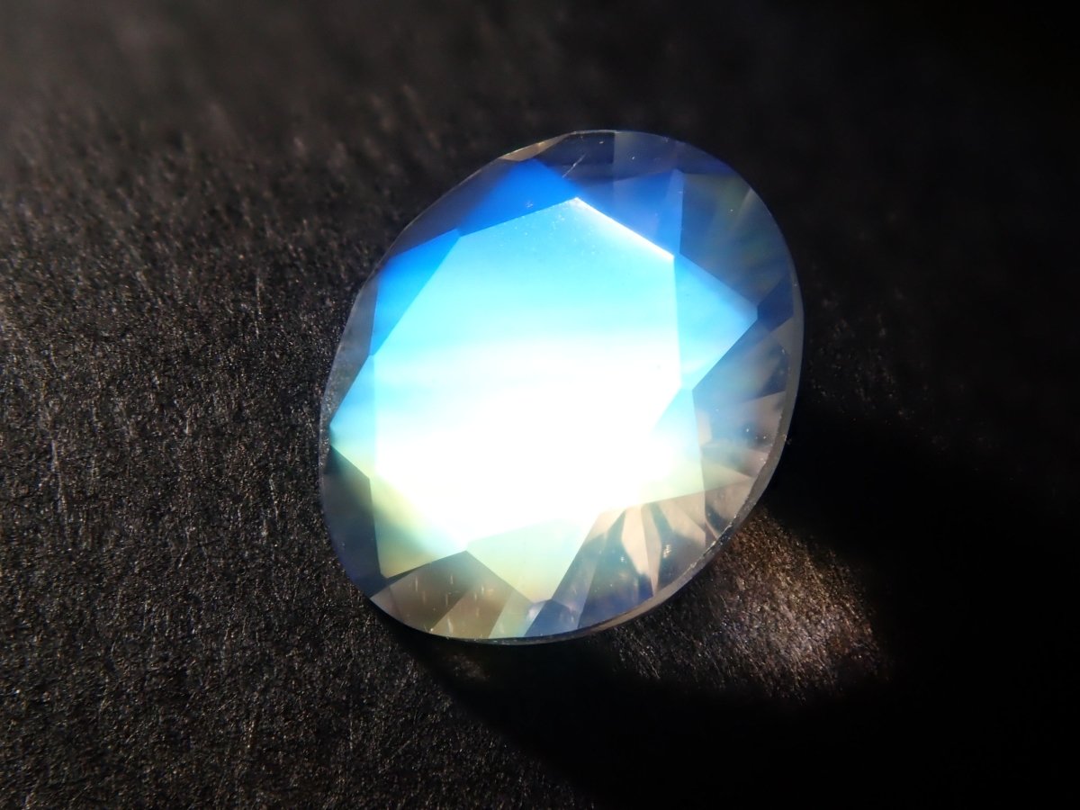 這是清水奇蹟的櫻花切入片。 6 毫米/0.48 克拉彩虹月光石 [ 櫻花切割]。您可以享受櫻花和彩虹的光學效果。