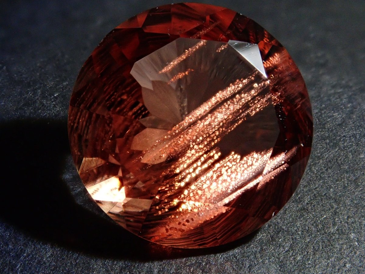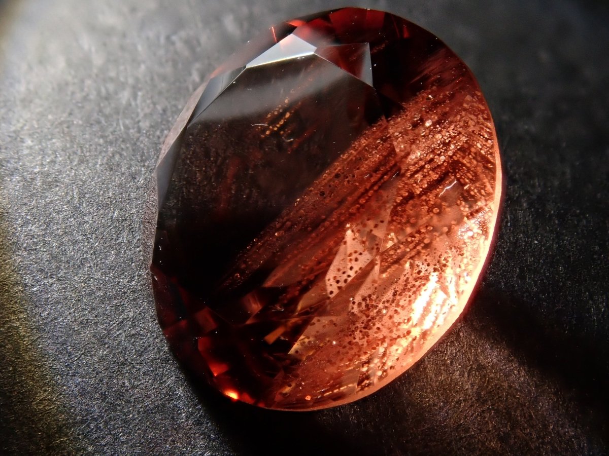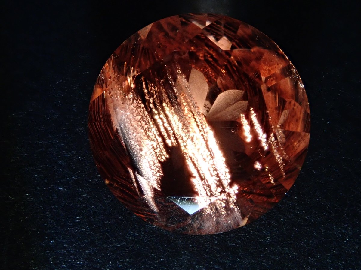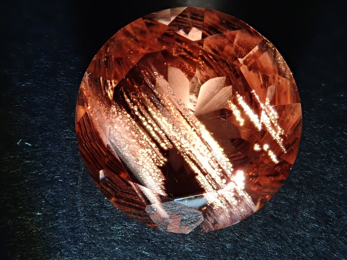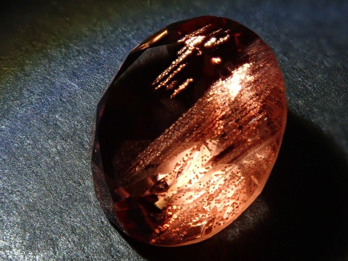 俄勒岡日光石據說是世界上最美麗的拉長石。近年來,這種石頭越來越受歡迎。還有一種稱為散光(席勒效應)的寶石,其中寶石內部的內含物會像閃光一樣反射。為了準確地傳達這些光學效果,攝影時使用筆燈。