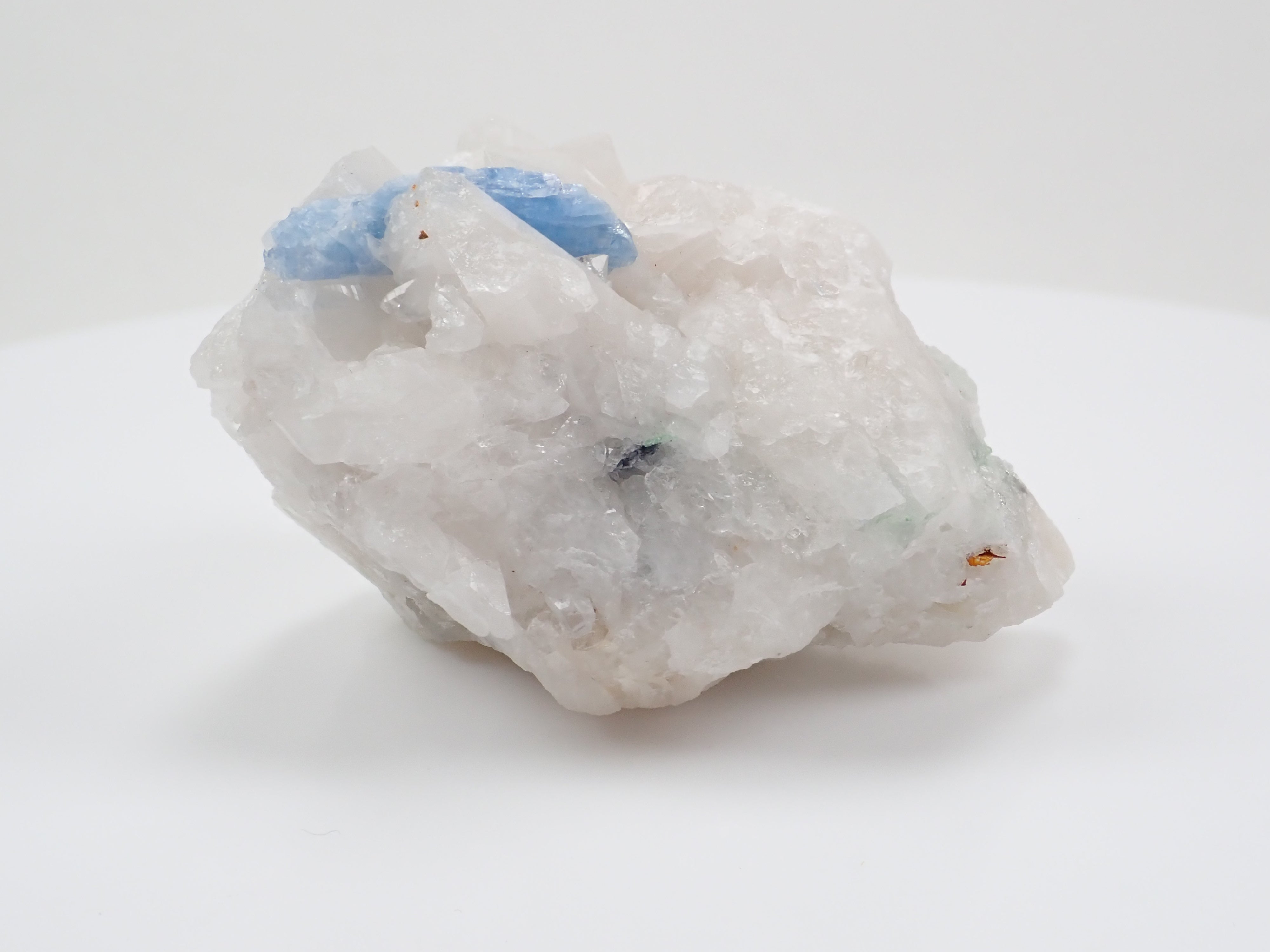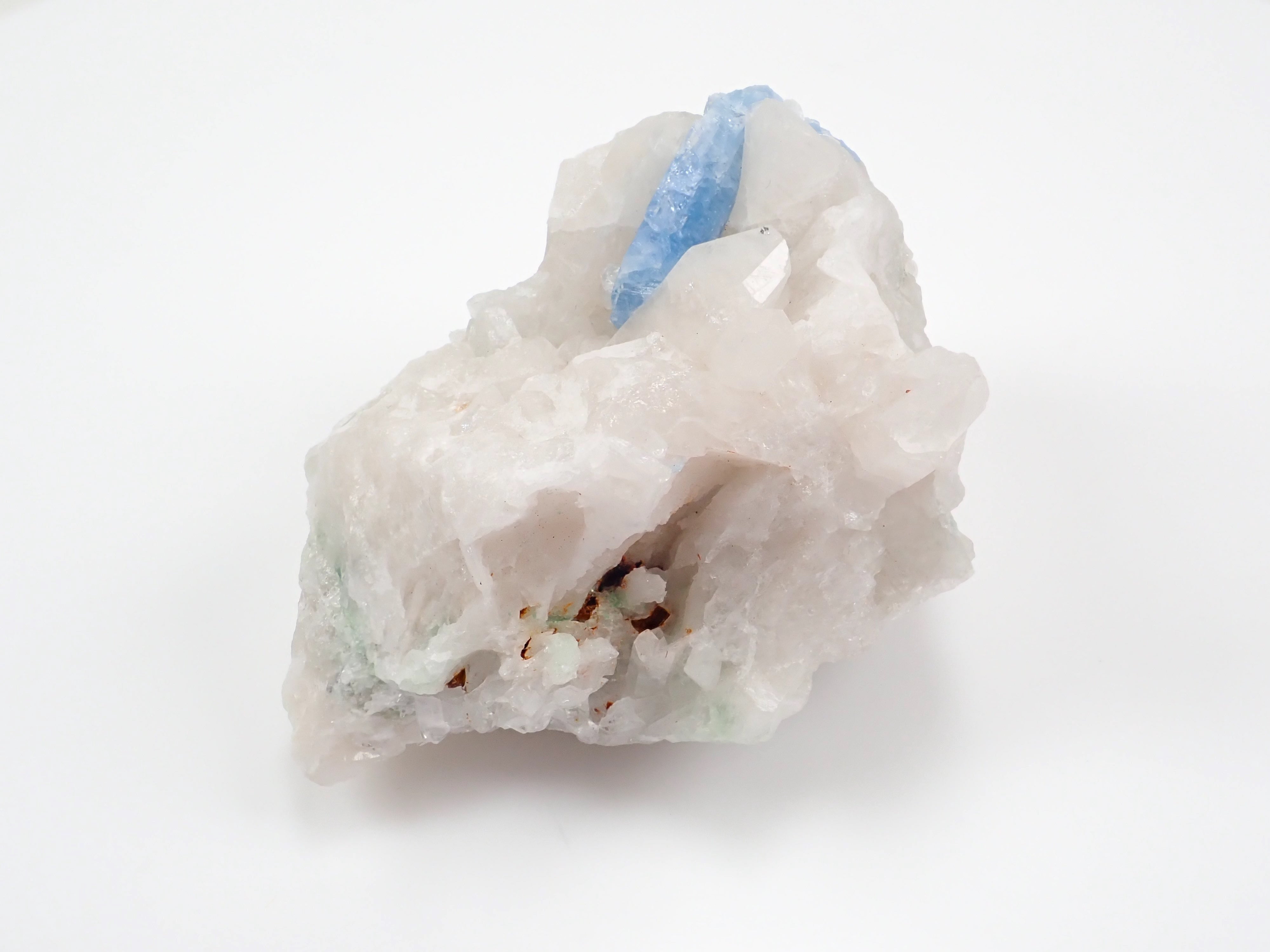 這是一塊原石,含有稀有的哥倫比亞Euclase母岩。 Euclase 是一種流通中母岩很少的寶石,甚至一些珠寶商也從未見過它。這是一種特別深的藍色 Euclase。主岩有綠色晶體,但由於靠近哥倫比亞祖母綠採石場,當地礦主表示,這些晶體有可能是祖母綠。