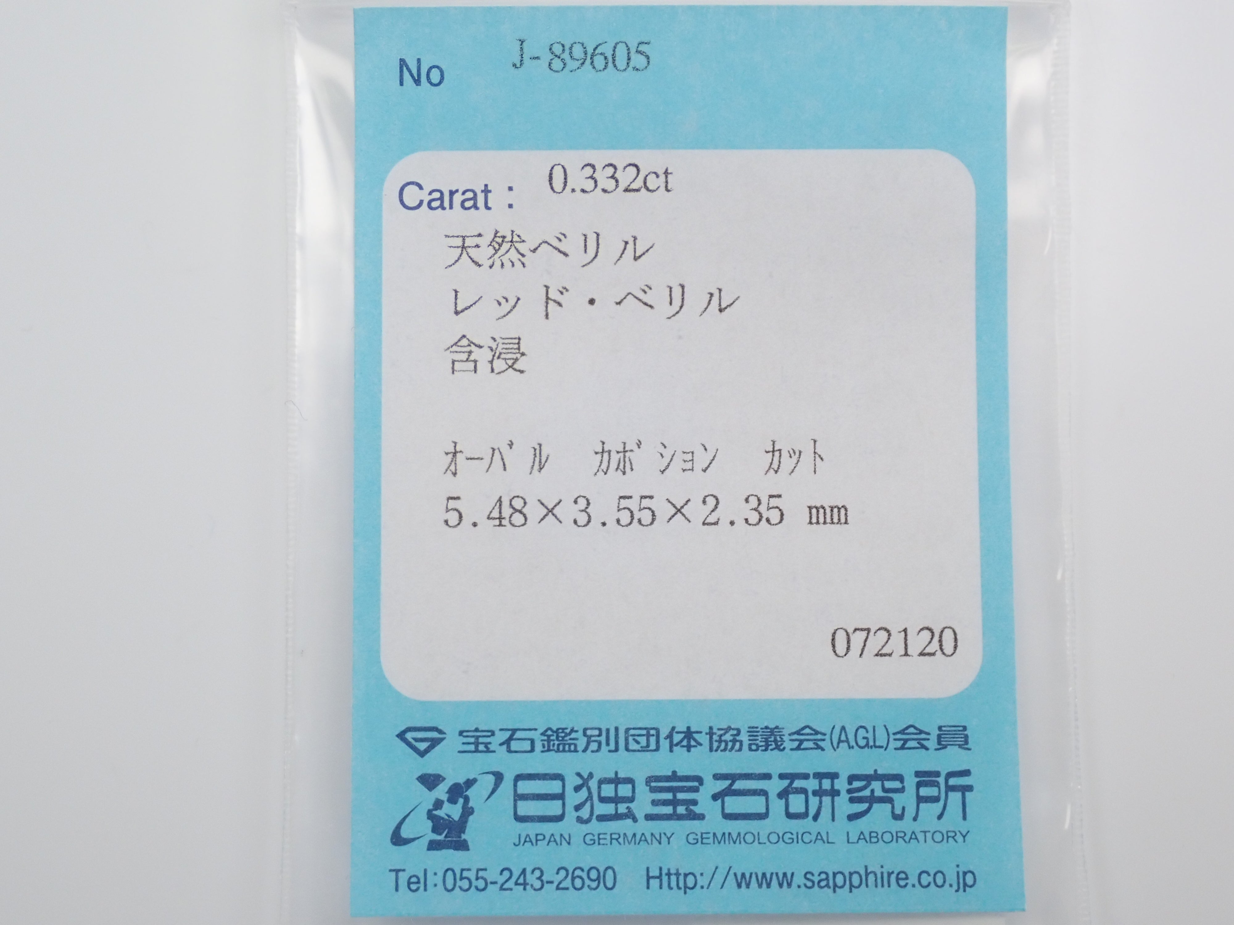 紅色綠柱石作為稀有寶石而聞名。它也被稱為“bixbite”,以發現它的礦物學家 Maynard Bixby 的名字命名。從礦物角度來看,它是綠柱石族的一員,該族還包括祖母綠和海藍寶石。這是一顆凸圓形切割的裸露紅色綠柱石,十分罕見。它的尺寸高達 0.3 克拉。