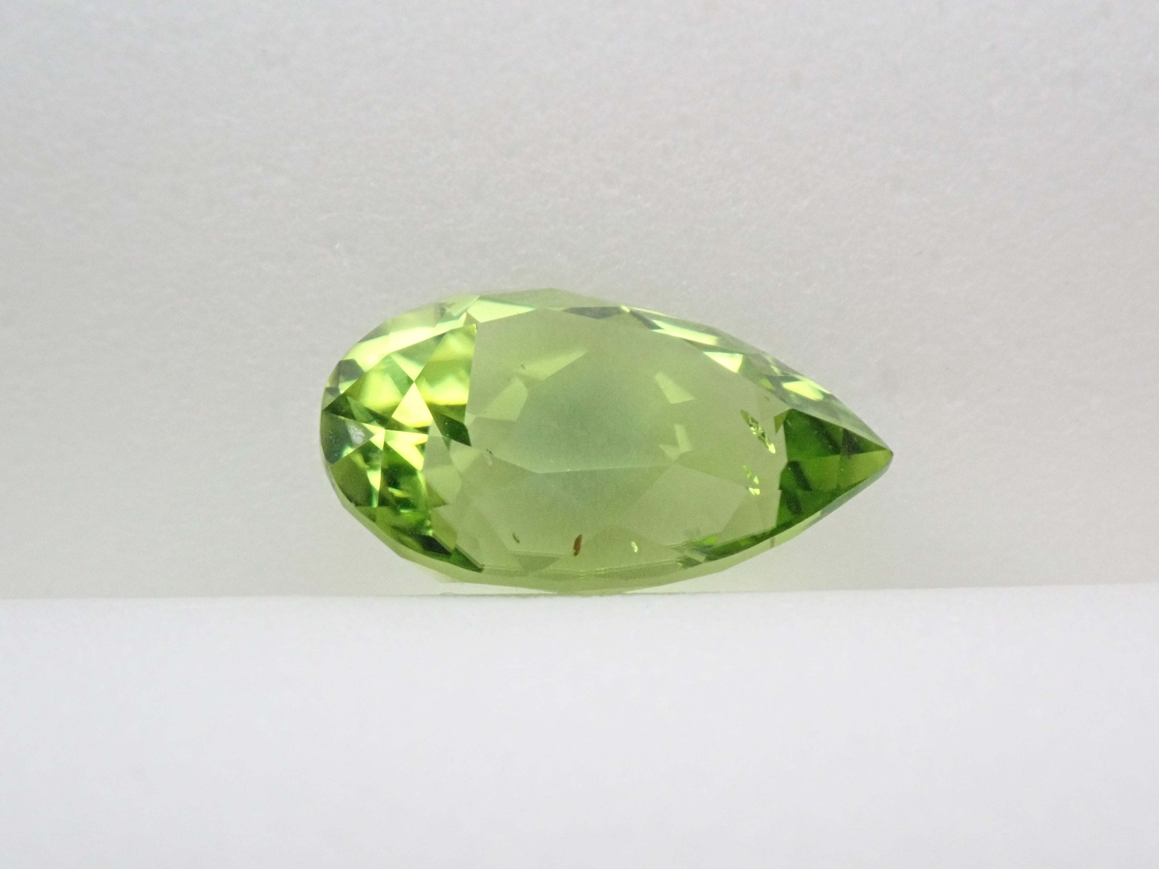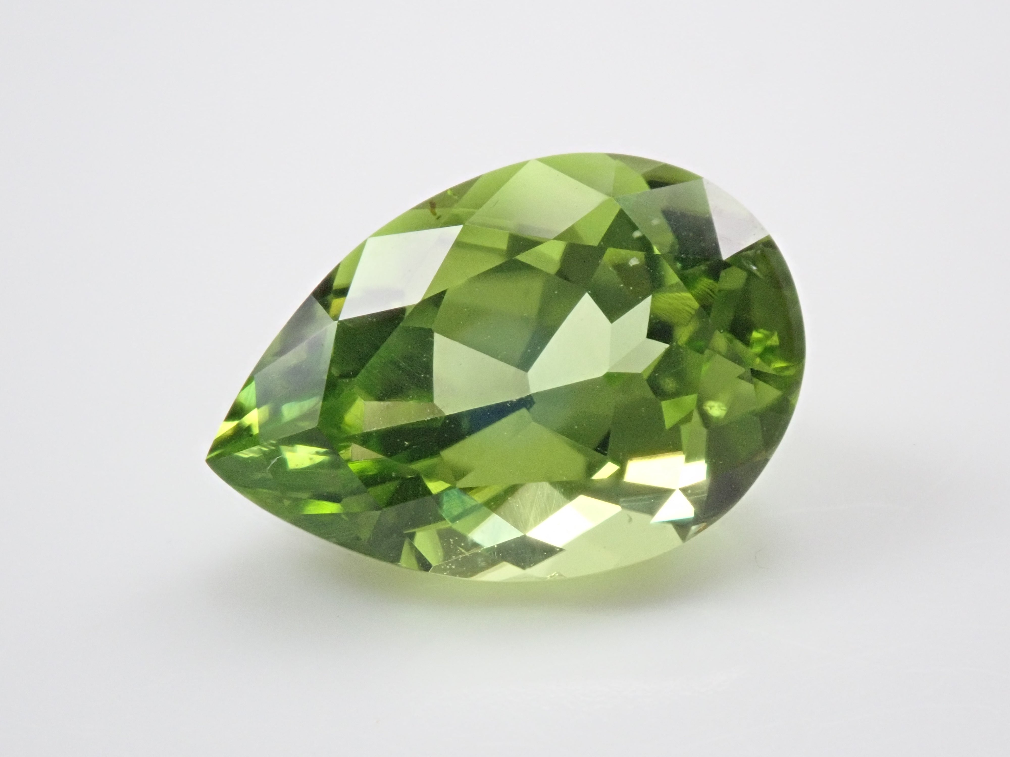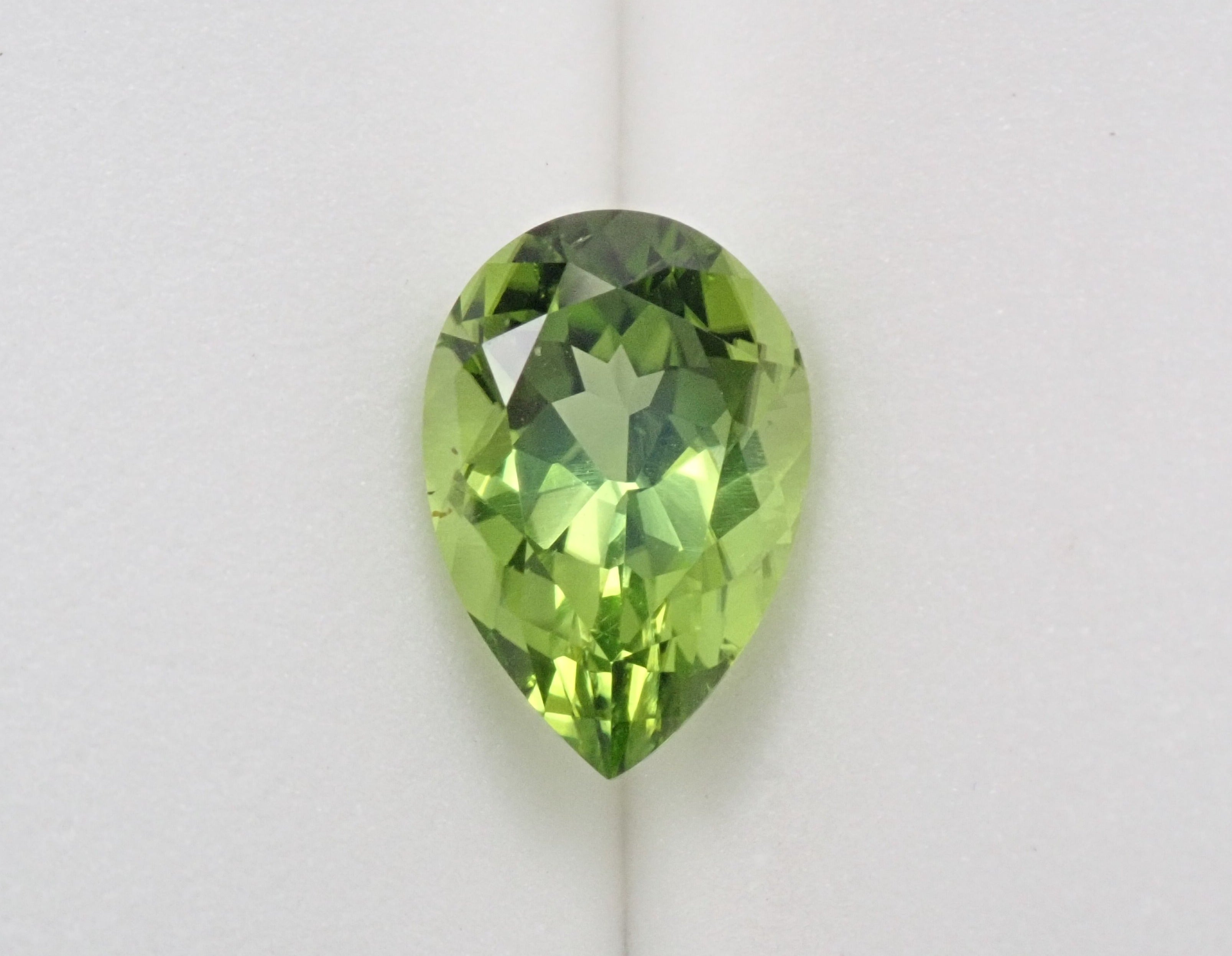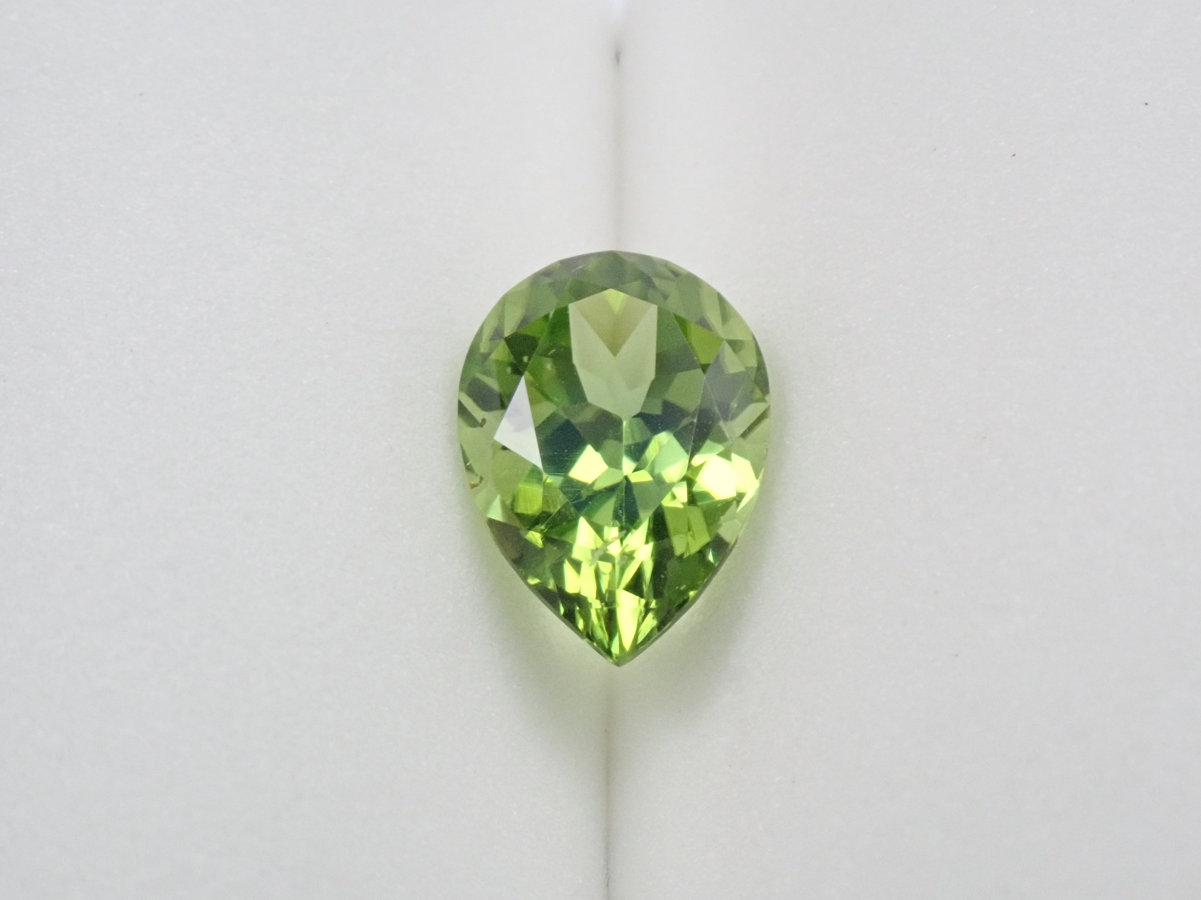 橄欖石是一種具有迷人淺綠色的寶石,類似於幼草。它作為八月的誕生石而聞名。起源是拉丁文“橄欖”。事實上,它具有迷人、年輕的綠色,類似於橄欖色。梨形切工的顏色太深。顏色很平衡。這是橄欖石。