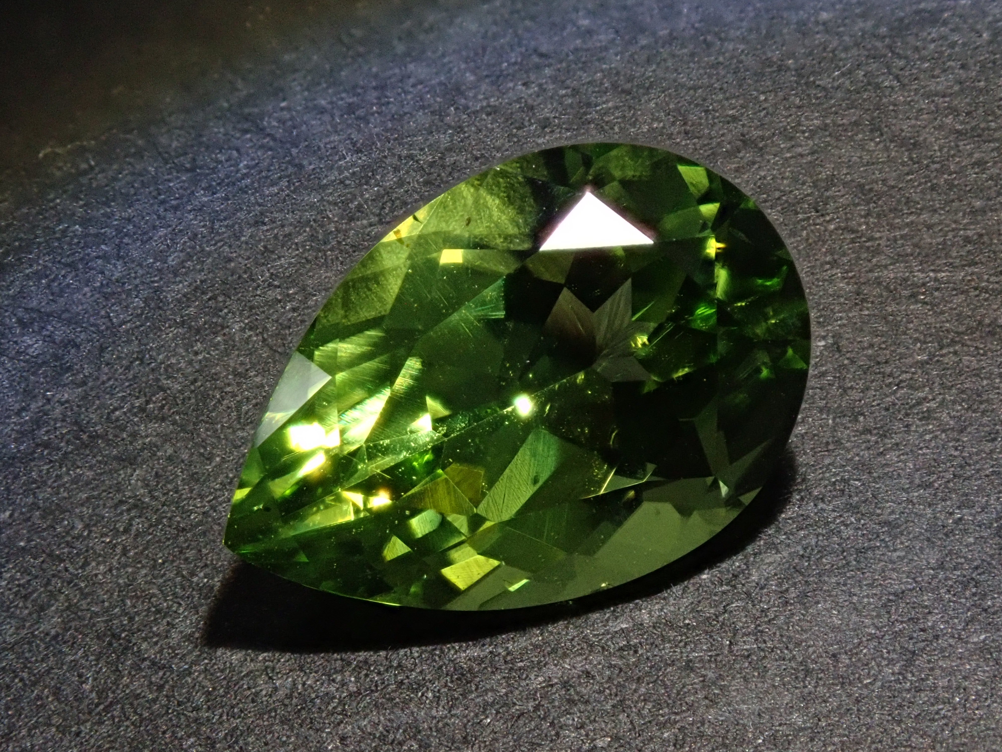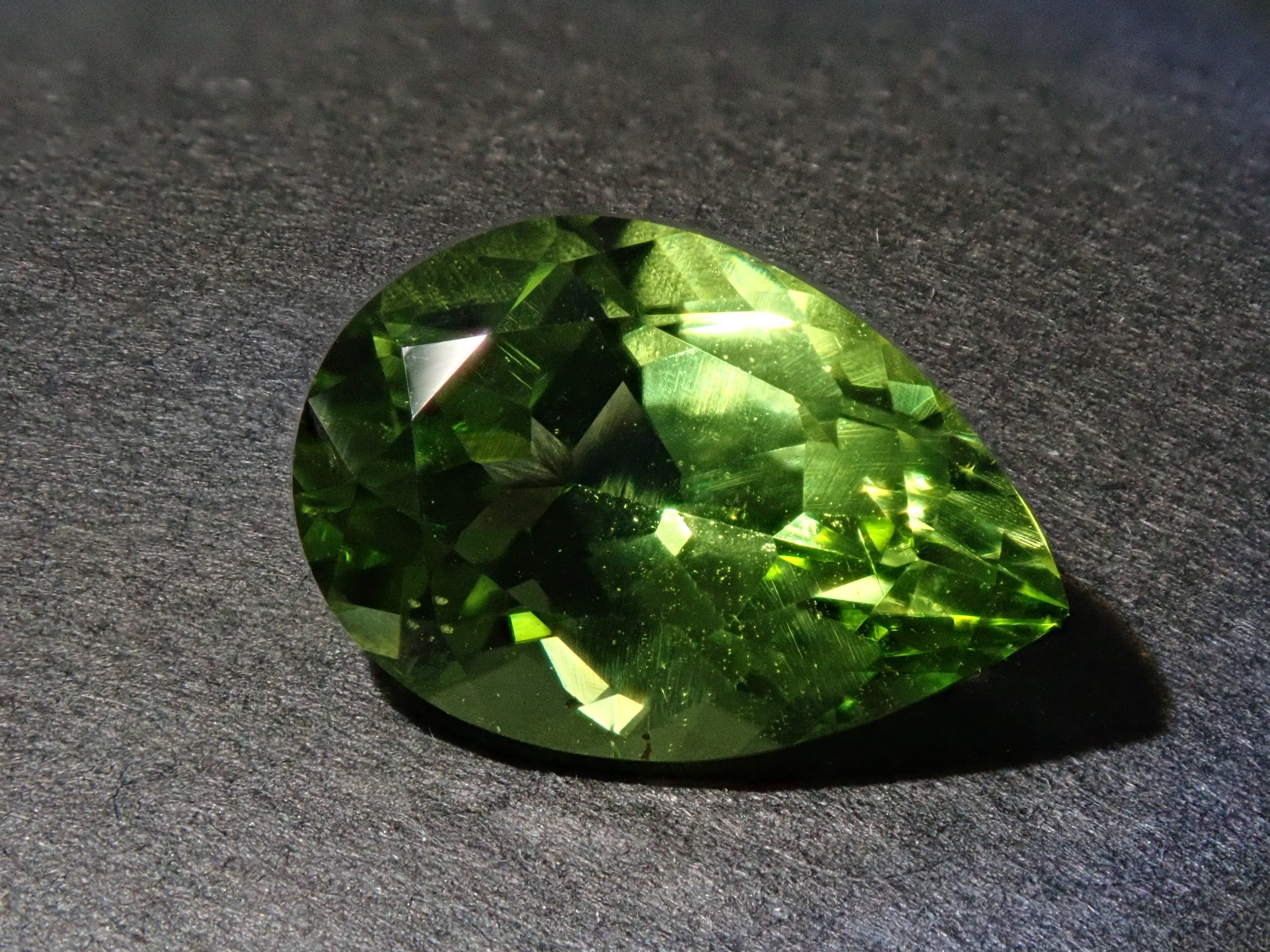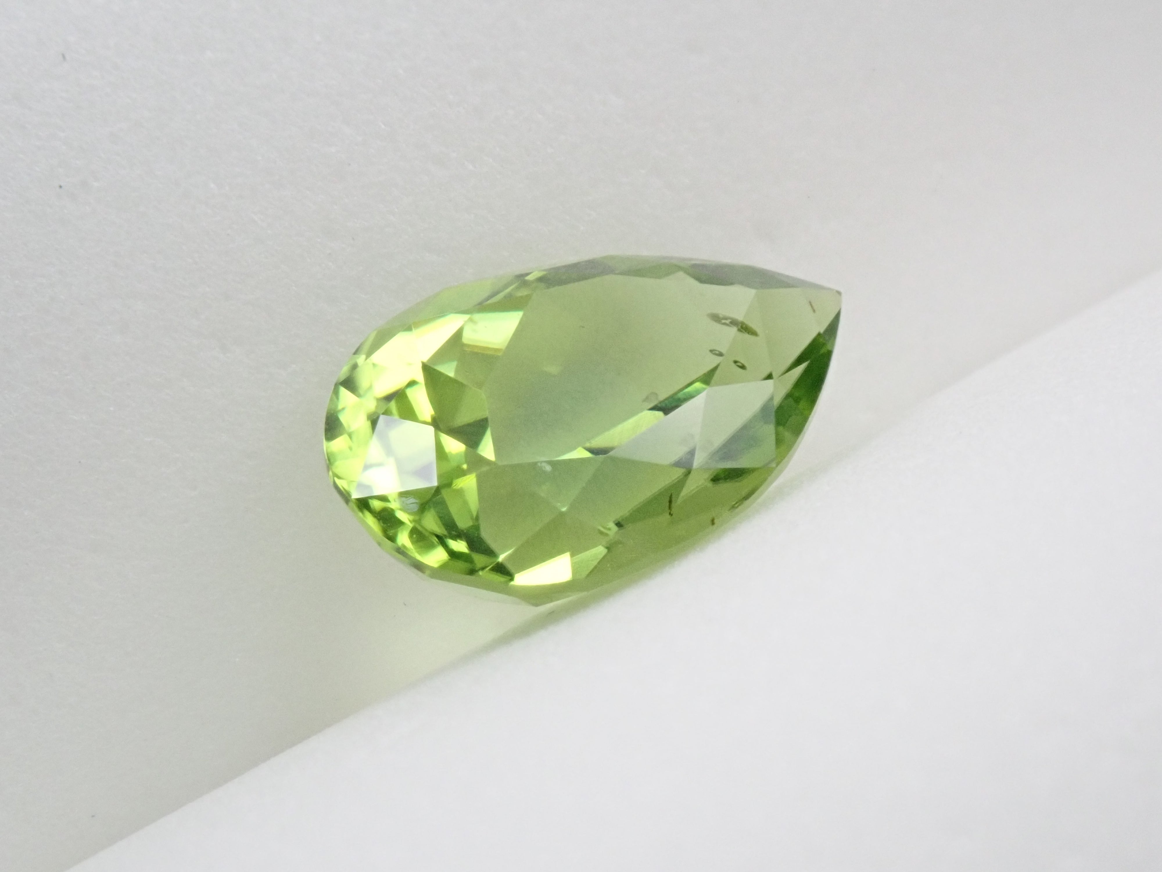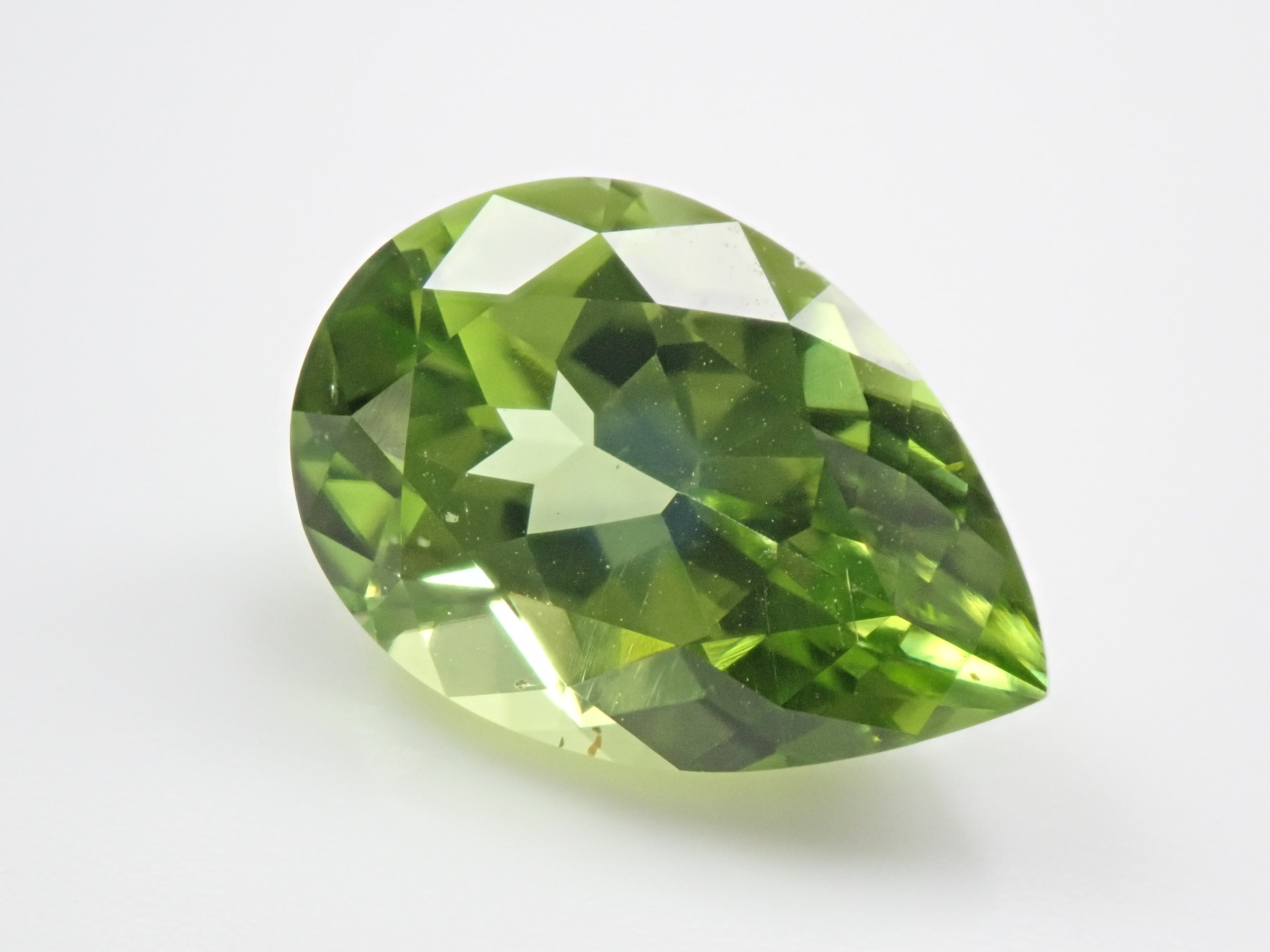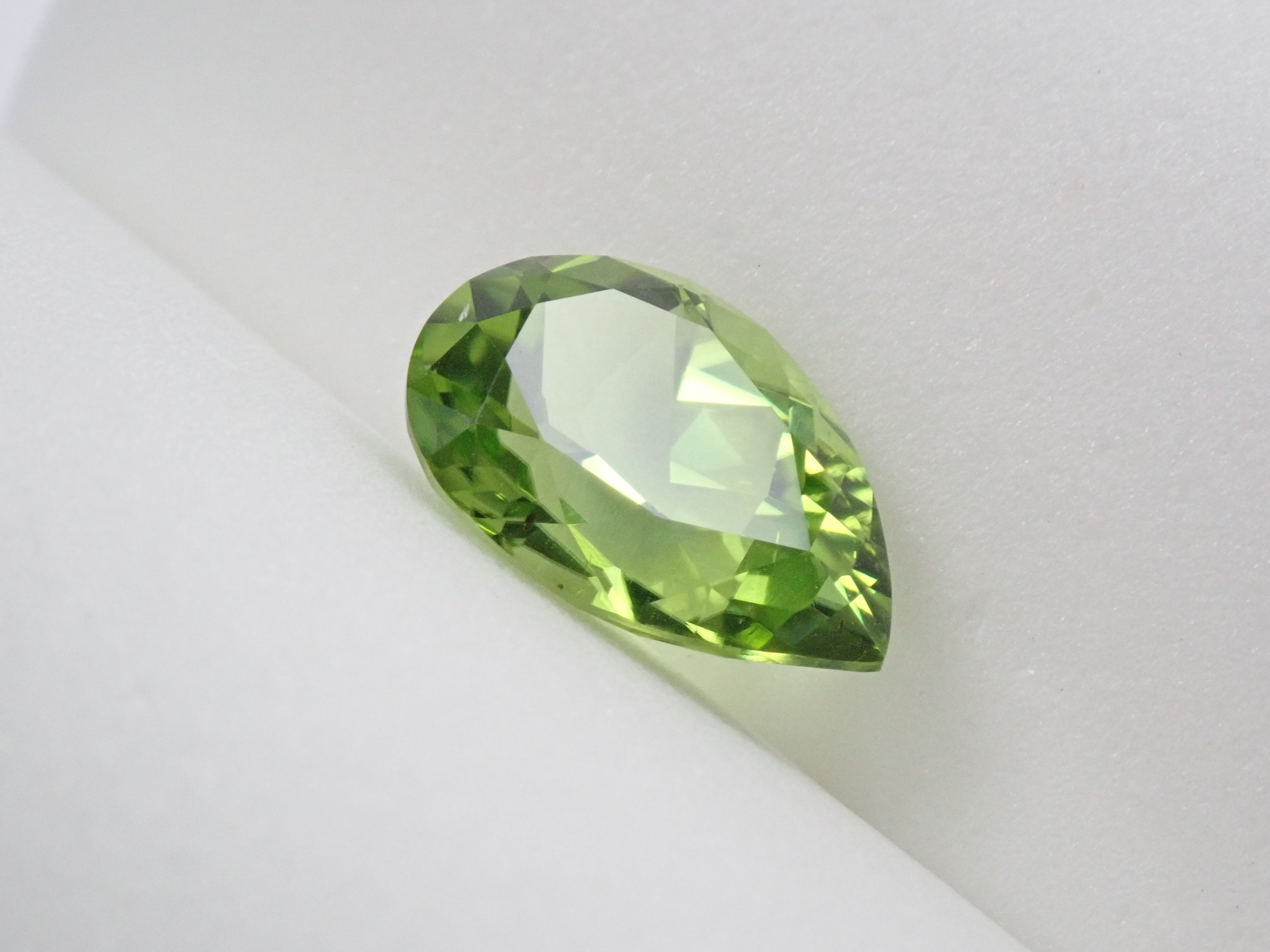 橄欖石是一種具有迷人淺綠色的寶石,類似於幼草。它作為八月的誕生石而聞名。起源是拉丁文“橄欖”。事實上,它具有迷人、年輕的綠色,類似於橄欖色。梨形切工的顏色太深。顏色很平衡。這是橄欖石。