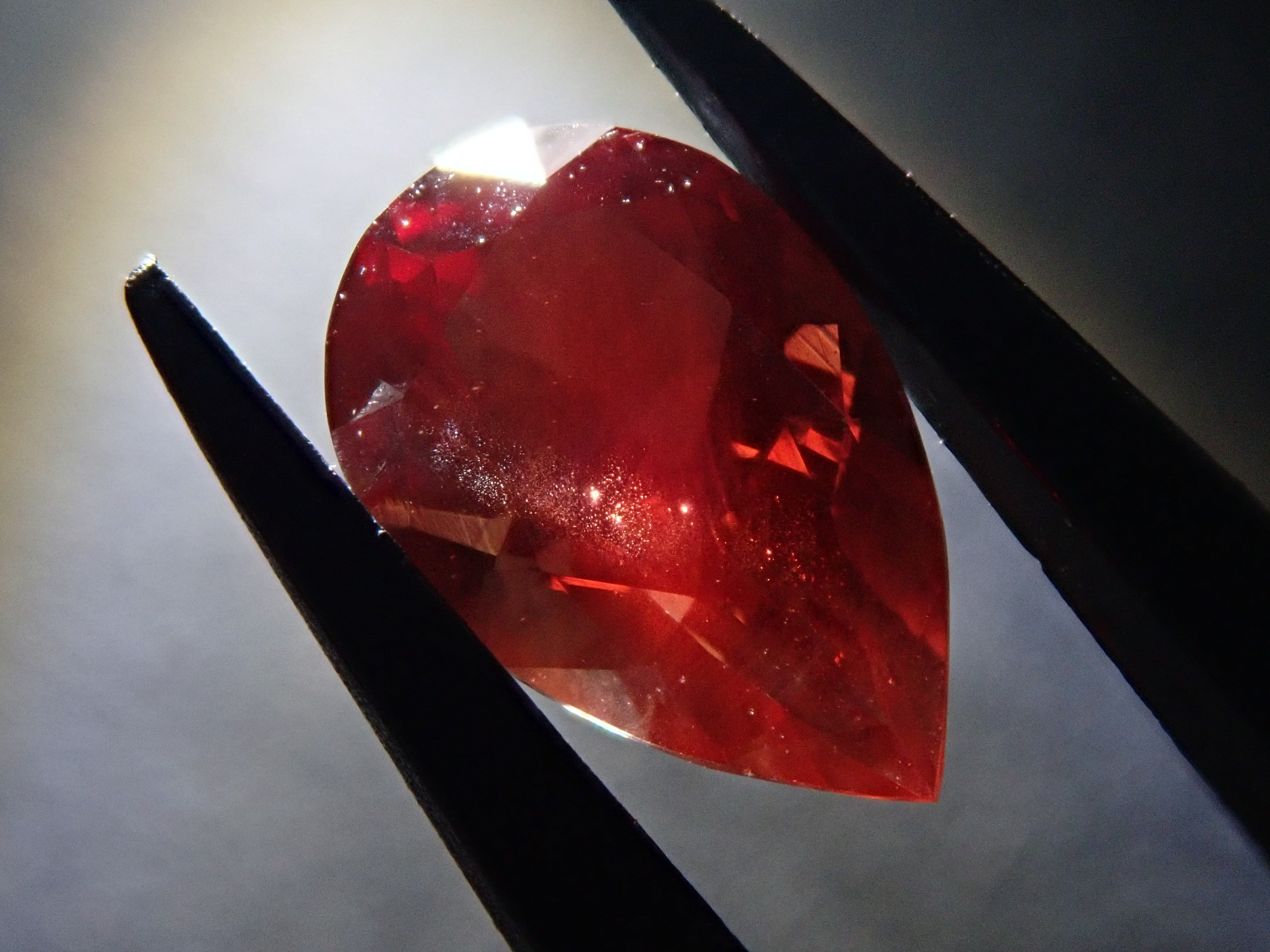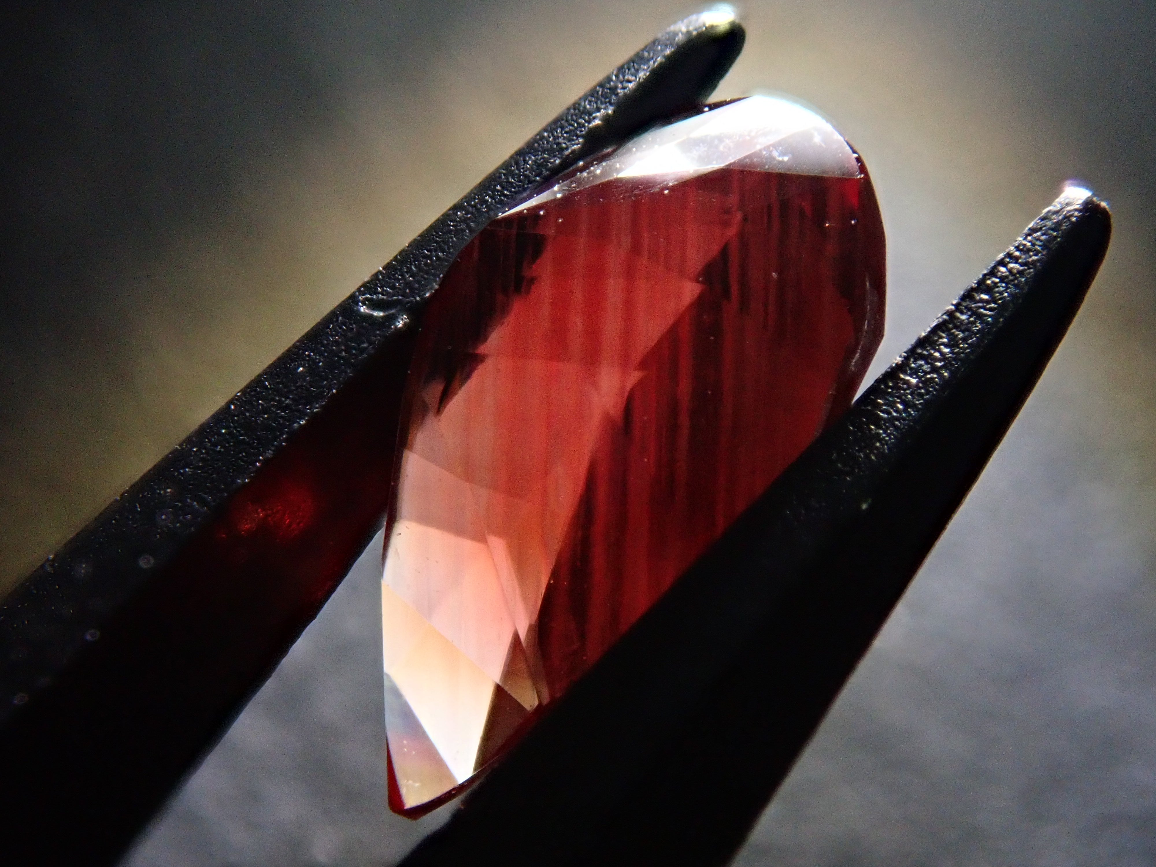 俄勒岡日光石據說是世界上最美麗的拉長石。近年來,這種石頭越來越受歡迎。還有一種稱為散光(席勒效應)的寶石,其中寶石內部的內含物會像閃光一樣反射。為了準確地傳達這些光學效果,攝影時使用筆燈。