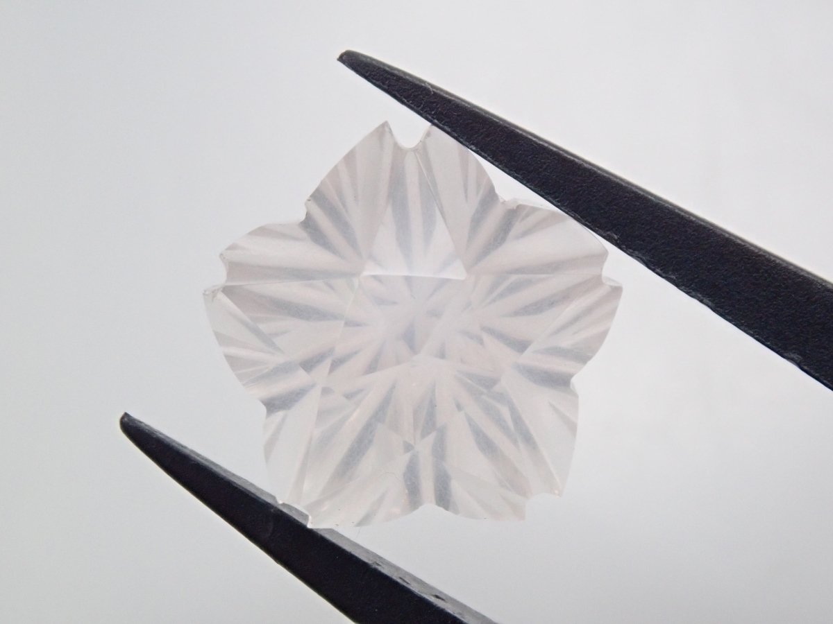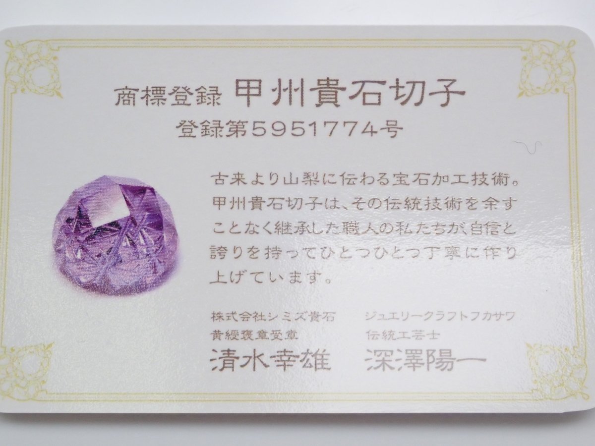 Shimizu Kiseki 與深澤洋一先生合作的作品,這是由Koshu Kiseki Kiriko製成的散裝玫瑰石英。甲州寶石Kiriko由清水寶石的代表人物清水幸雄和Jewelry Craft Fukasawa的代表人物深澤洋一兩位大師共同創作。清水先生負責刻面,深澤先生負責刻面。玫瑰剪裁 x 斯巴魯。包括一個特殊的補丁。