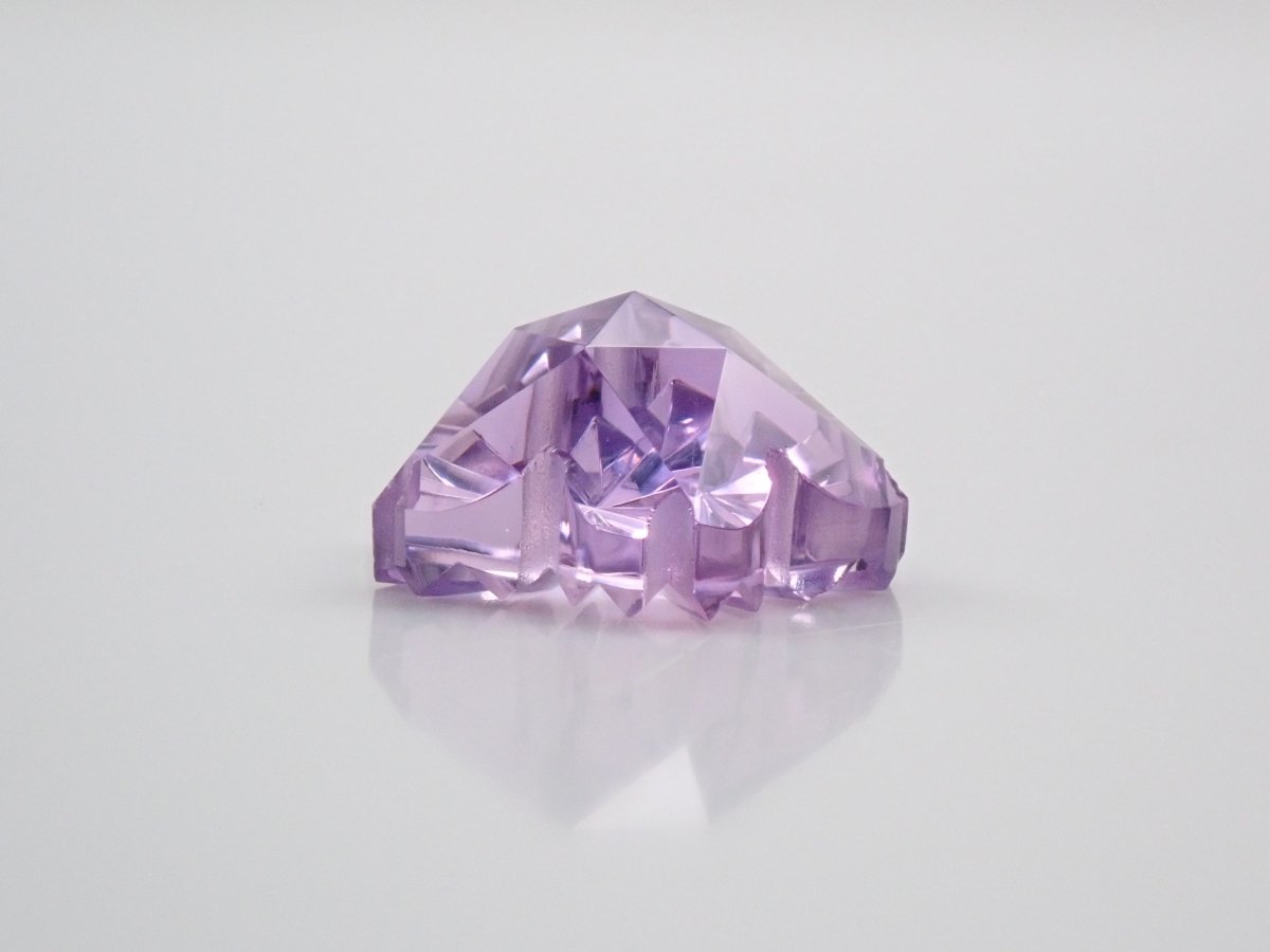 這是由 Koshu Takaishi Kiriko製作的散裝玫瑰紫水晶,是 Shimizu Kiseki 和 Yoichi Fukasawa 先生的合作作品。甲州寶石Kiriko由清水寶石的代表人物清水幸雄和Jewelry Craft Fukasawa的代表人物深澤洋一兩位大師共同創作。清水先生負責刻面,深澤先生負責刻面。玫瑰剪裁 x 斯巴魯。
