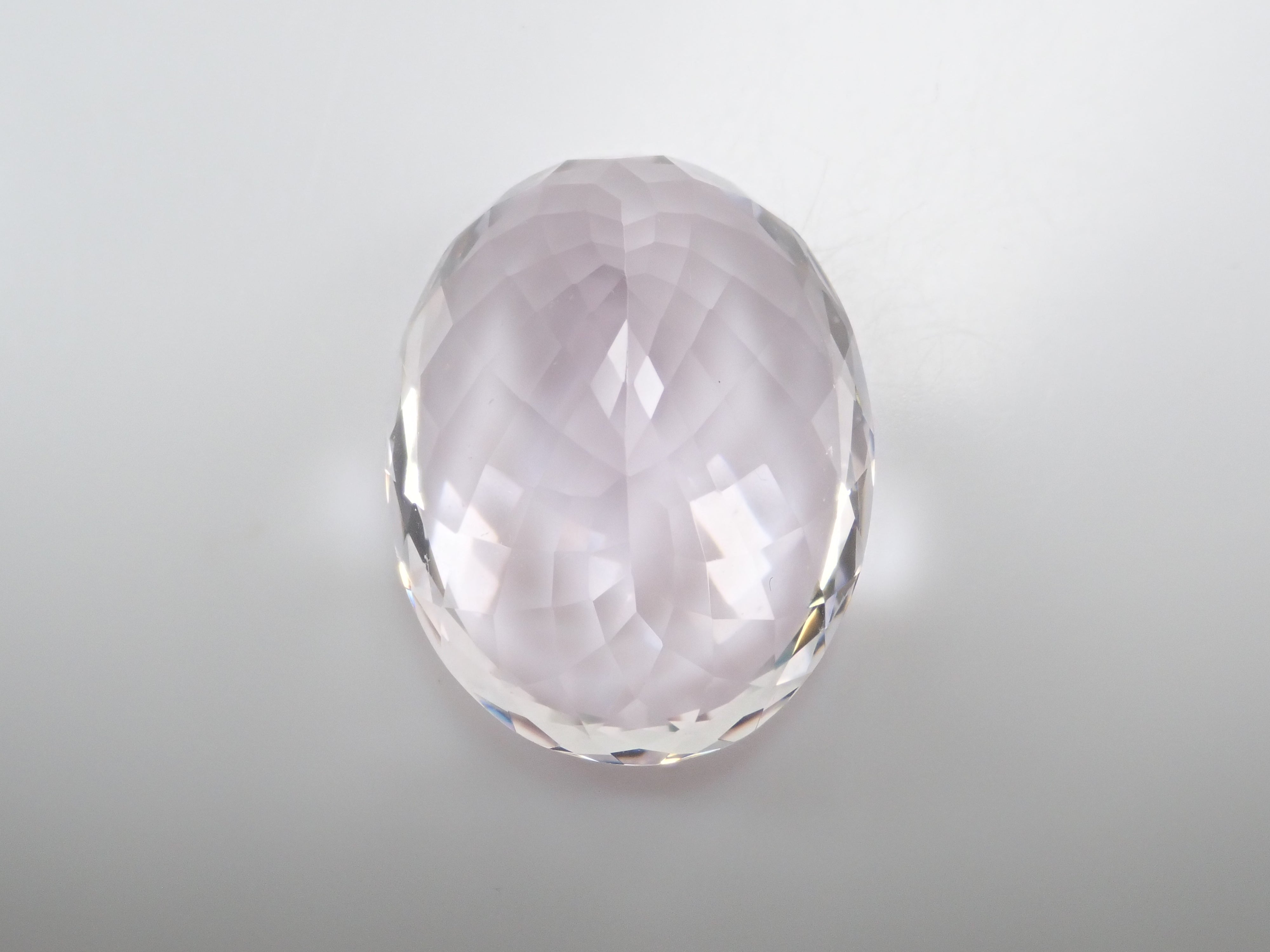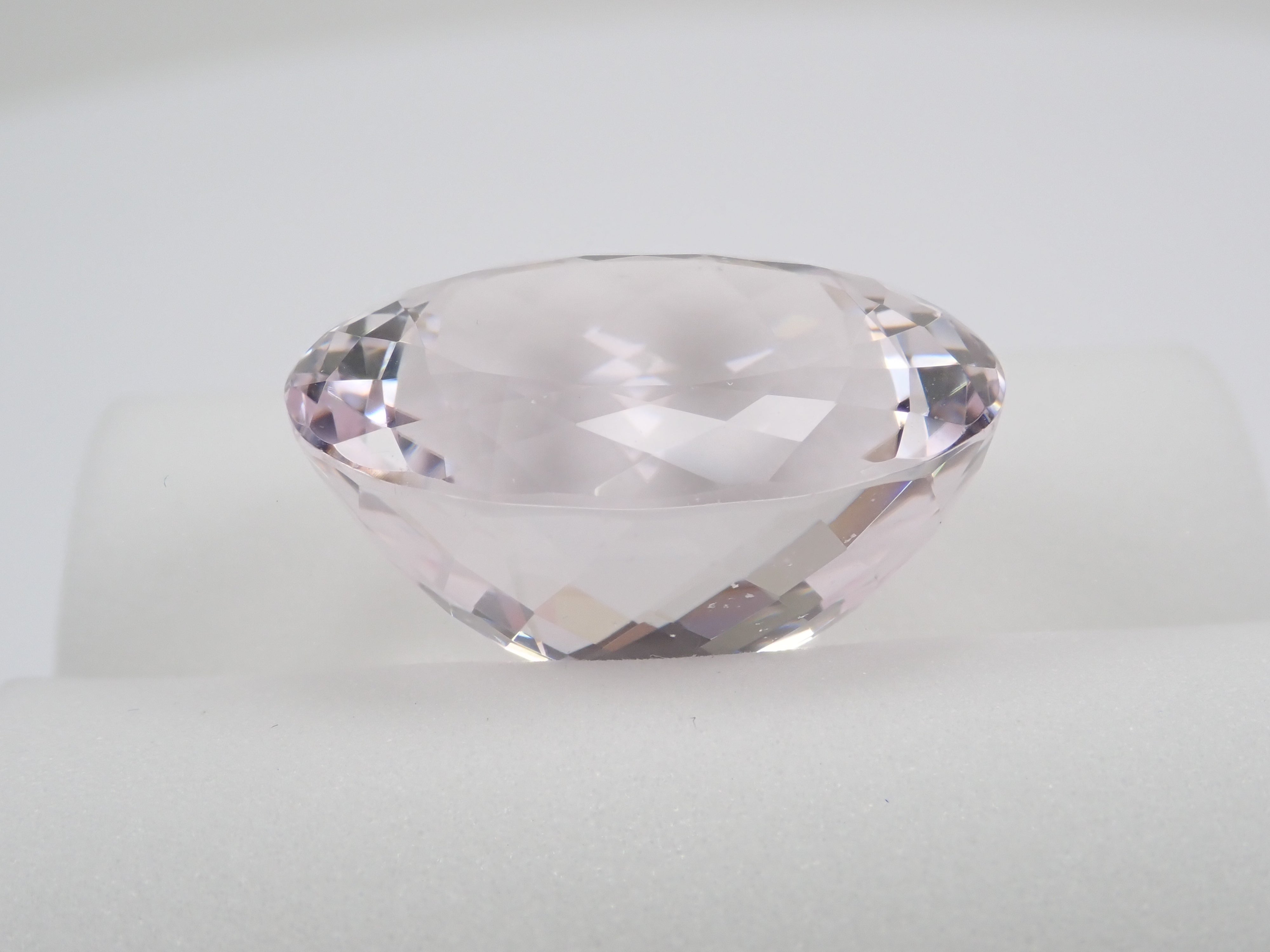 「說到粉紅色鋰紫玉是一種美麗的淡紫色粉紅色,許多人稱之為「紫鋰輝石」。它也是一種多向色性的石頭,因此透過改變角度可以欣賞到不同的色調。它具有磷光的特性,即使在黑暗的房間裡也能發光,而且它也被稱為“晚間的寶石”,因為它在晚會和晚禮服上都很好看。這是一顆 37 克拉的大紫鋰輝石,呈現淺粉紅色。