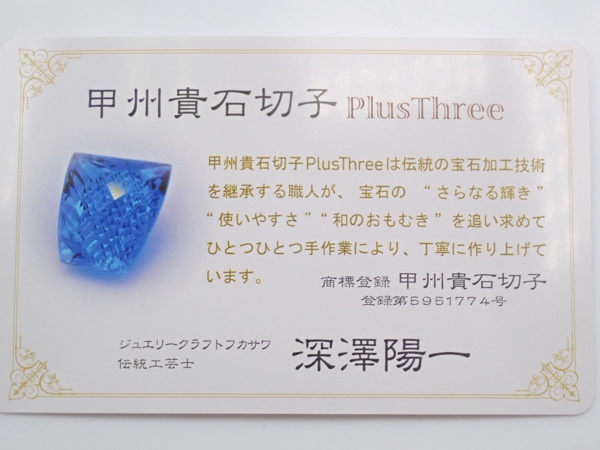 這是甲州寶石 Kiriko 的創造者深澤洋一 (Yoichi Fukasawa) 設計的新甲州寶石 Kiriko加上三顆蛋白石「綾」。點擊此處查看深澤洋一的訪談文章。