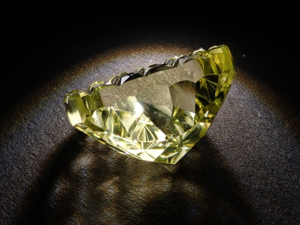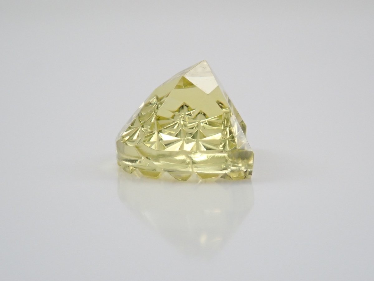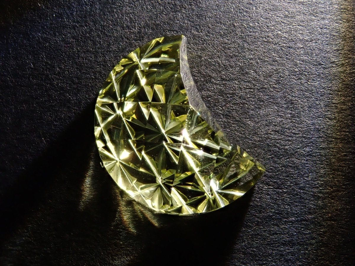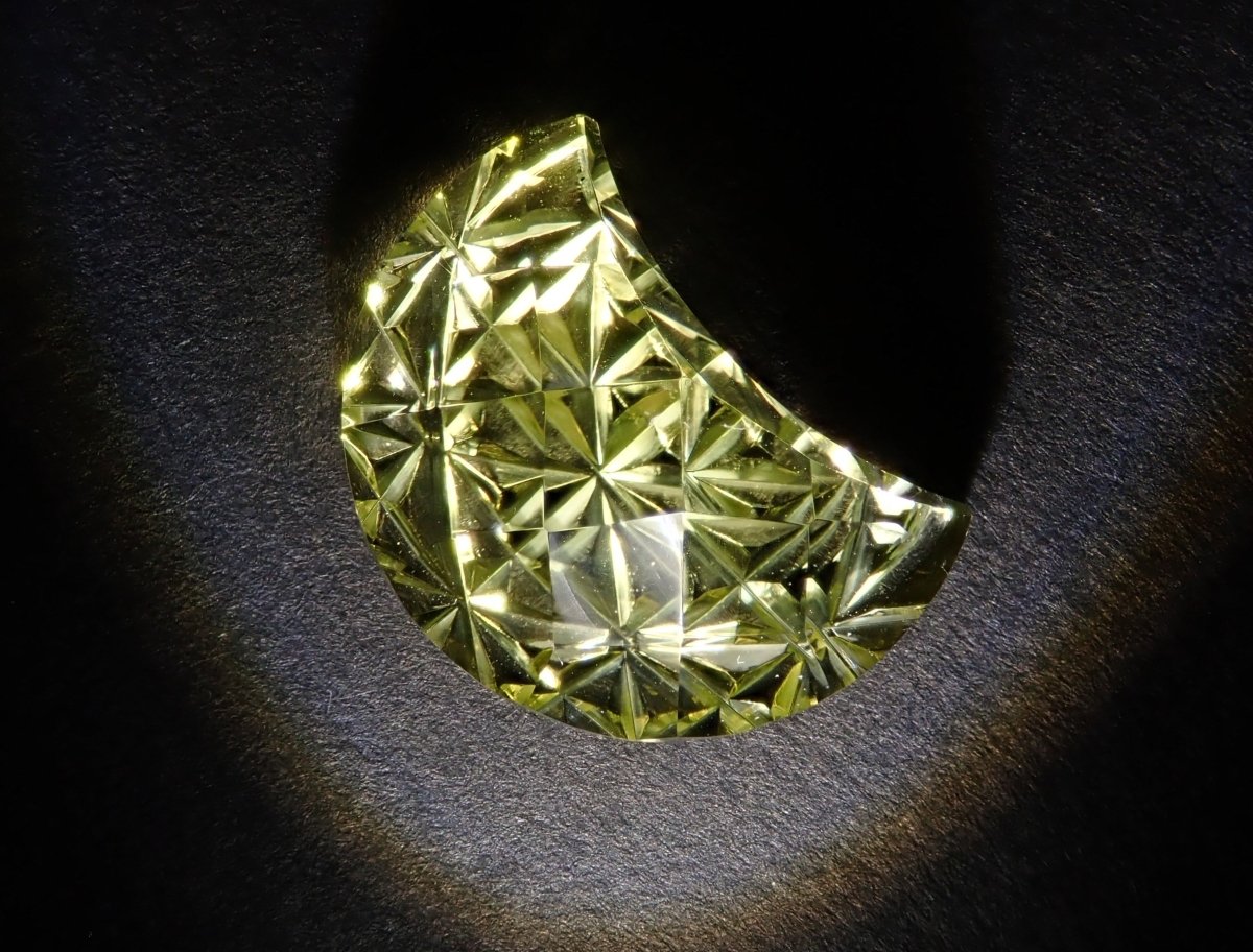 這是Koshu Kiseki Kiriko的新月形檸檬石英散件,是Shimizu Kiseki和Yoichi Fukasawa先生的合作作品。由清水奇蹟代表清水幸雄先生和Jewelry Craft Fukasawa代表深澤洋一先生兩位大師創作。 這是甲州寶石切割玻璃。清水先生負責刻面,深澤先生負責刻面。普通 x Aya 切割,尺寸為 12 x 9 毫米。