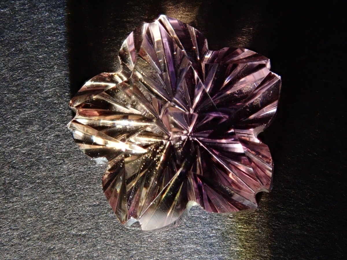 這是甲州高石切子製造的鬆散紫黃晶,由清水奇蹟和深澤陽一合作製作。