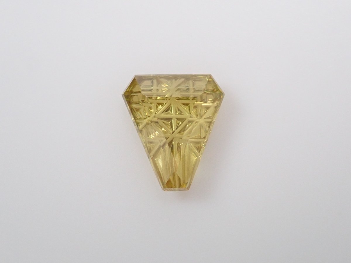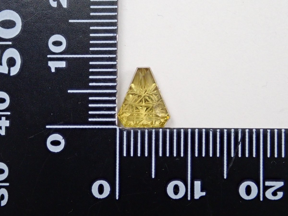 這是甲州寶石切割玻璃的創造者深澤洋一的新作品,名為“甲州寶石切割玻璃加三”,其特色是來自馬達加斯加的榍石,稱為“Irodori”。包含一個特殊補丁。