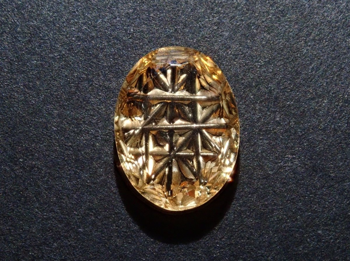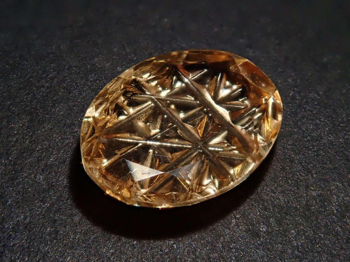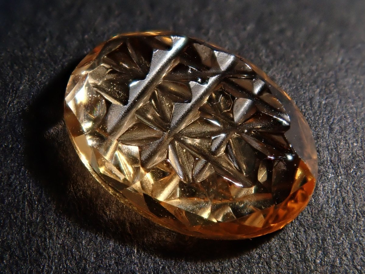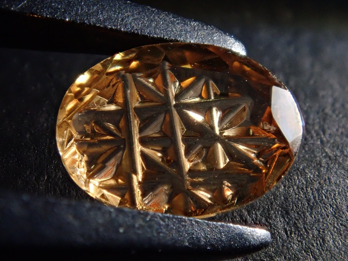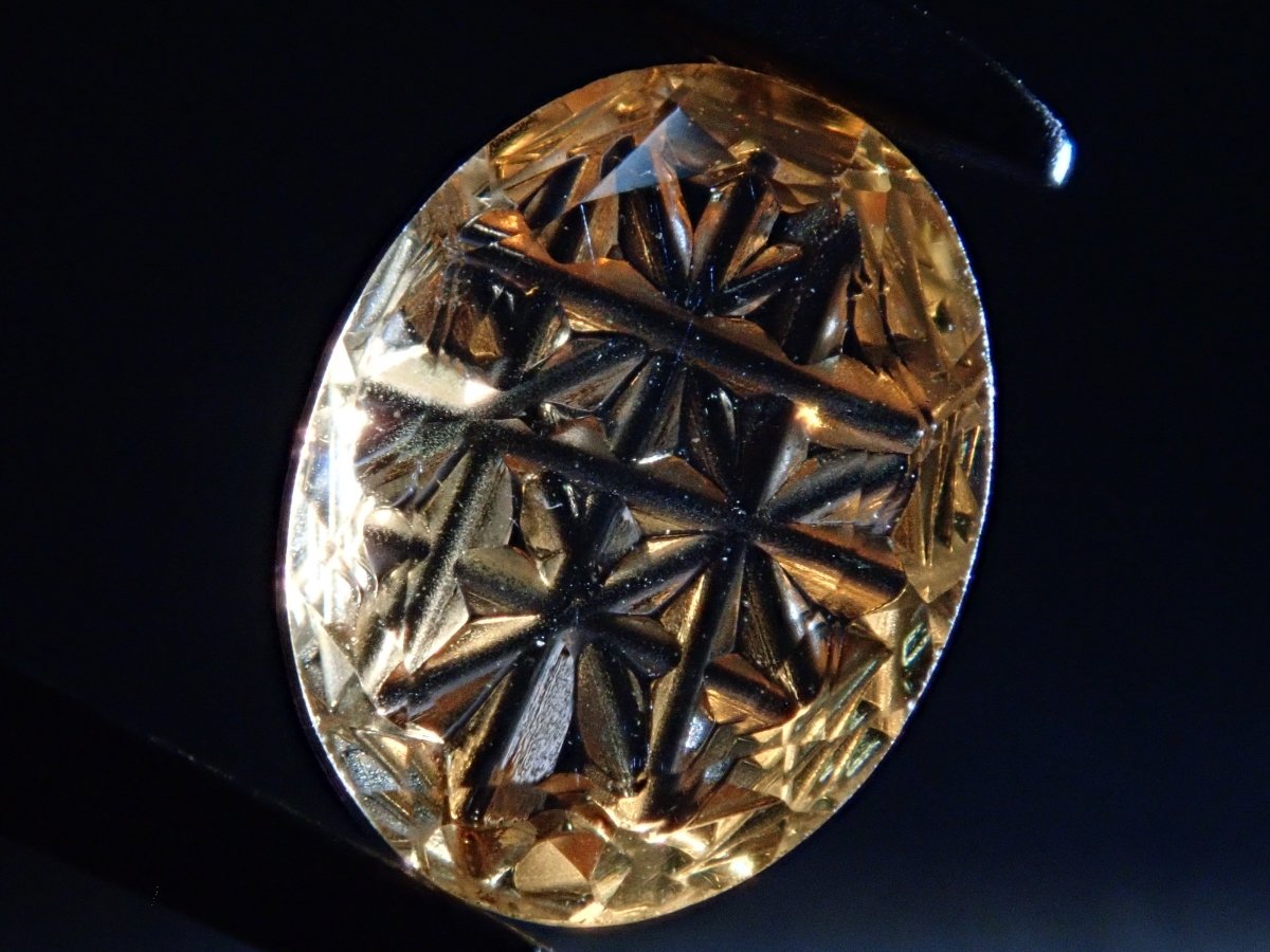 這是甲州寶石切割玻璃的創造者深澤洋一的新作品,名為“甲州寶石切割玻璃加三”,是一種來自斯里蘭卡的橙黃色石榴石,名為“Irodori”。包含一個特殊補丁。
