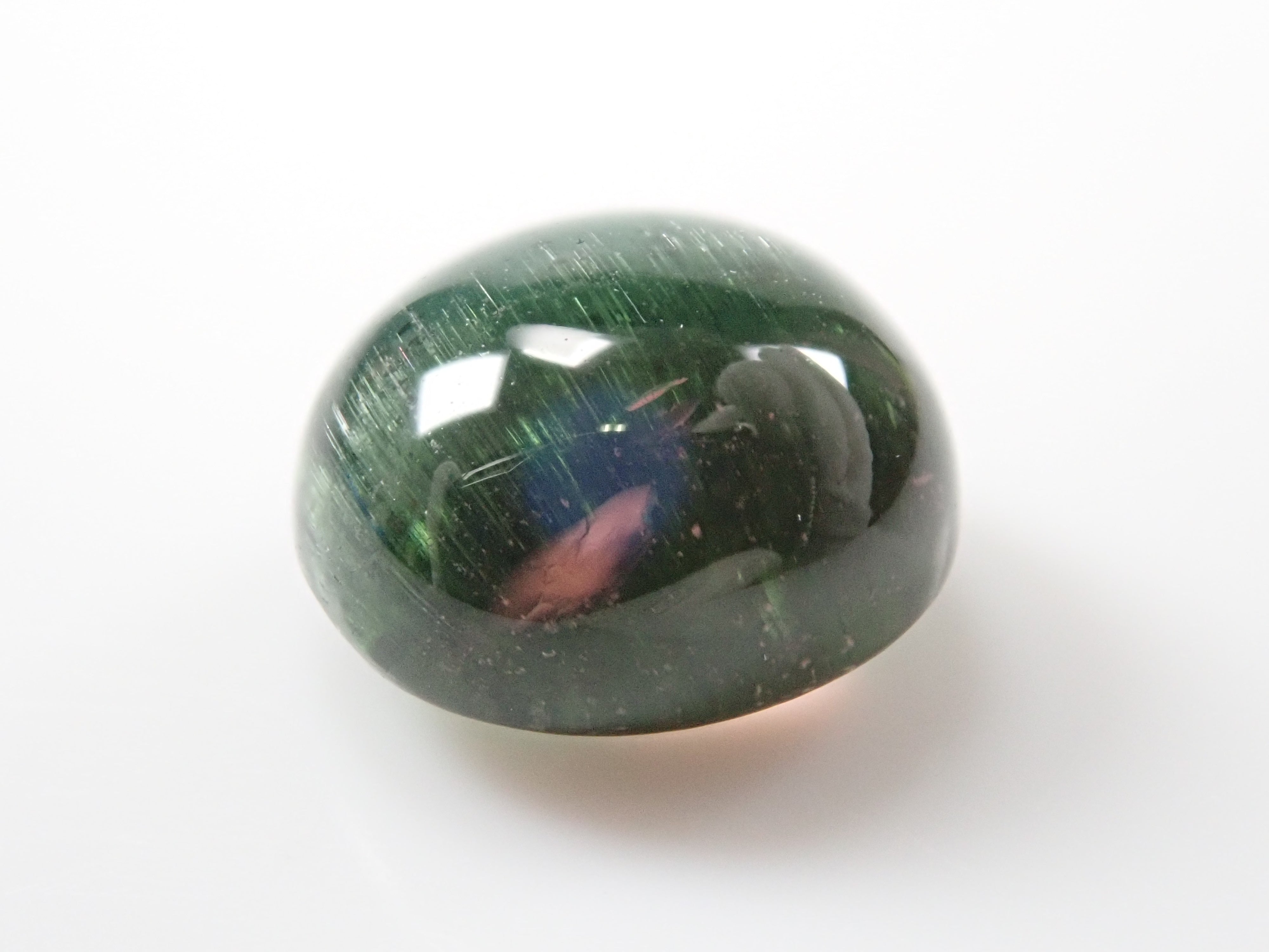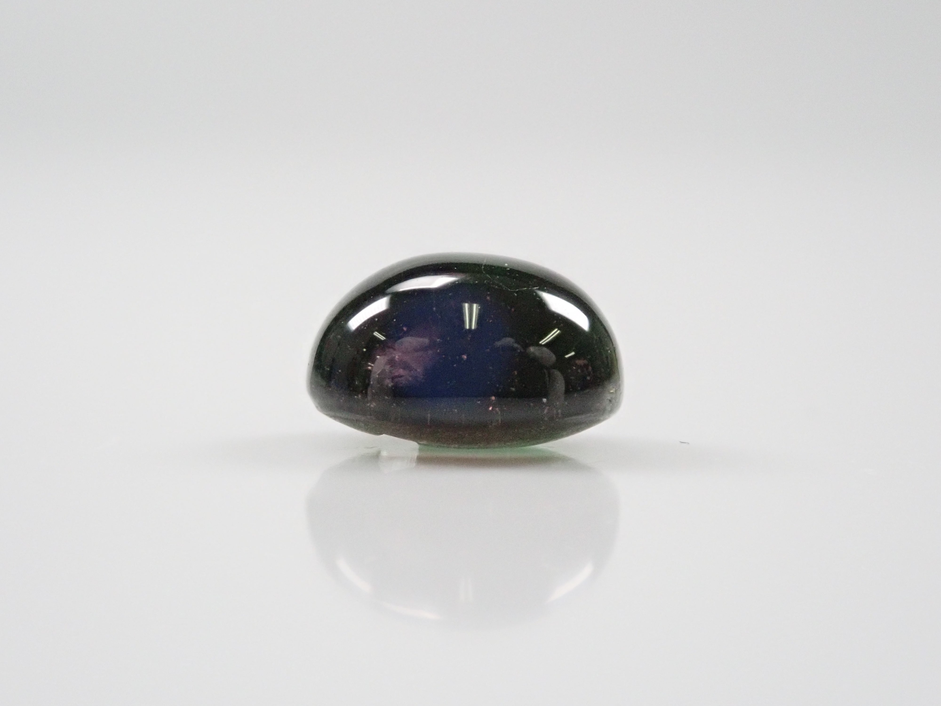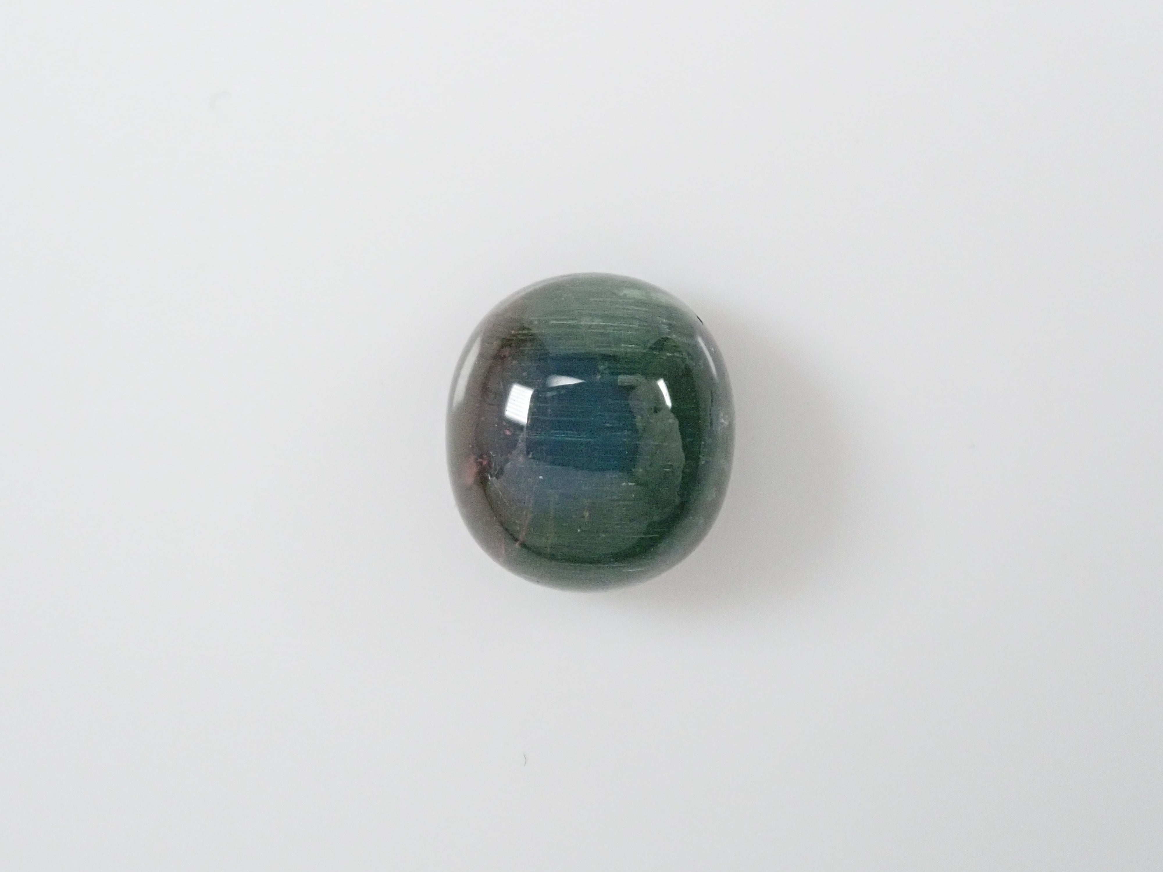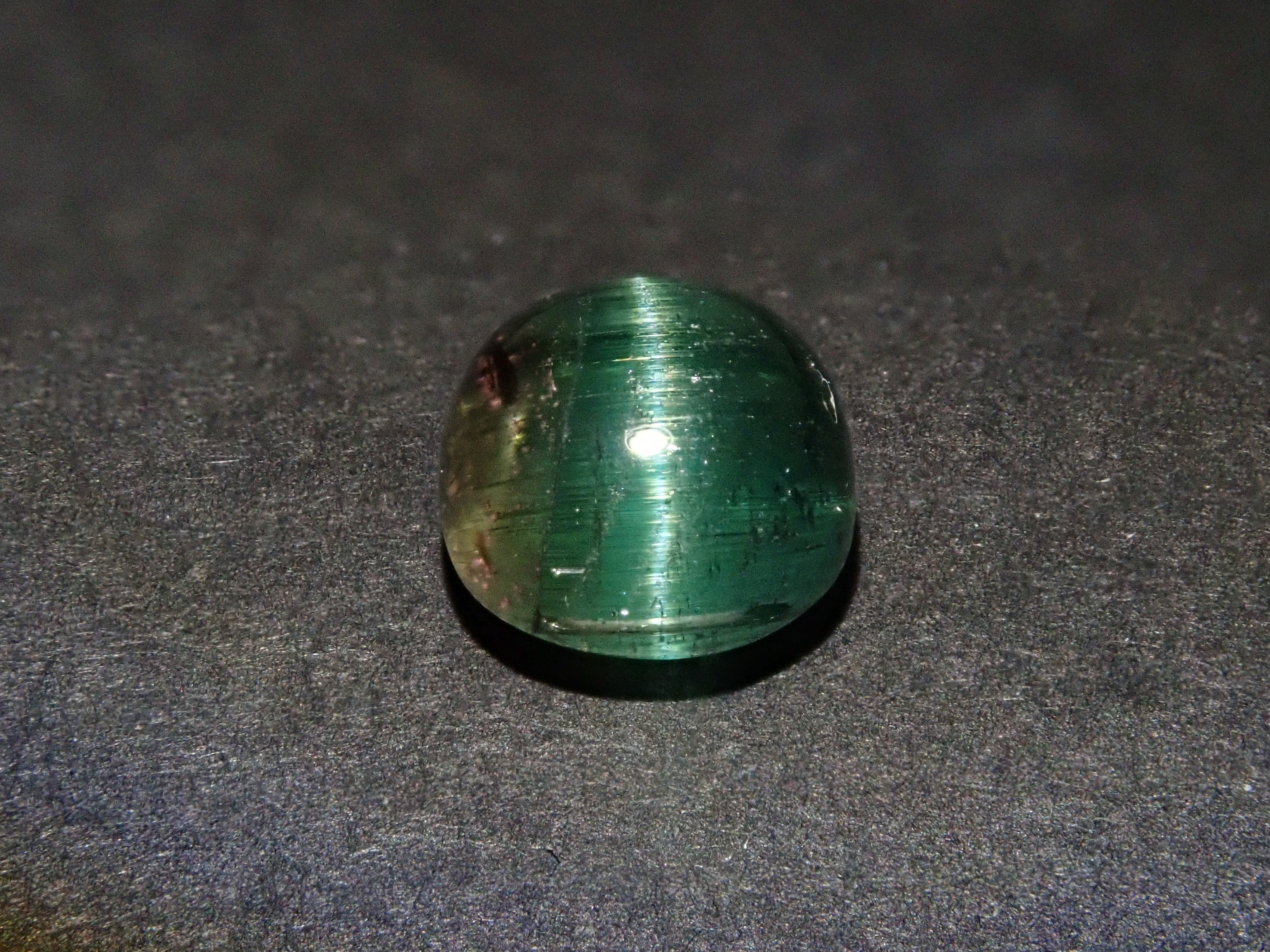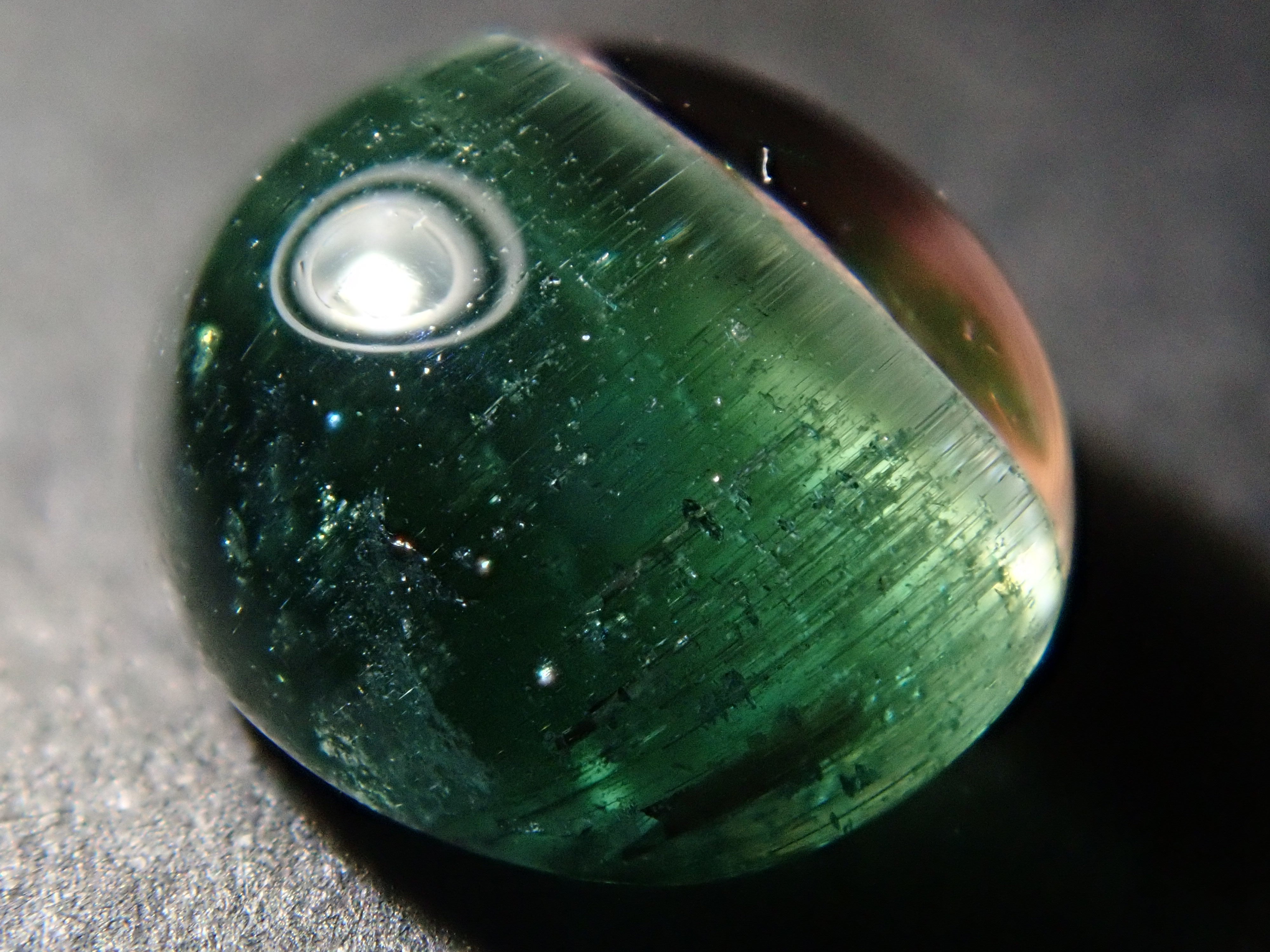 碧璽被稱為色彩寶庫。它有無數豐富的顏色,包括粉紅色、紅色、藍色、綠色、靛藍、橙色、紫色、黑色和棕色。在這種類型中,您可以在一顆寶石中看到兩種顏色並具有貓眼效果。筆燈用於攝影。石頭的背面基本上是未拋光的。