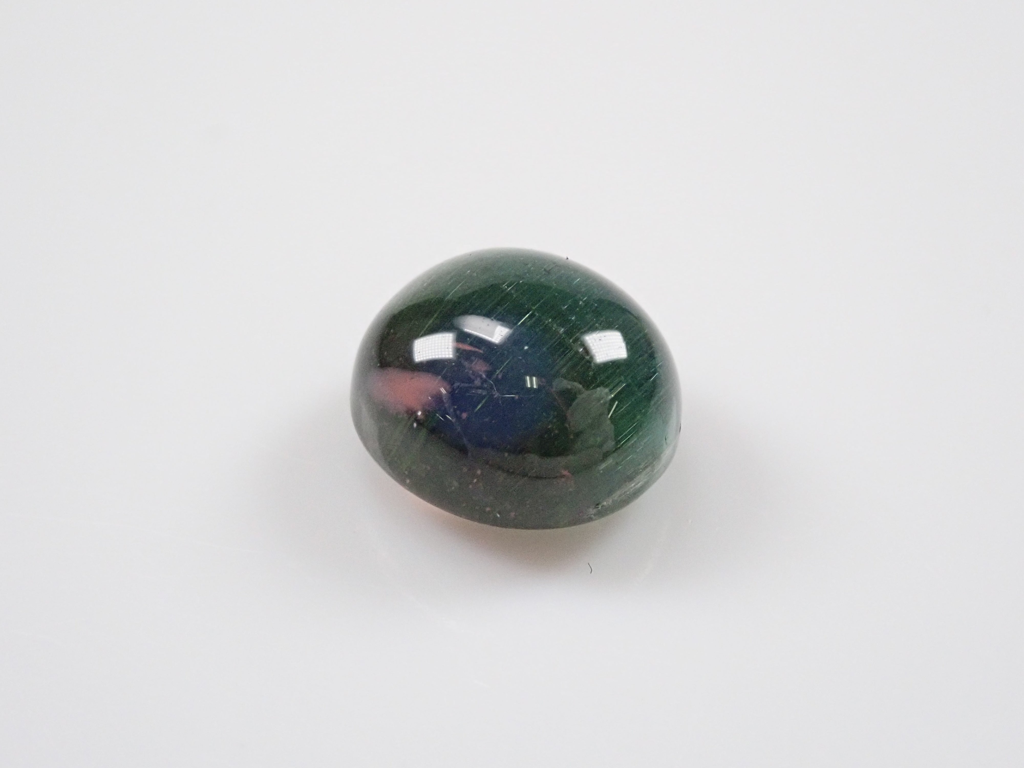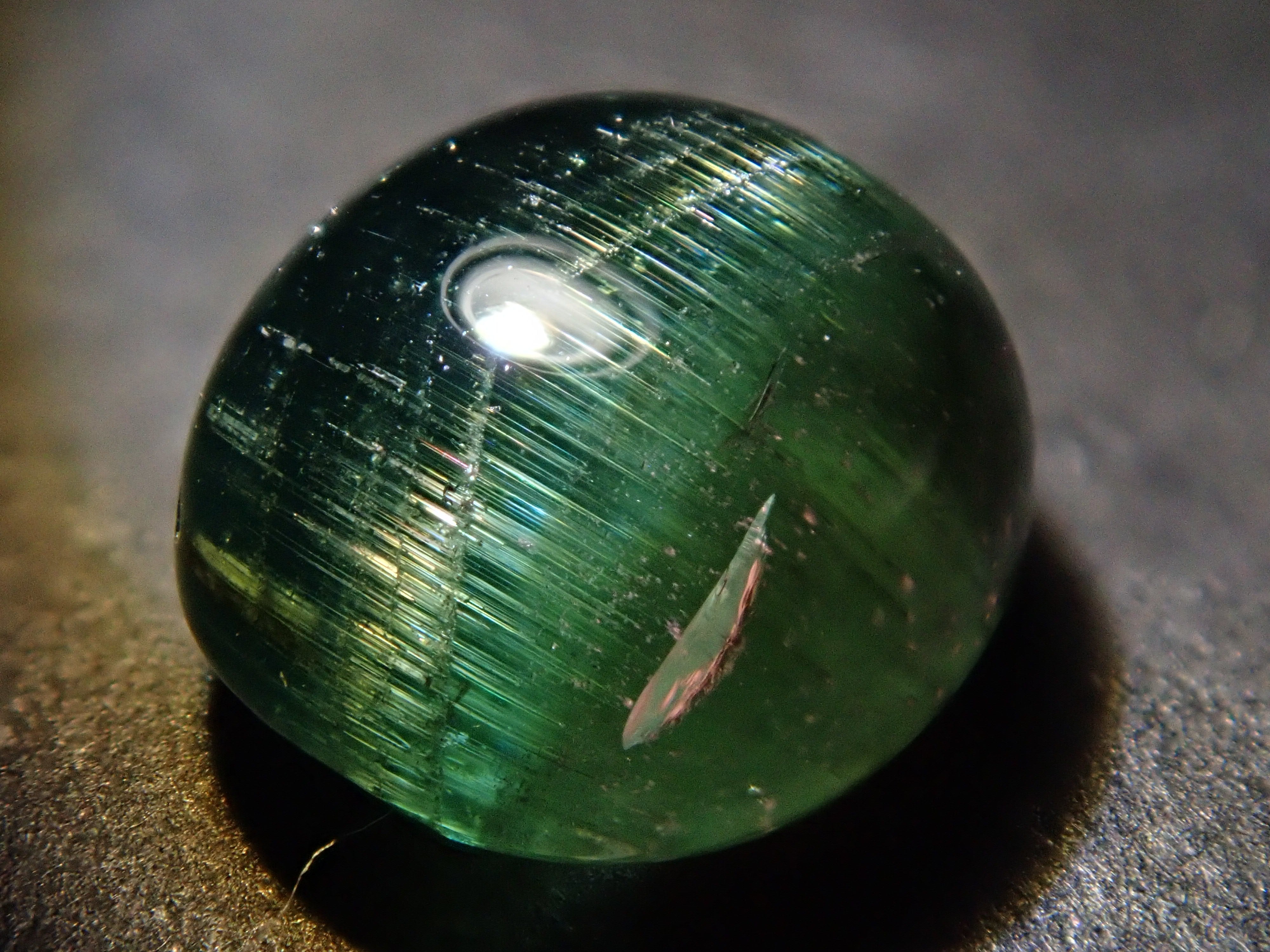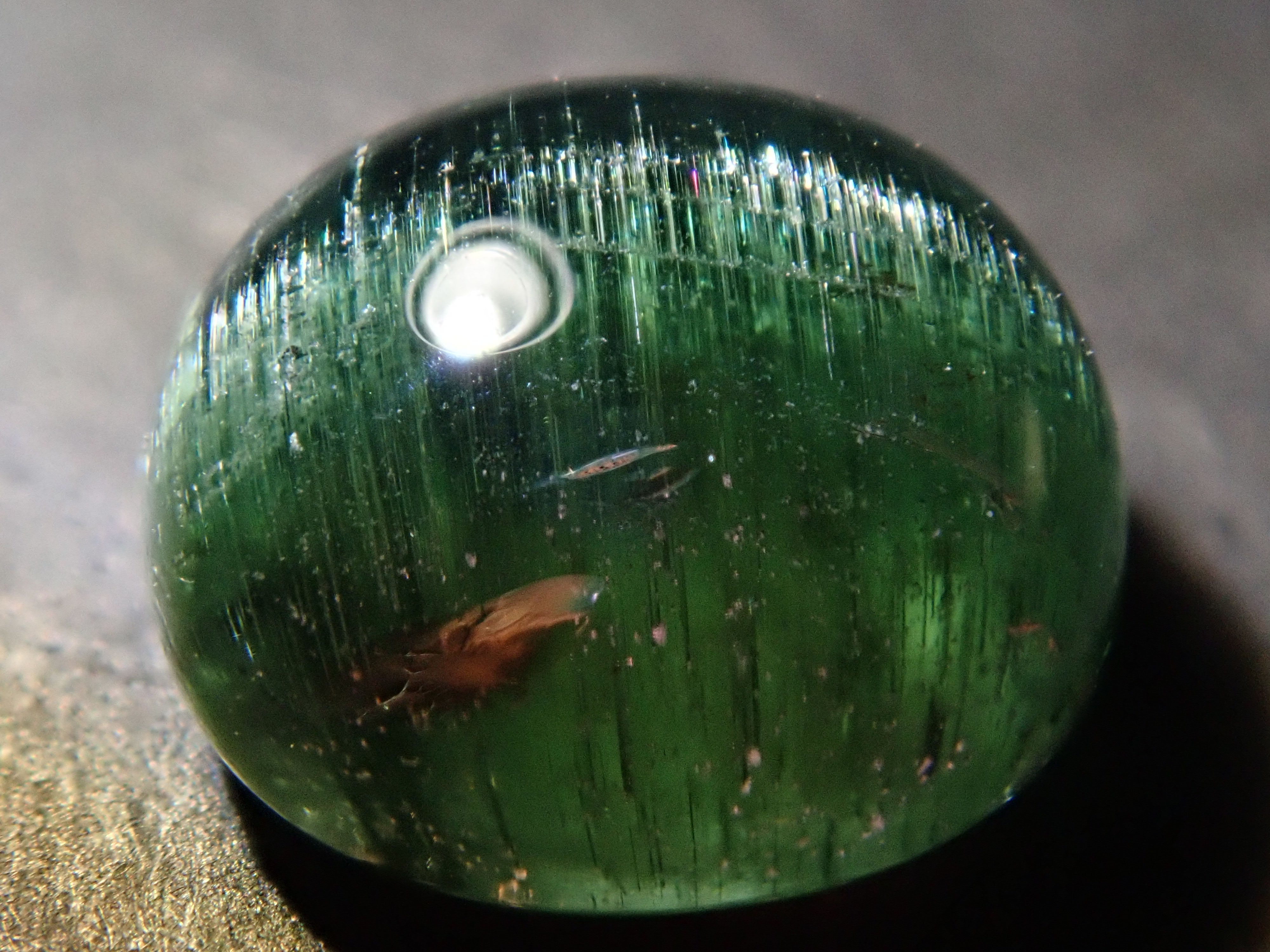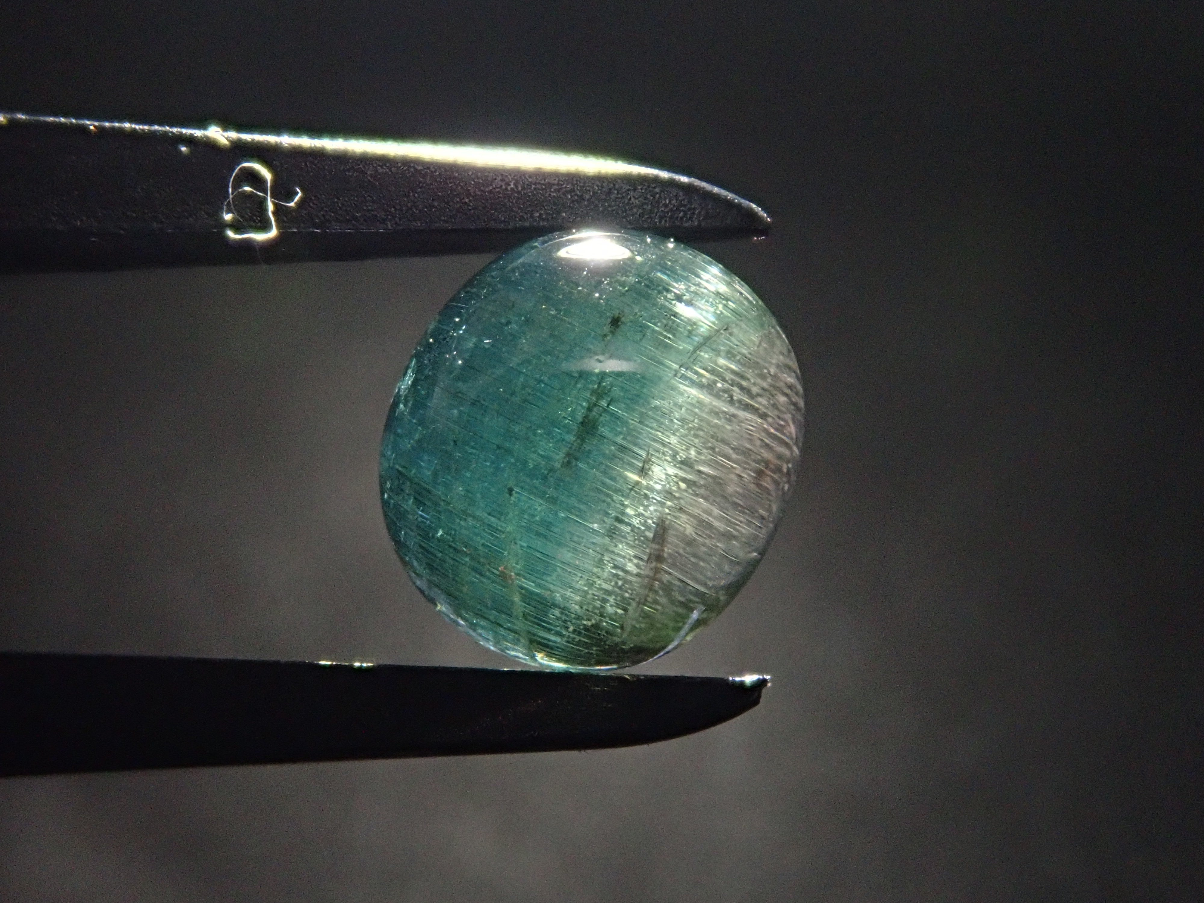 碧璽被稱為色彩寶庫。它有無數豐富的顏色,包括粉紅色、紅色、藍色、綠色、靛藍、橙色、紫色、黑色和棕色。在這種類型中,您可以在一顆寶石中看到兩種顏色並具有貓眼效果。筆燈用於攝影。石頭的背面基本上是未拋光的。