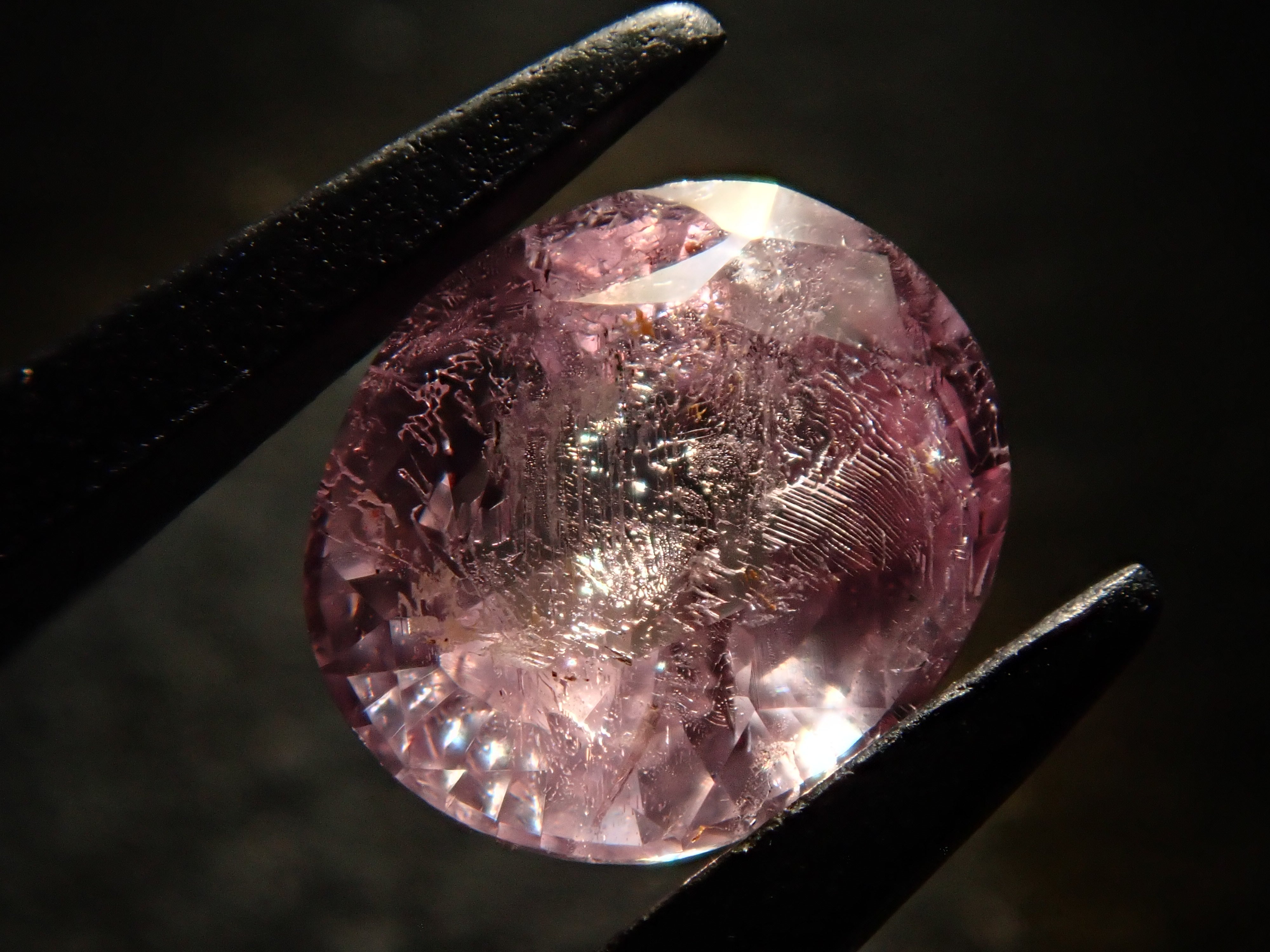 塔菲石。它是在20世紀不久才發現的,作為珠寶流通極為罕見,因此被提名為世界十大稀有寶石之一。由於產量低且尺寸小,因此很難以優質散片形式獲得寶石。請務必將其添加到您的收藏中。附有日德寶石研究所頒發的鑑定證書。 0.60克拉對於塔菲石來說,尺寸較大。紫粉紅色這是塔菲石。