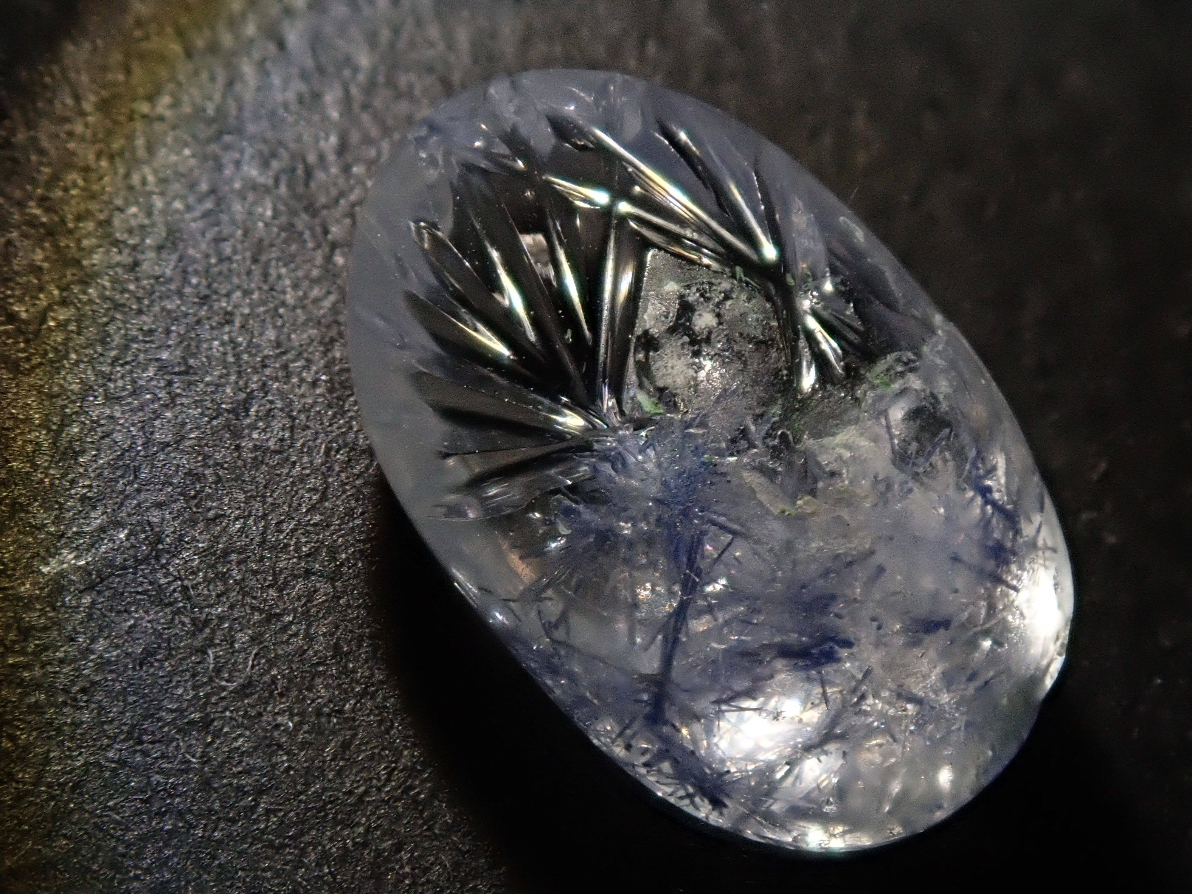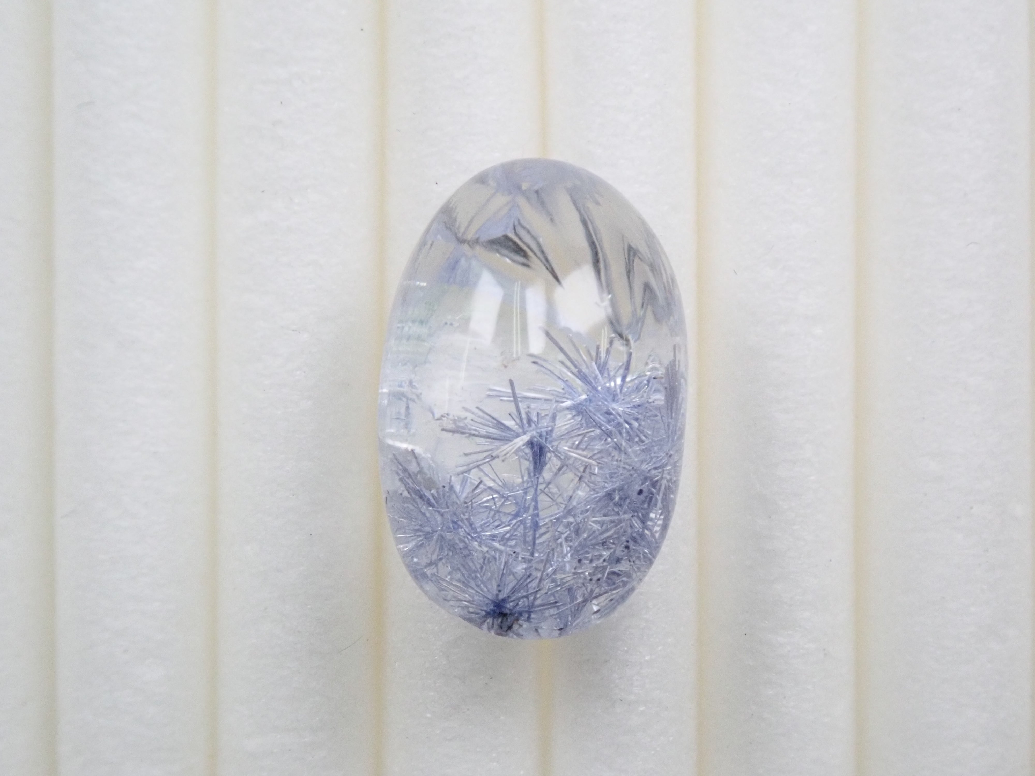 迪莫蒂埃(Dumortierite)以法國古生物學家尤金·迪莫蒂埃(Eugène Dimortier)的名字命名。 In-Quartz很有名。據說單件可用作高級瓷器和製造防火材料的原料。以藍色為主,但也有紫色、紅紫色、粉紅色、棕色等顏色變化。透明寶石品質的物品非常罕見。享受罕見的光澤。