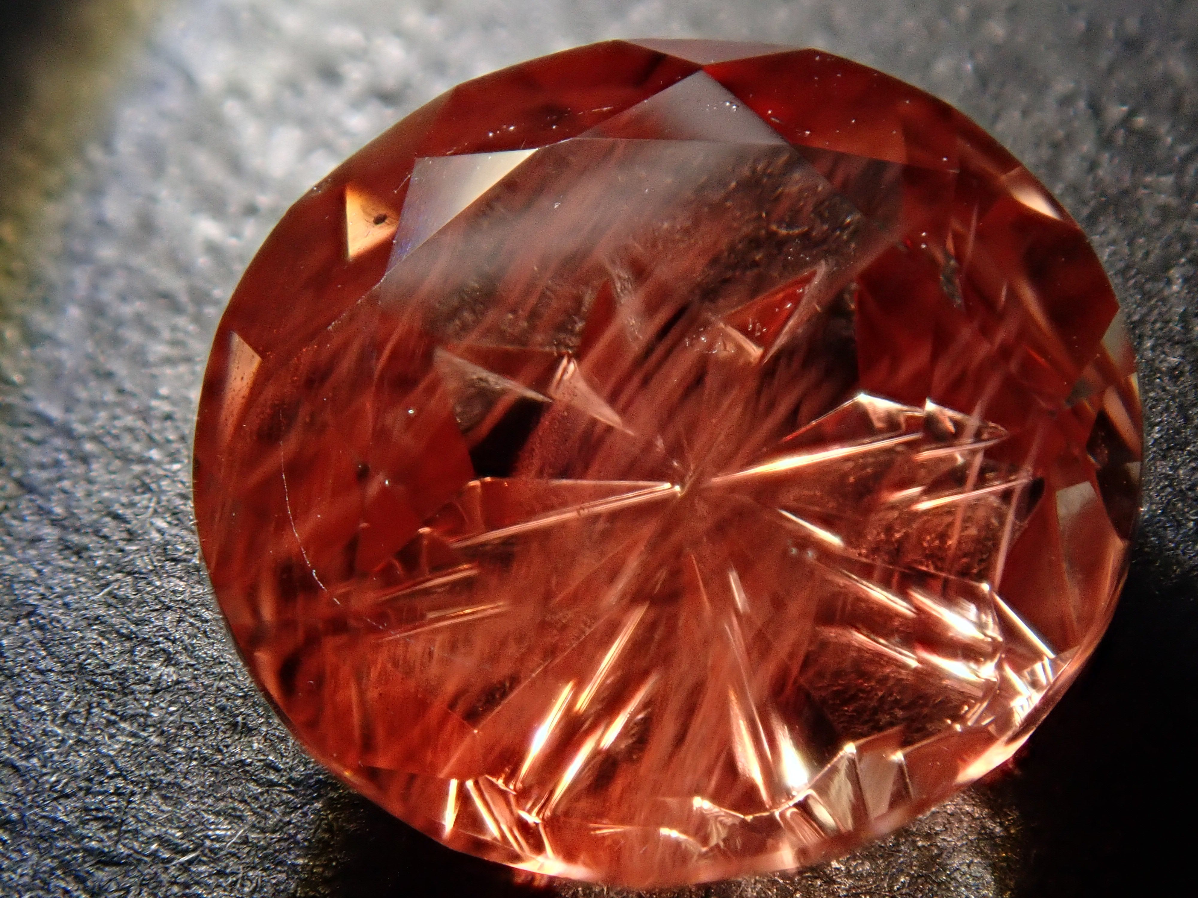 俄勒岡日光石據說是世界上最美麗的拉長石。近年來,這種石頭越來越受歡迎。還有一種稱為散光(席勒效應)的寶石,其中寶石內部的內含物會像閃光一樣反射。為了準確地傳達這些光學效果,攝影時使用筆燈。