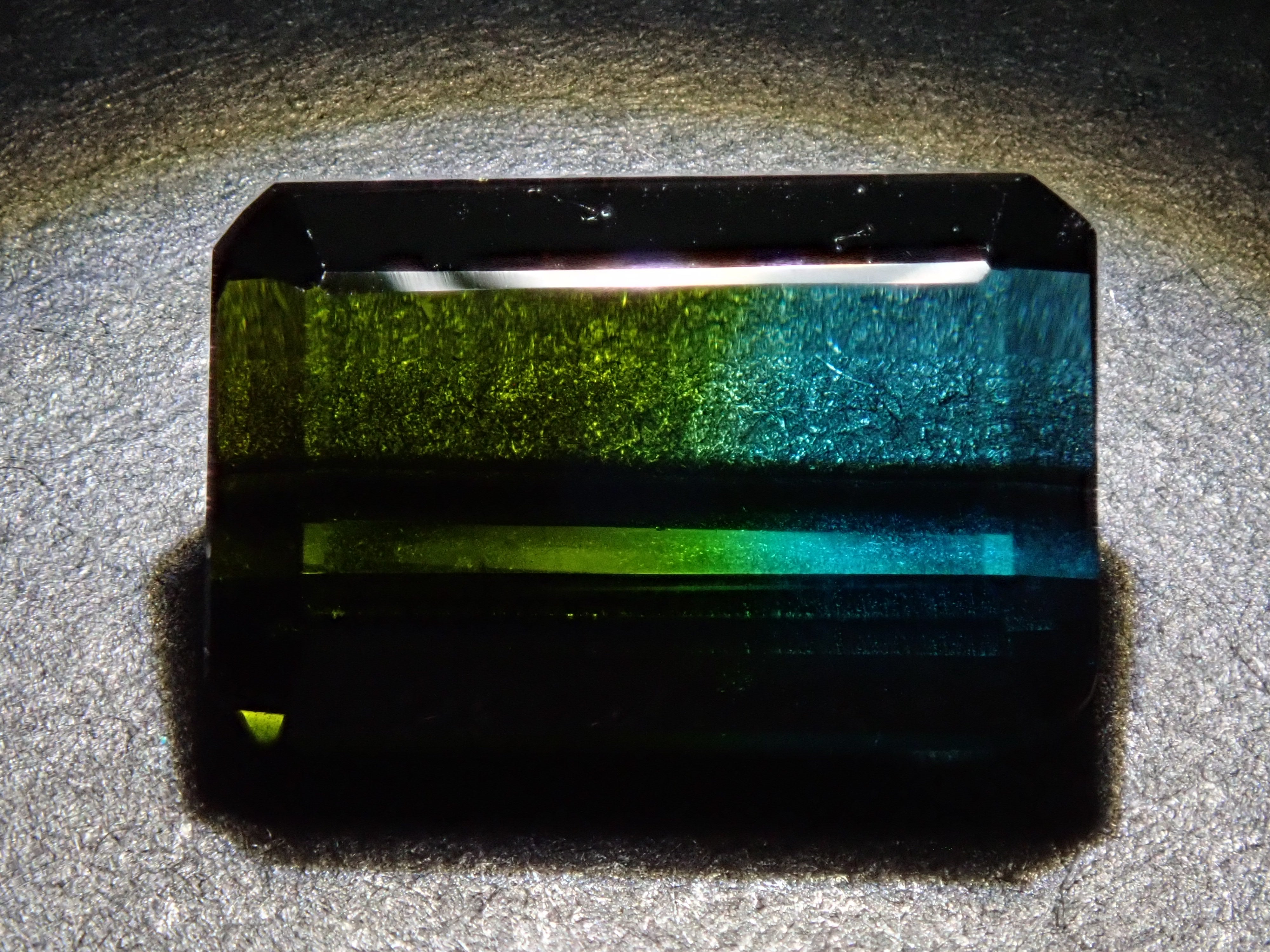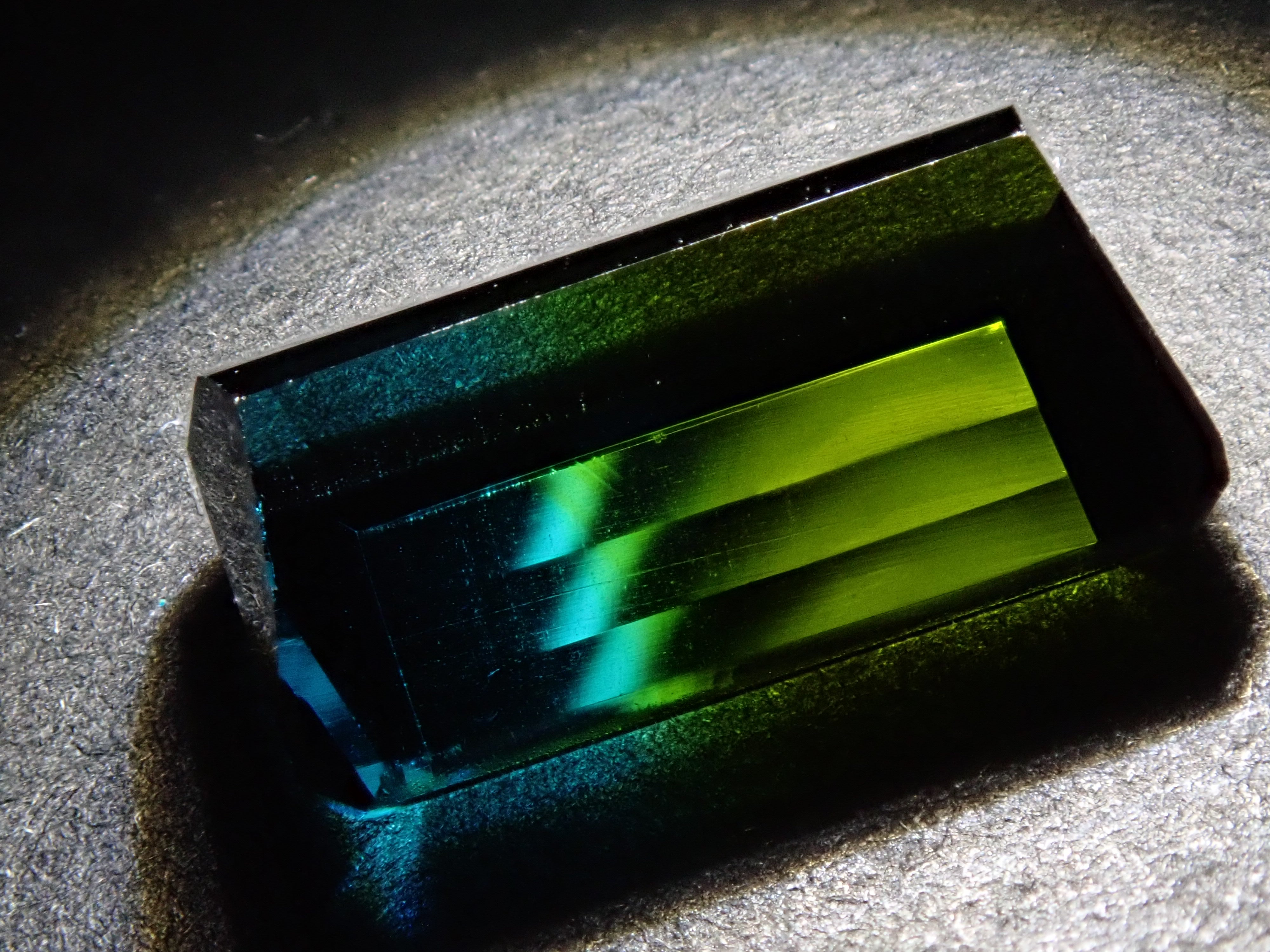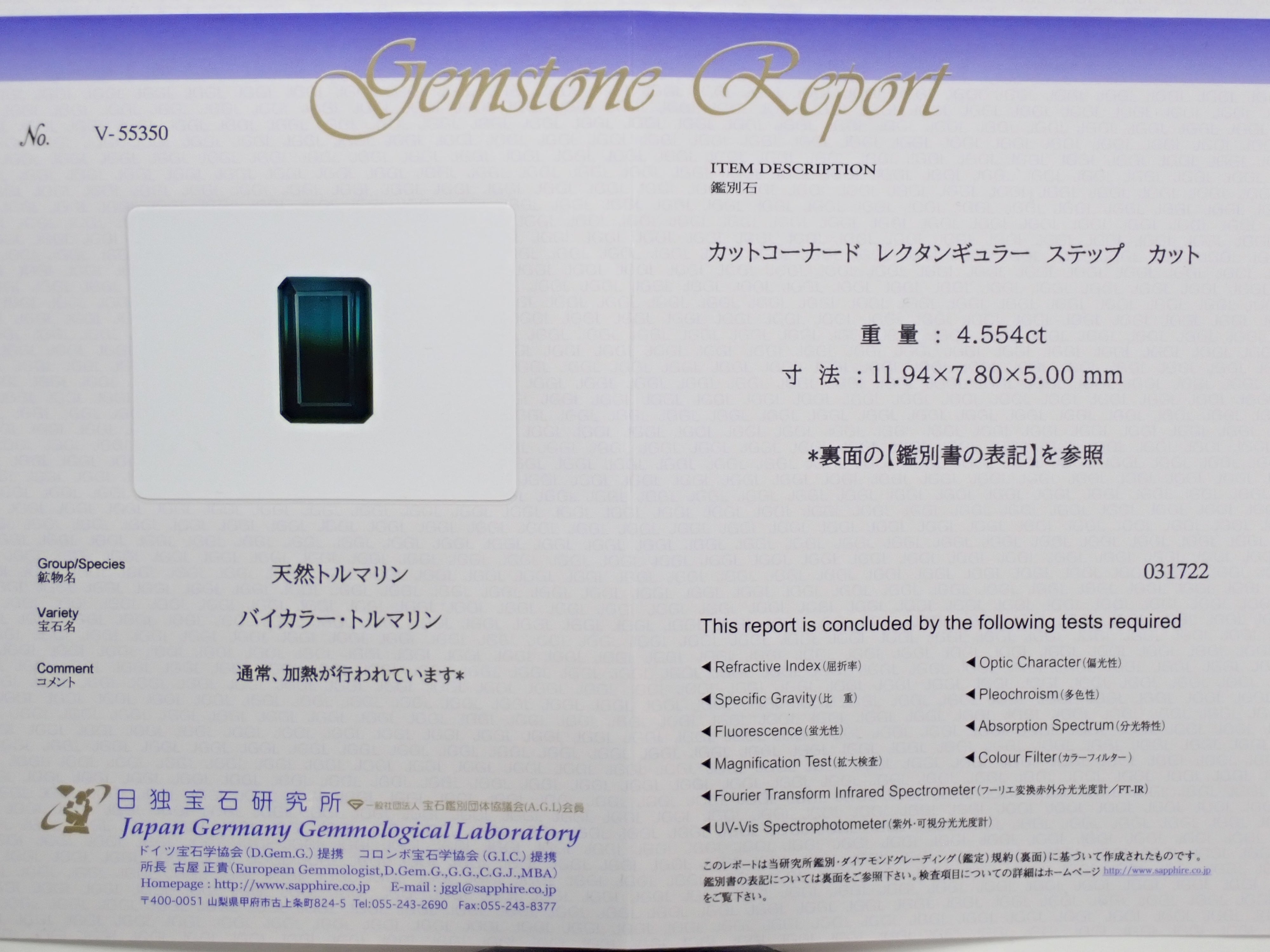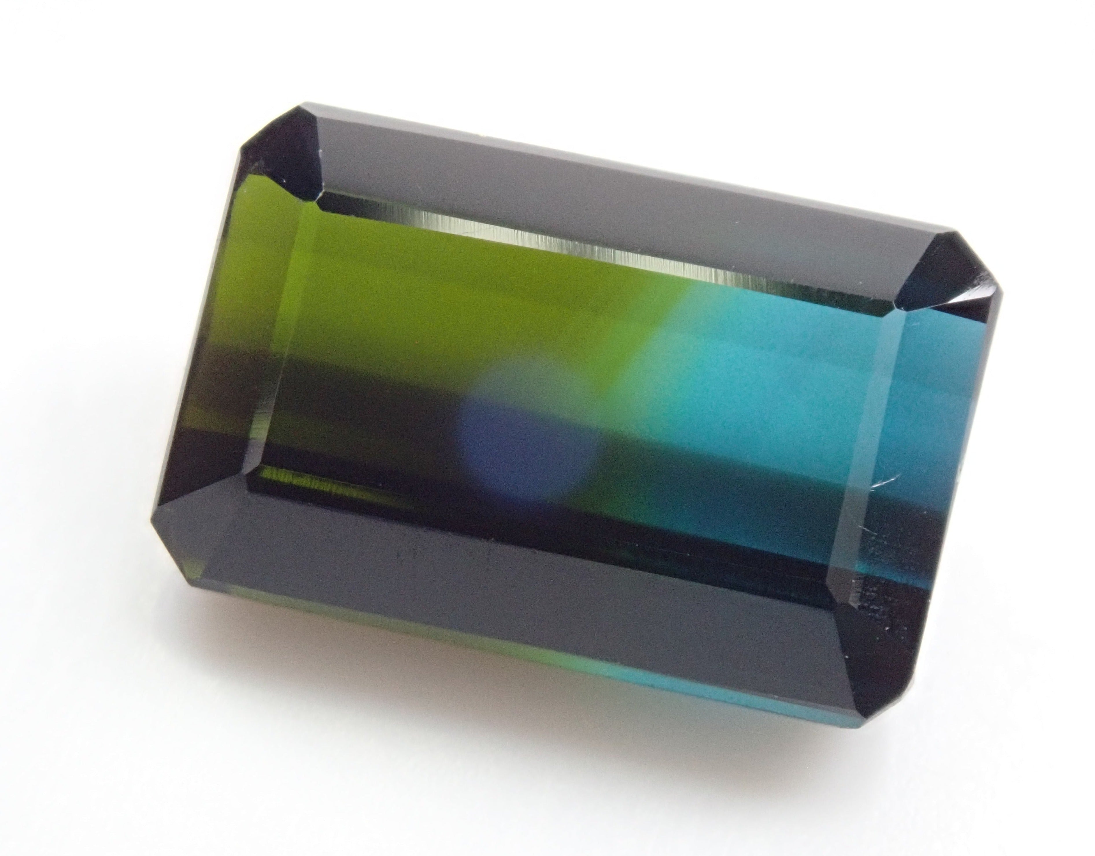 碧璽被稱為色彩寶庫。 「碧璽」一詞源自於僧伽羅語“Tourmali”,意為“各種顏色”。其中,一塊碧璽中蘊含兩種顏色,稱為「雙色碧璽」。它擁有豐富的色彩組合,深受收藏家的喜愛。這塊雙色碧璽擁有美麗的藍色和綠色色調。它是一塊罕見的巴西雙色碧璽,透明度高,品質優良。它附有日德寶石學院的鑑定證書。