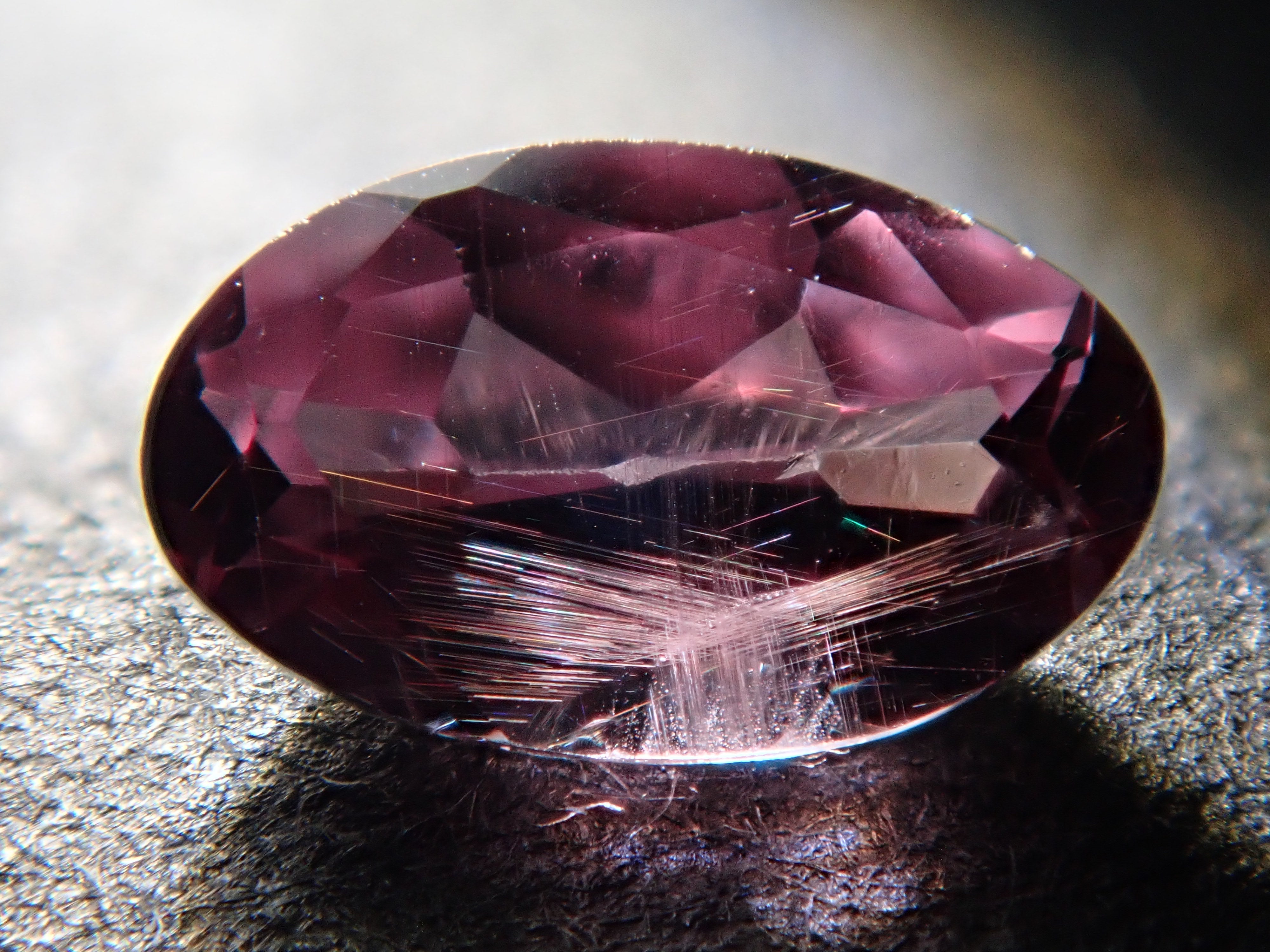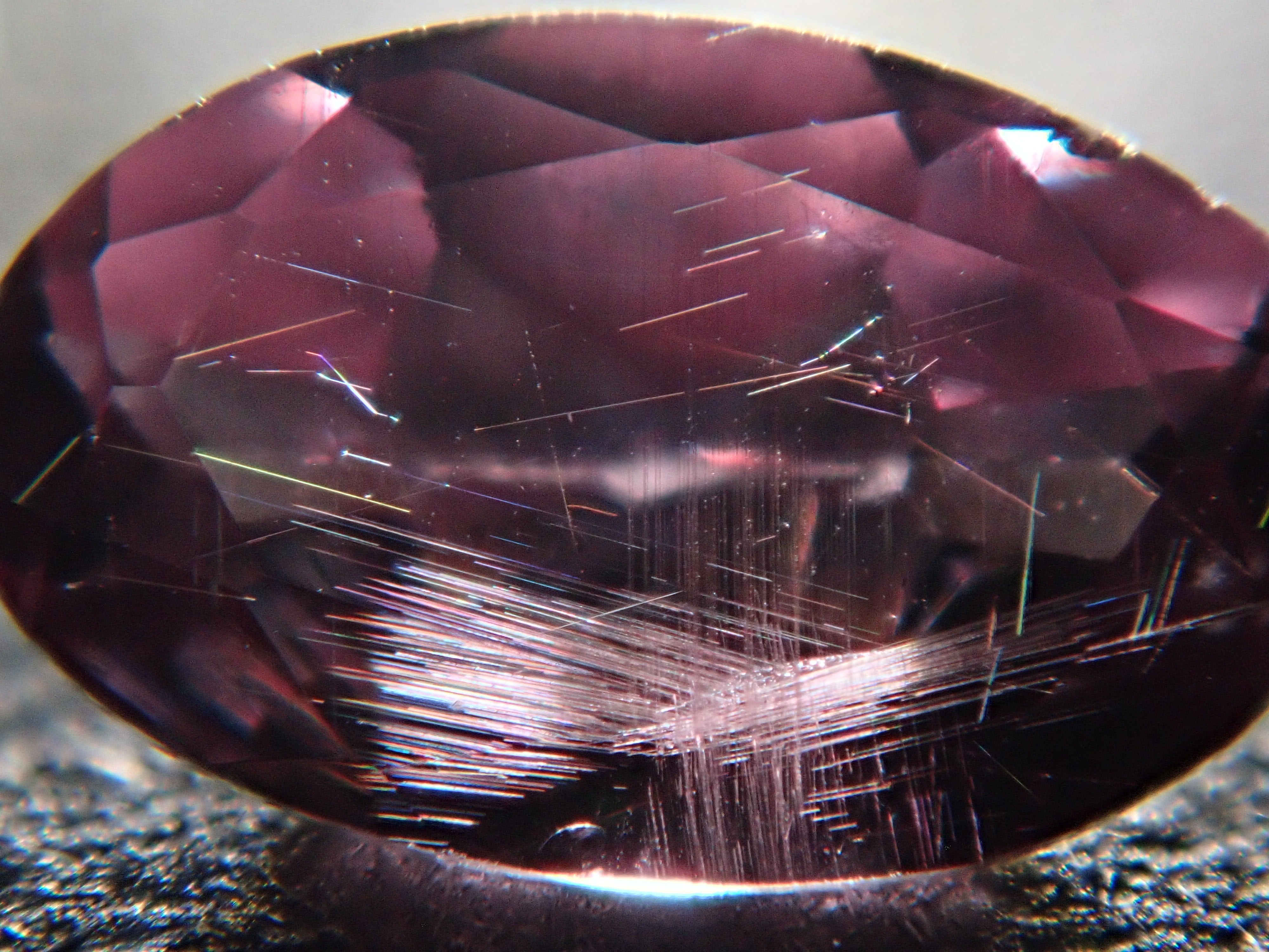 它是鬆散的,您可以欣賞到變色石榴石典型的針狀內含物。