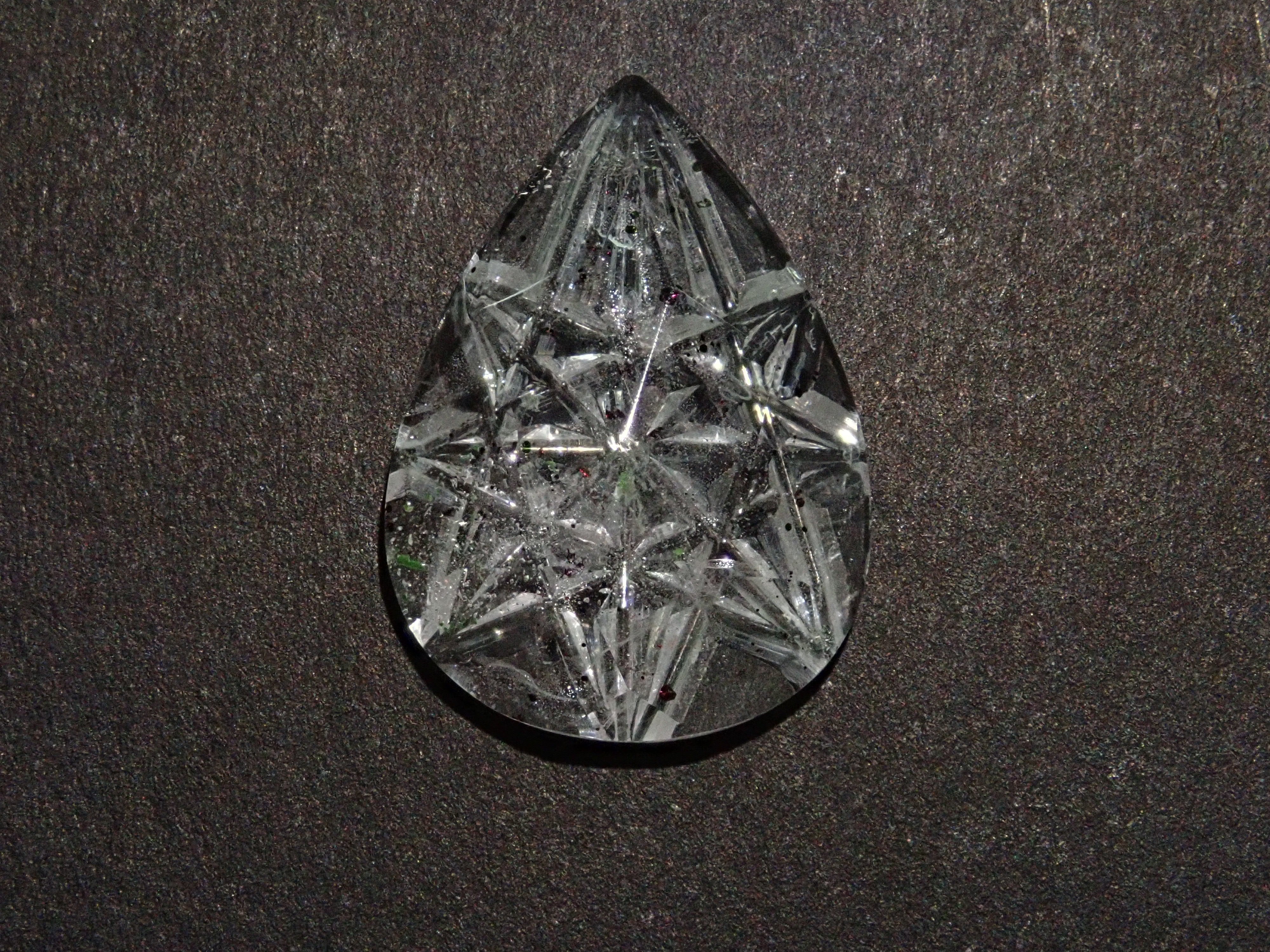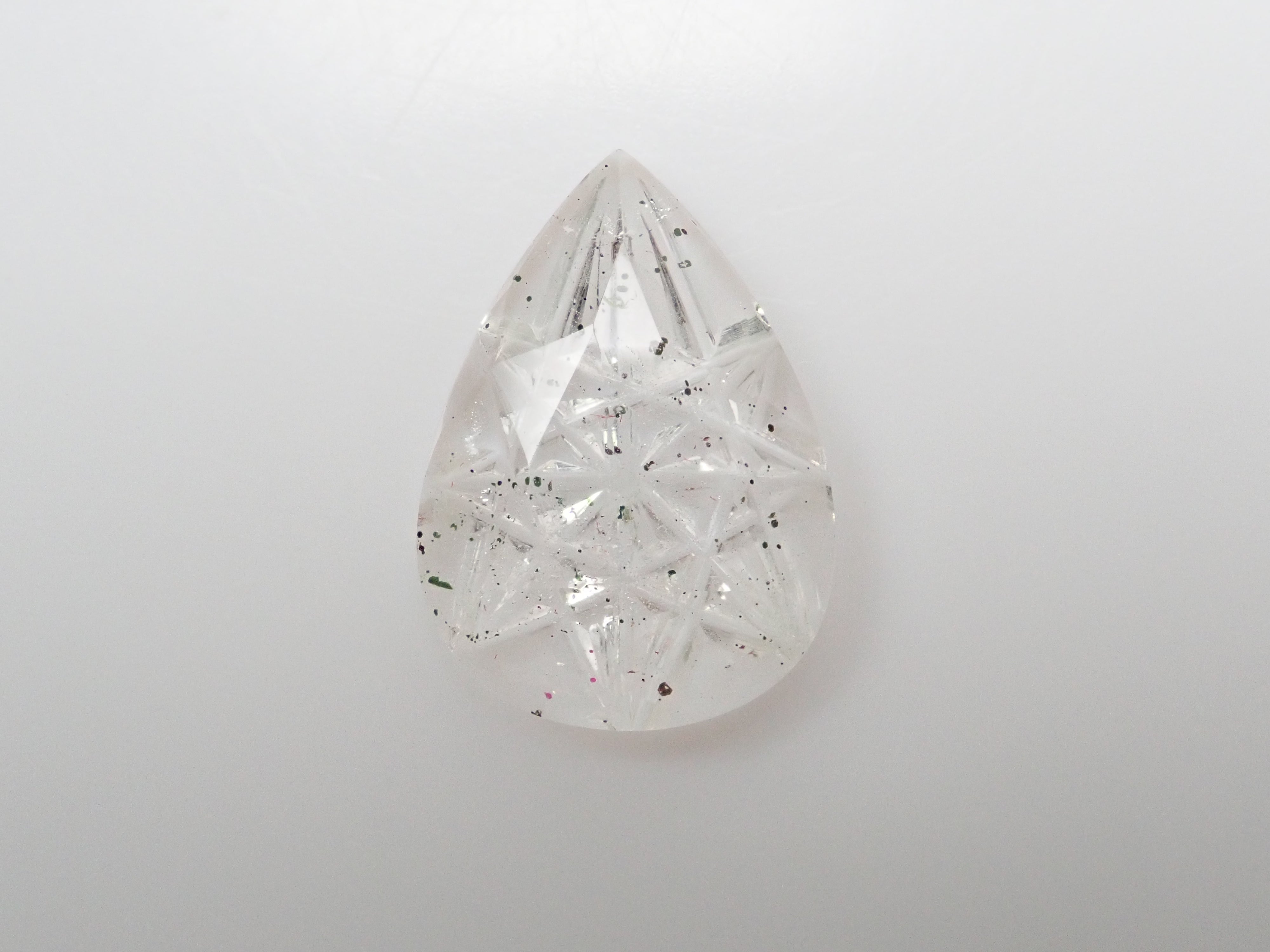 這顆Tinkerbell石英裸石採用甲州Kikkiko風格切割而成,是Shimizu Kikki和Yoichi Fukasawa合作的作品。這顆甲州Kikkiko風格寶石由兩位工藝大師-Shimizu Kikki的社長Yukio Shimizu和Jewelry Craft Fukasawa的社長Yoichi Fukasawa共同打造。刻面由Shimizu製作,切割面則由Fukasawa負責。