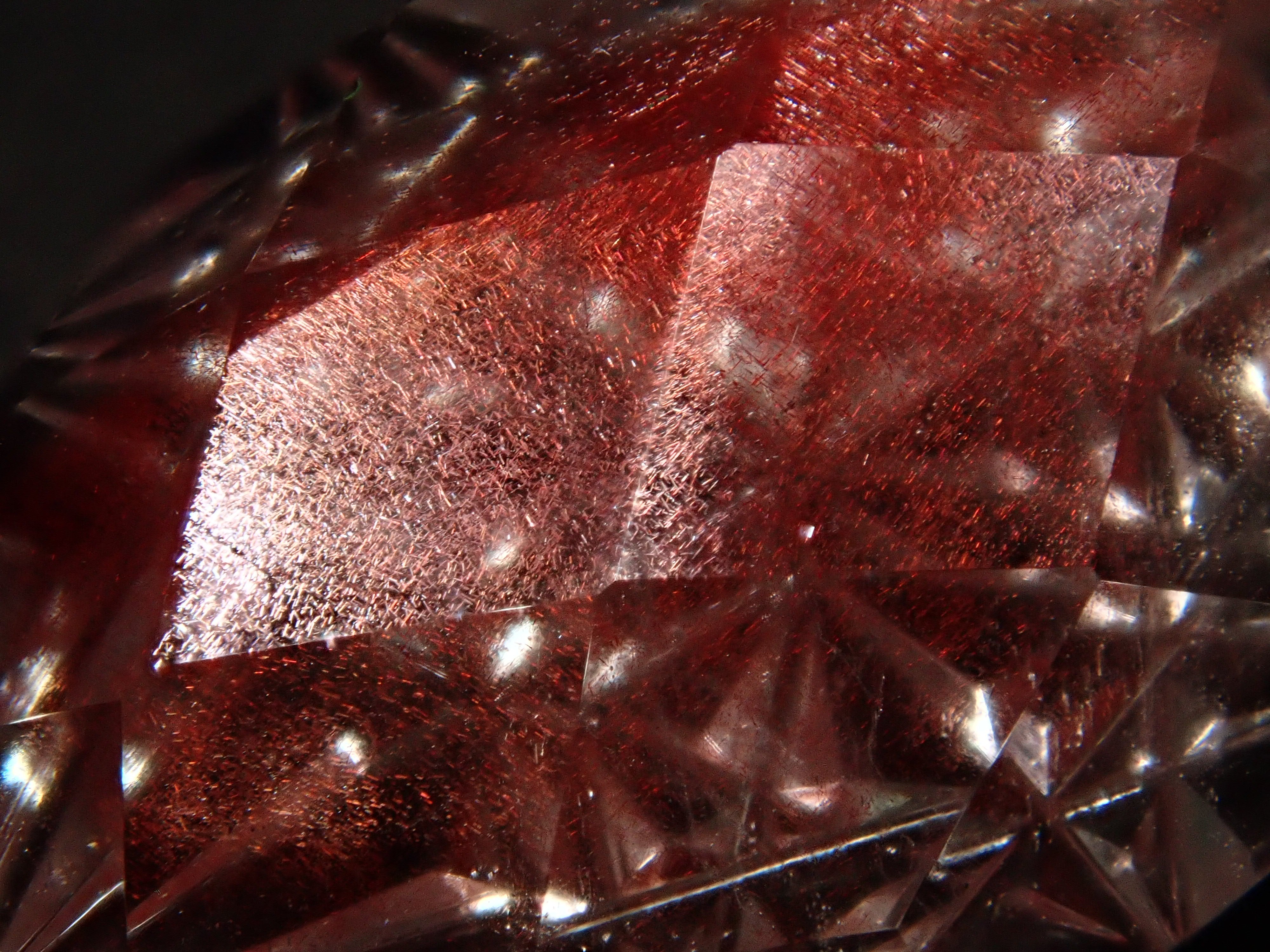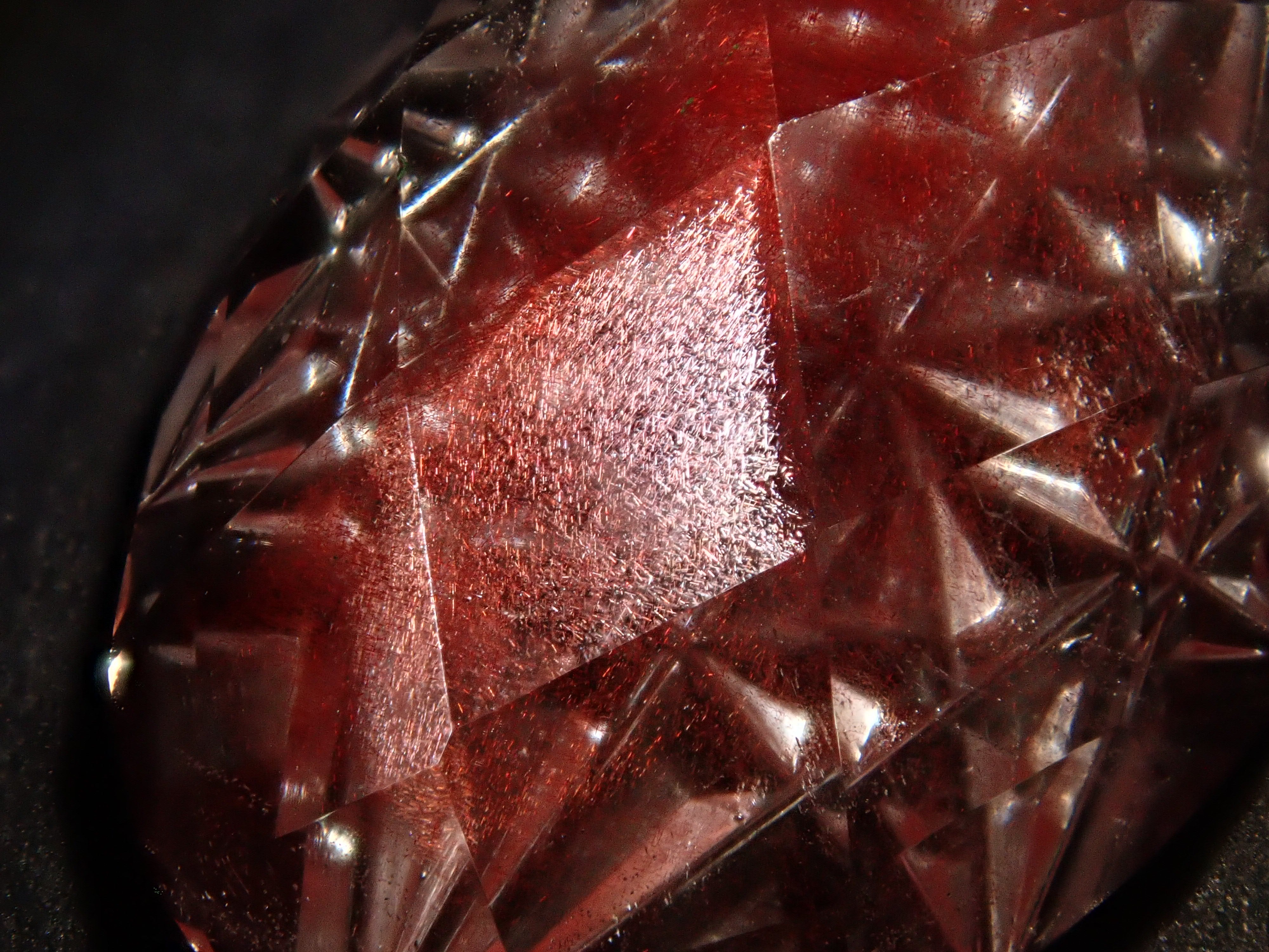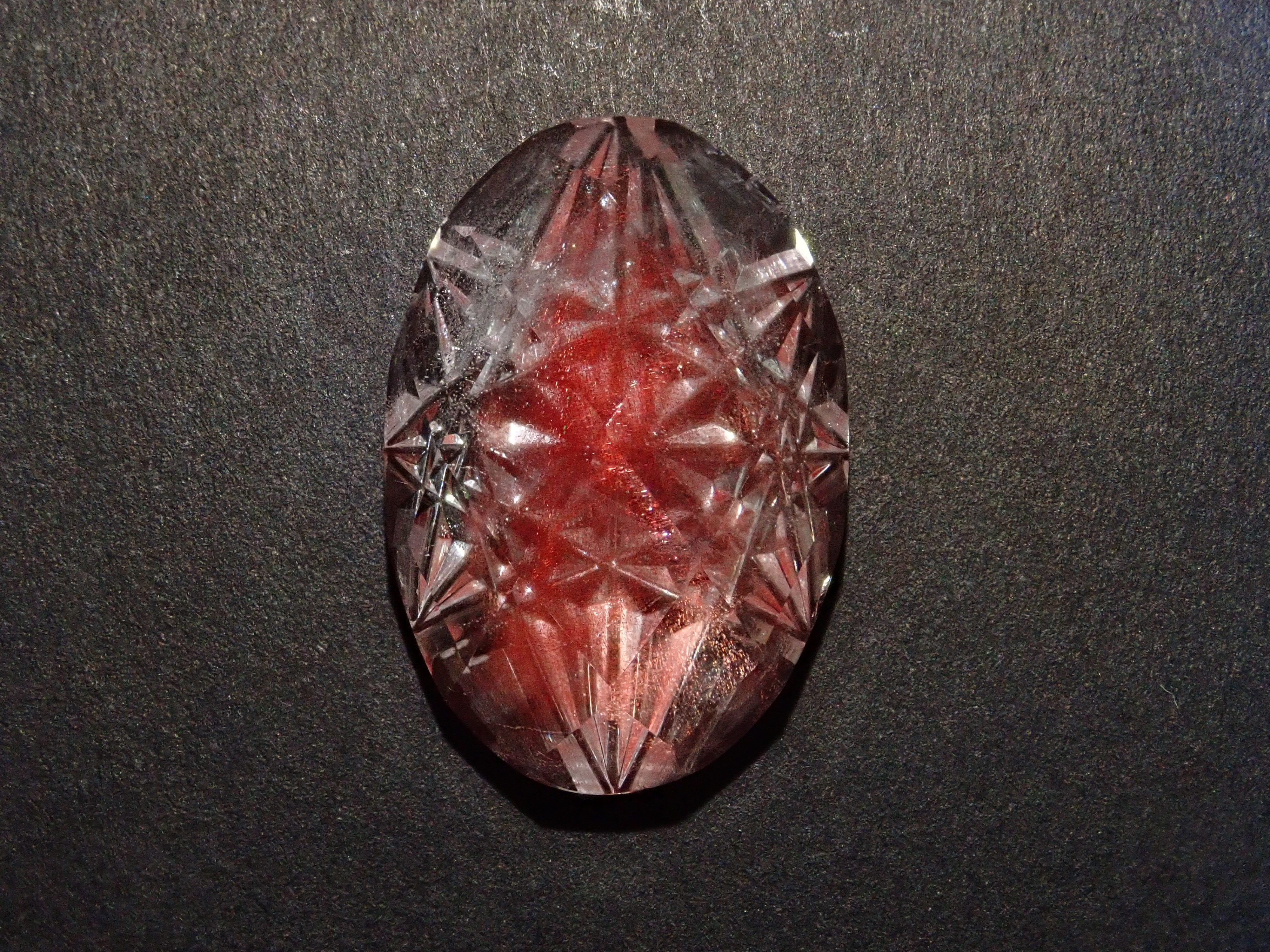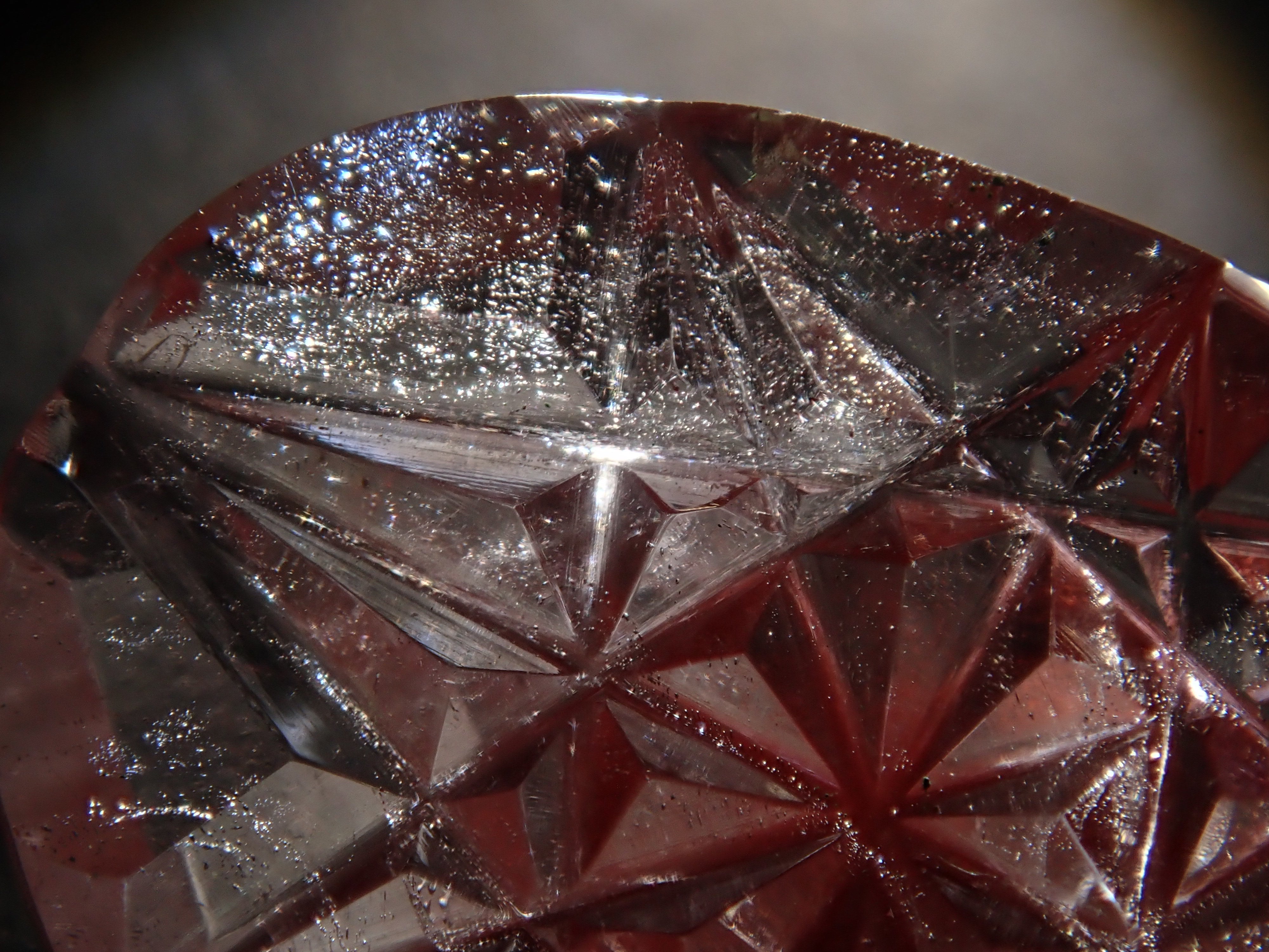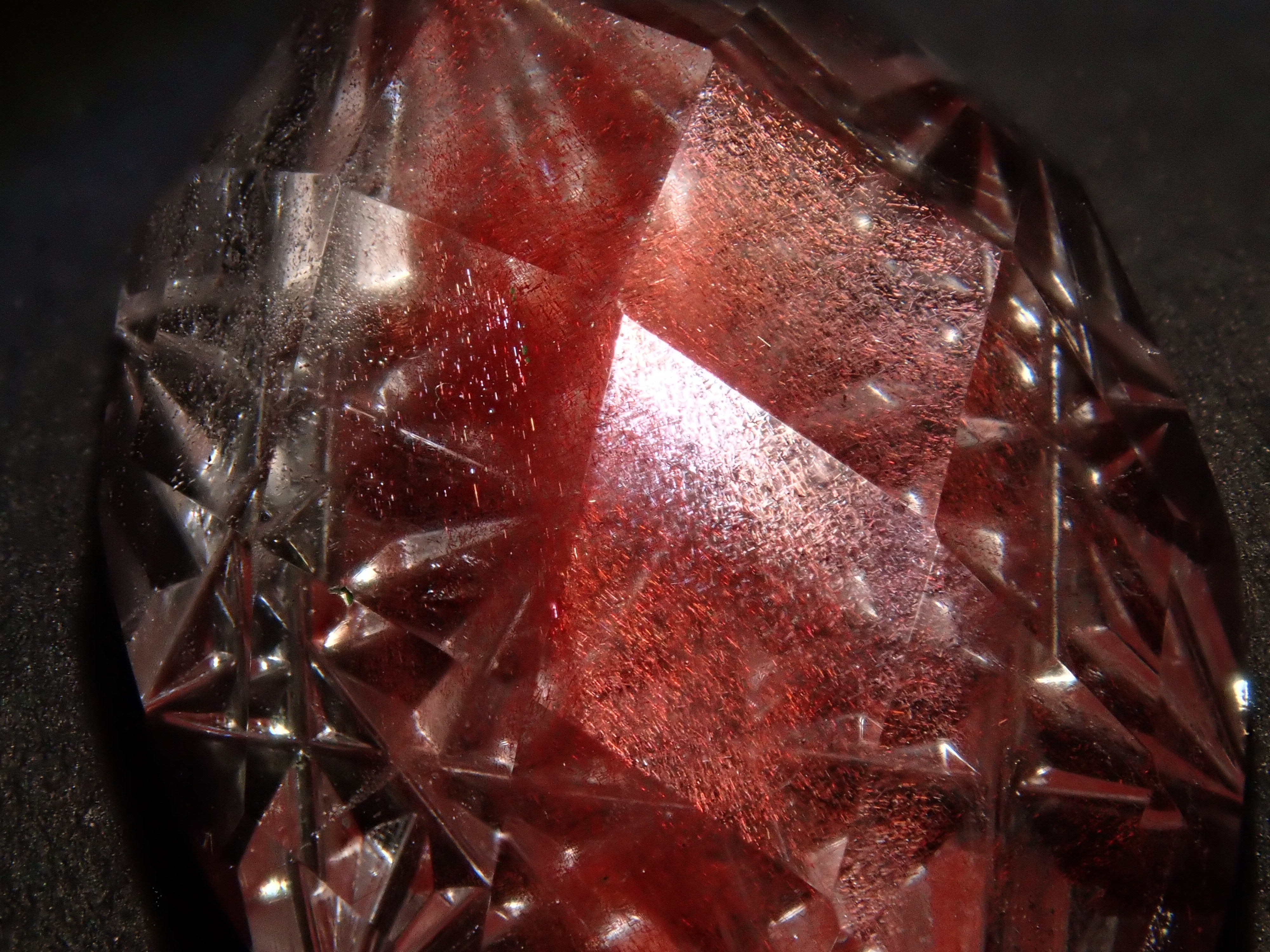 這是由 Koshu Kiishi Kiriko 切割的鬆散草莓石英,是 Shimizu Kiseki 和 Yoichi Fukasawa 先生的合作作品。這是由清水寶石的代表清水幸雄先生和Jewelry Craft Fukasawa的代表深澤洋一先生兩位大師創作的甲州寶石切工。清水先生負責刻面,深澤先生負責刻面。