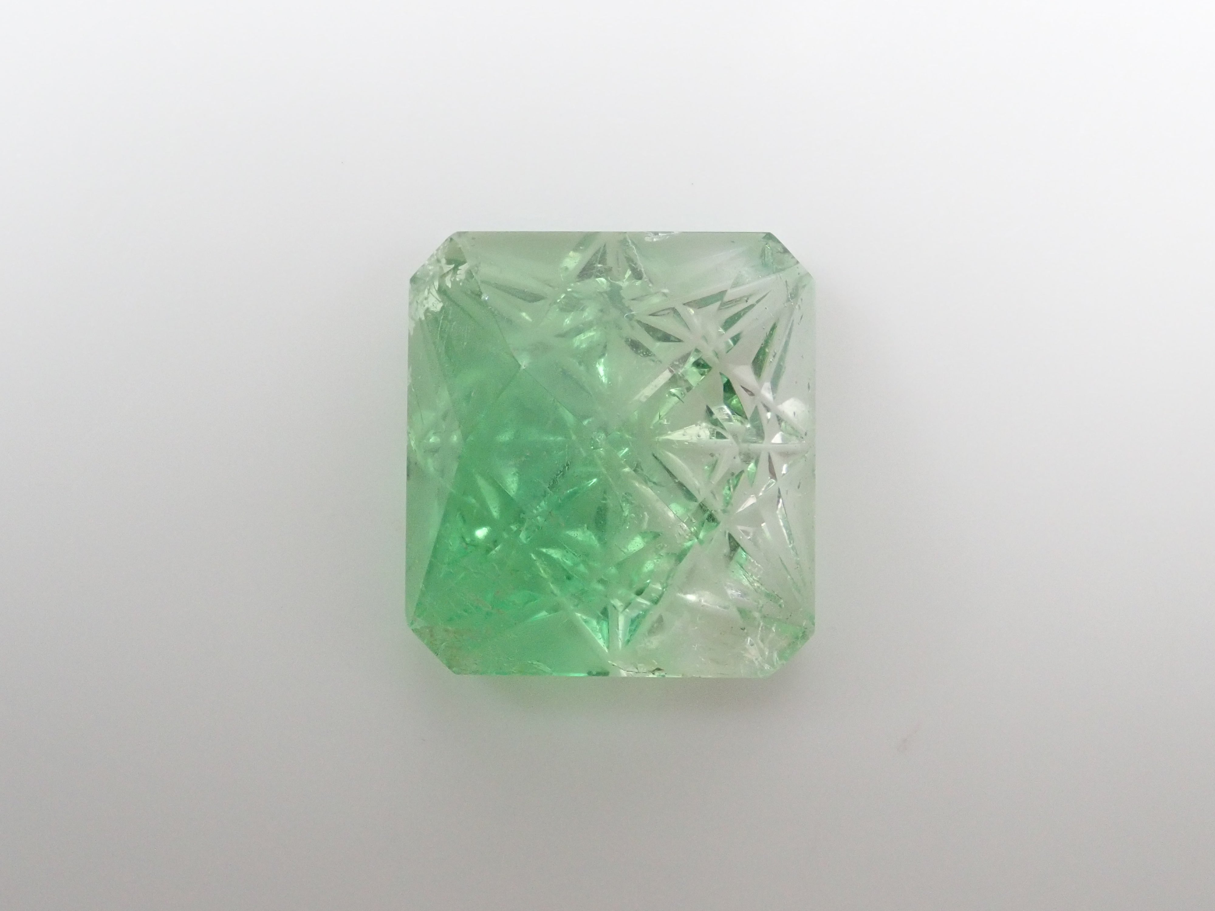 這是由清水寶石的代表清水幸雄先生和Jewelry Craft Fukasawa代表的深澤洋一先生兩位大師創作的甲州寶石切子切工的原創切工類型。清水先生負責刻面,深澤先生負責刻面。