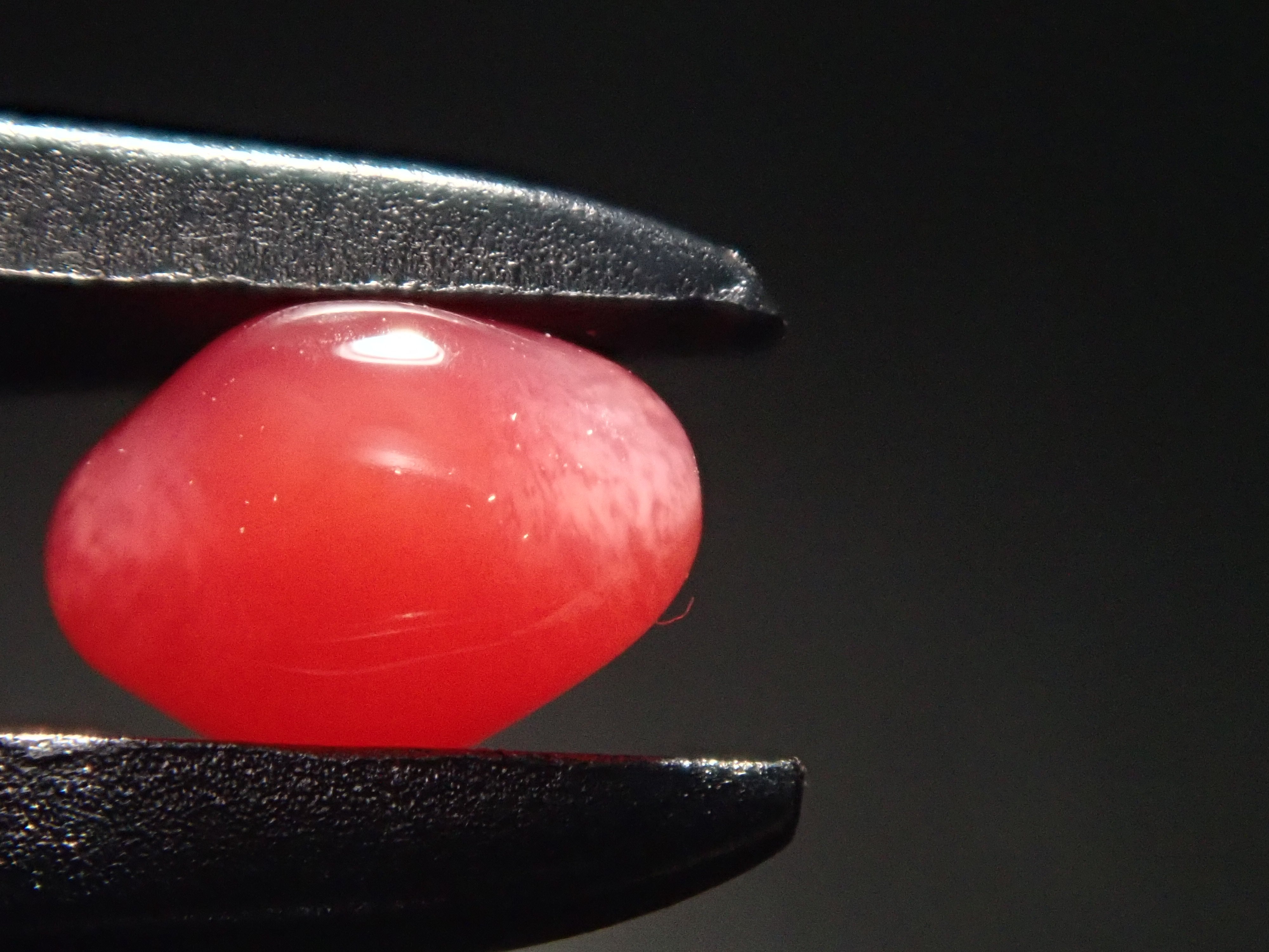 顏色深沉、帶有火焰圖案的海螺珍珠。包括來自珠寶和貴金屬協會的分類資訊。
