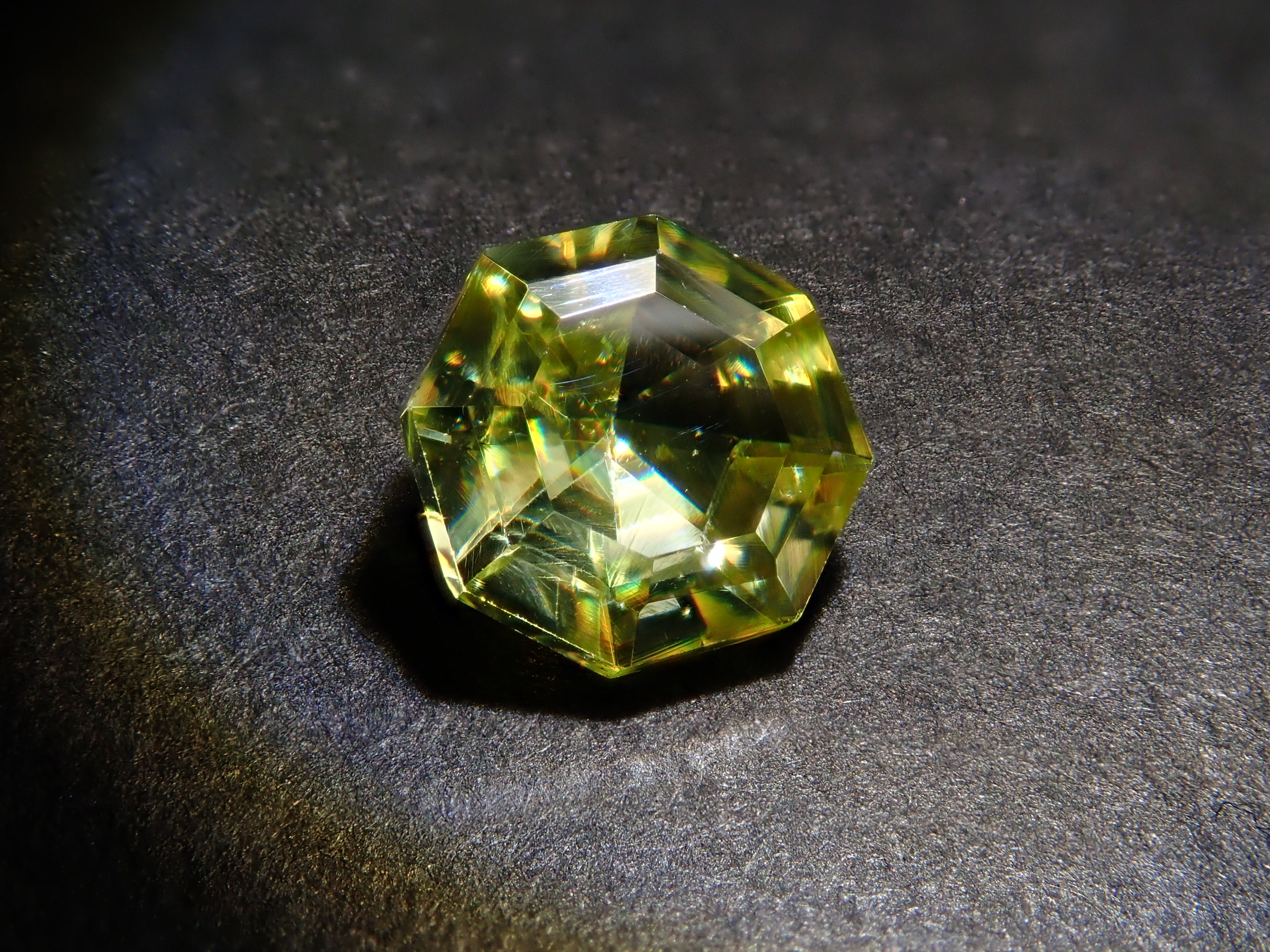 呈現出金色光芒和奢華火焰的榍石。它作為一種有吸引力的寶石而受到收藏家的歡迎,它散發出比鑽石更強大的火彩。輝度隨角度而快速變化的榍石。請在陽光下在手中滾動並觀察。請注意,有些照片是使用筆燈拍攝的。