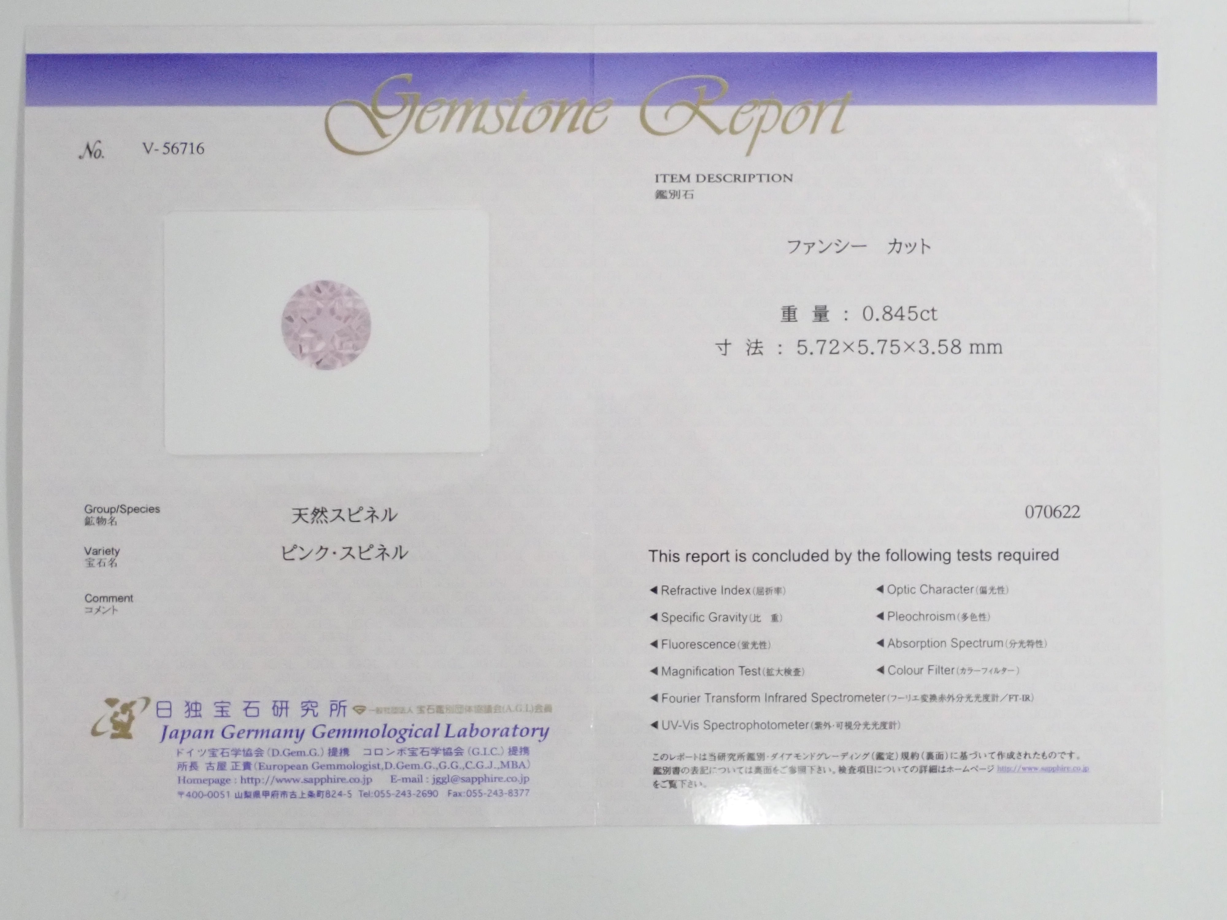 這是一顆5.7毫米的蒲公英切割尖晶石,由清水奇蹟出品。如同蒲公英般,這款切割的尖晶石散發著溫柔而又強大的魅力。蒲公英的圖案以極為精細的霧面刻面呈現,堪稱一大亮點。它附有特殊補丁。此外,還附有日德寶石研究所的真品證書。
